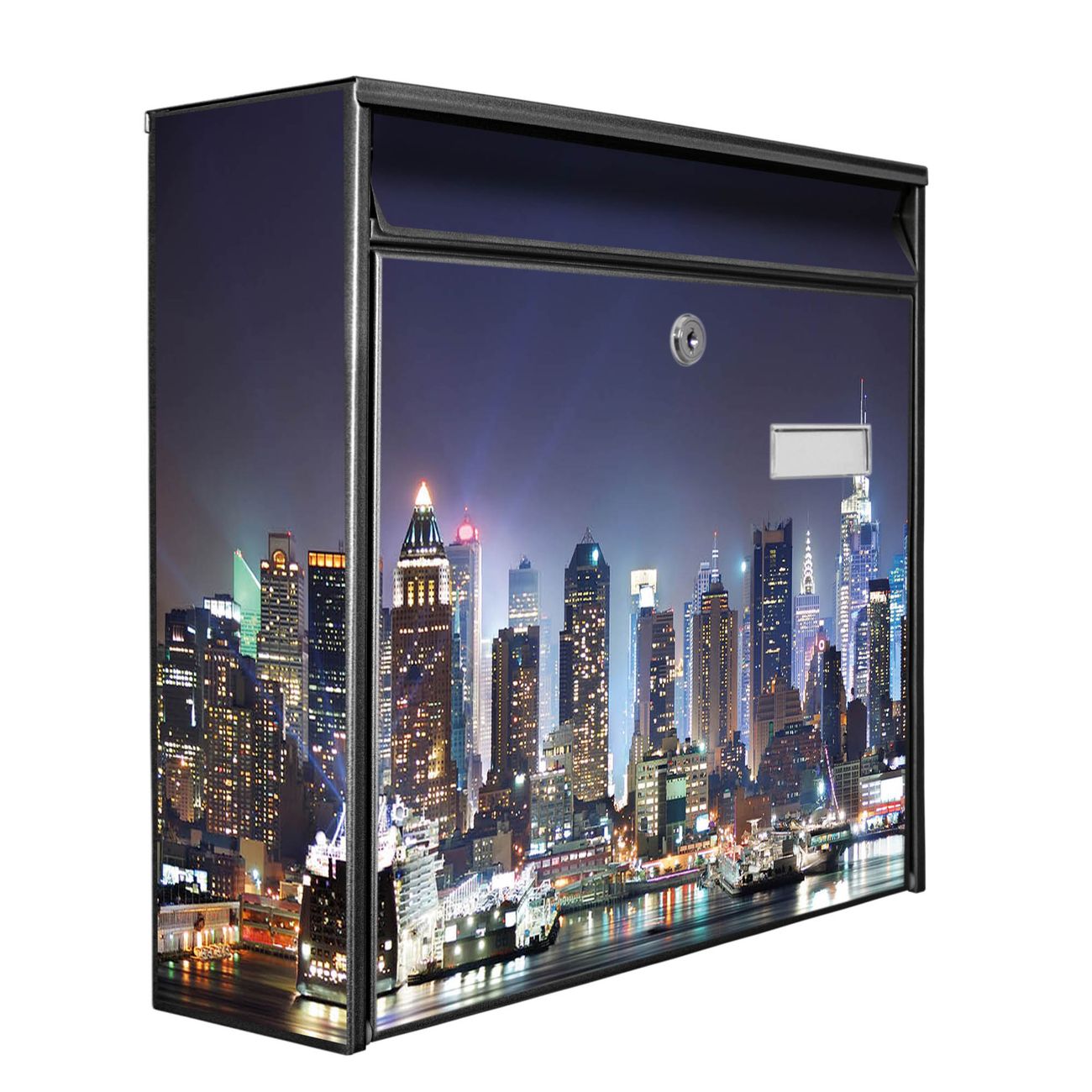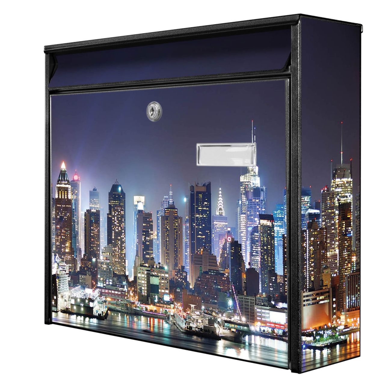 Der Postkasten mit Motiv New York hat ein sehr ansprechendes und zeitloses Design. Heben Sie Sich von der tristen grauen Masse ab, ohne auf Funktionalität zu verzichten. Die weite Öffnung ohne scharfe Kanten ermöglicht eine einfache Handhabung beim Entnehmen der Post. Die Größe bietet genügend Platz für Sendungen aller Art, der Einwurf fasst auch größere A4 Sendungen. Ihr Burg-Wächter Motivbriefkasten wird in Sachsen in einer kleinen Manufaktur von Hand veredelt. Die Motivfolie ist lösungsmittelfrei und schutzlaminiert, dies sorgt für einen langen Halt. Wir legen großen Wert auf die Verbindung von Funktionalität und Design.