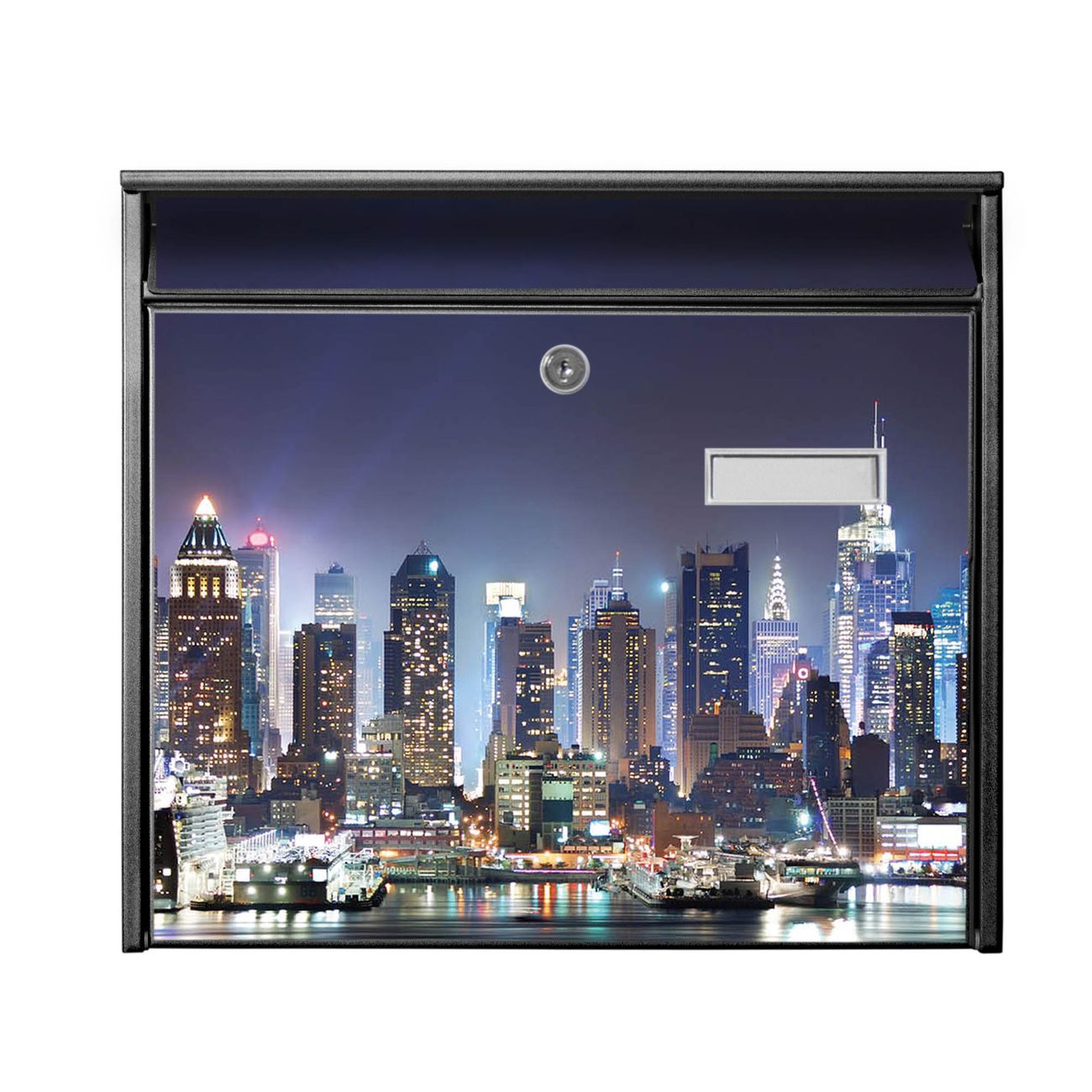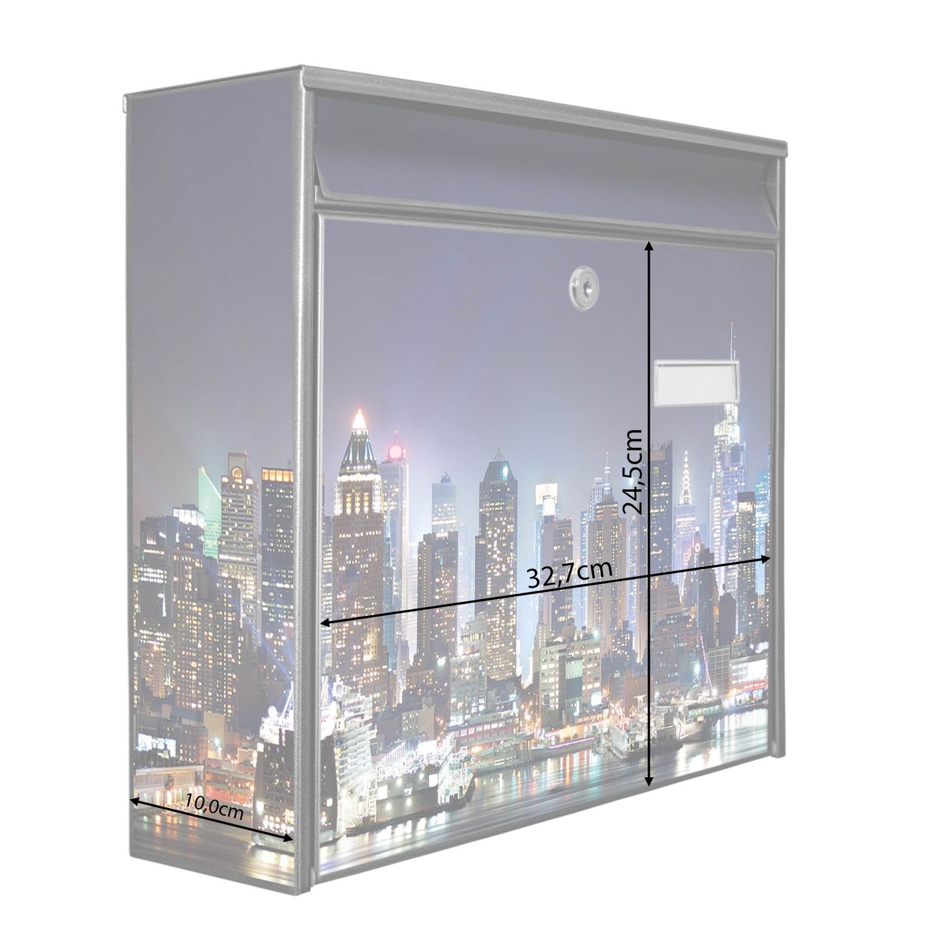 Der Burg Wächter Mail Briefkasten mit Motiv New York bietet Ihnen mit seinem Fassungsvermögen genügend Platz auch für große A4 Sendungen. Auf Wunsch können Sie bei uns den passenden Standfuß kaufen und so aus dem Wandbriefkasten einen Standbriefkasten machen. Wir bieten Ihnen ebenfalls Namensschilder, bereits beschriftet oder frei zu beschriften, und verschiedene selbst gestaltete Bitte-Keine-Werbung-Aufkleber.