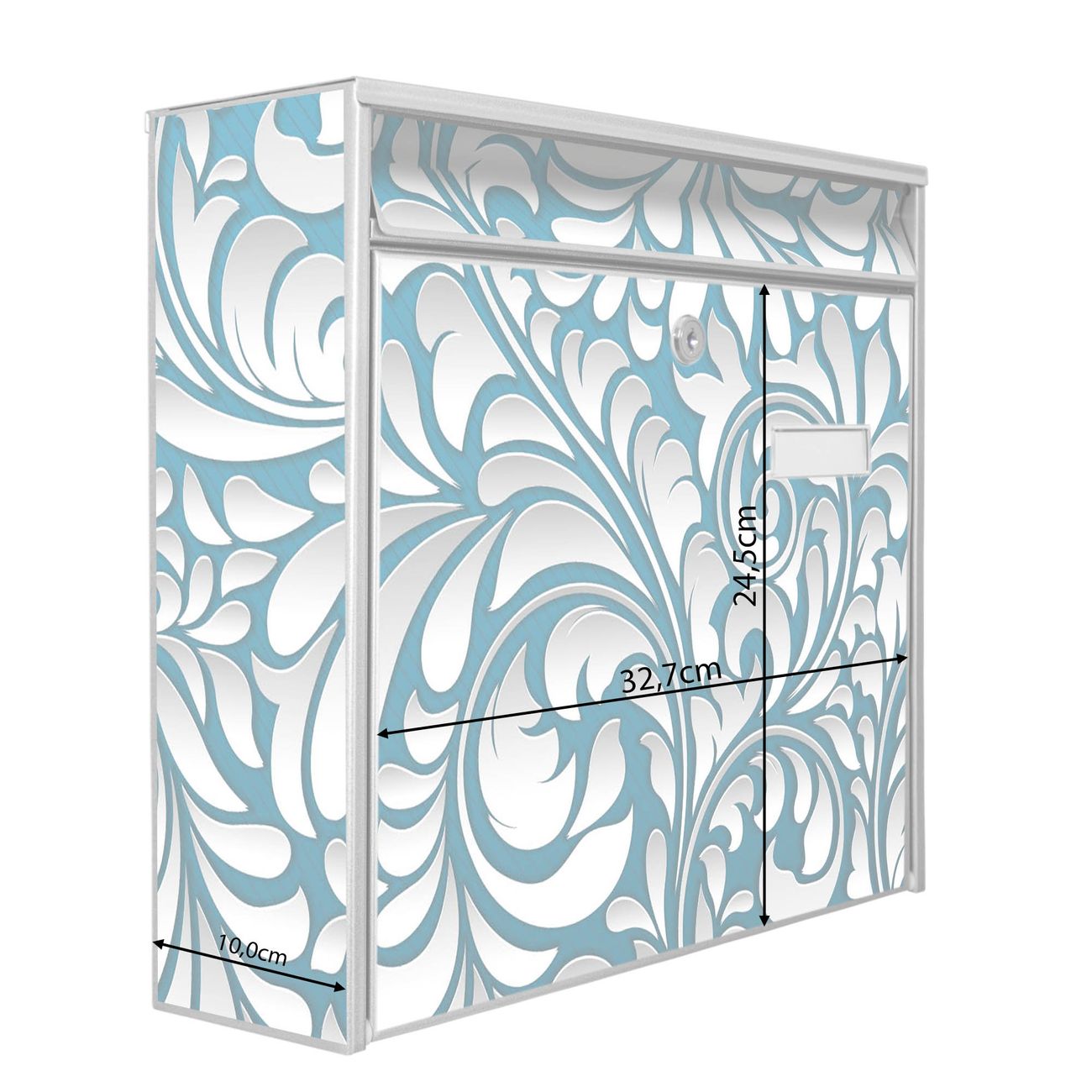 Die Größe des Briefkastens ist 36 x 32 x 10cm (BxHxT) groß. Das Motiv besteht aus einer wetter- und UV-festen Folie, die mit einem Schutzlaminat überzogen ist und Ihren Briefkasten zusätzlich vor Kratzern schützt. Sie erhalten 2 Schlüssel sowie das Montagematerial.