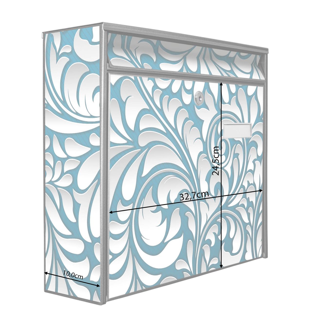 Die Größe des Briefkastens ist 36 x 32 x 10cm (BxHxT) groß. Das Motiv besteht aus einer wetter- und UV-festen Folie, die mit einem Schutzlaminat überzogen ist und Ihren Briefkasten zusätzlich vor Kratzern schützt. Sie erhalten 2 Schlüssel sowie das Montagematerial.