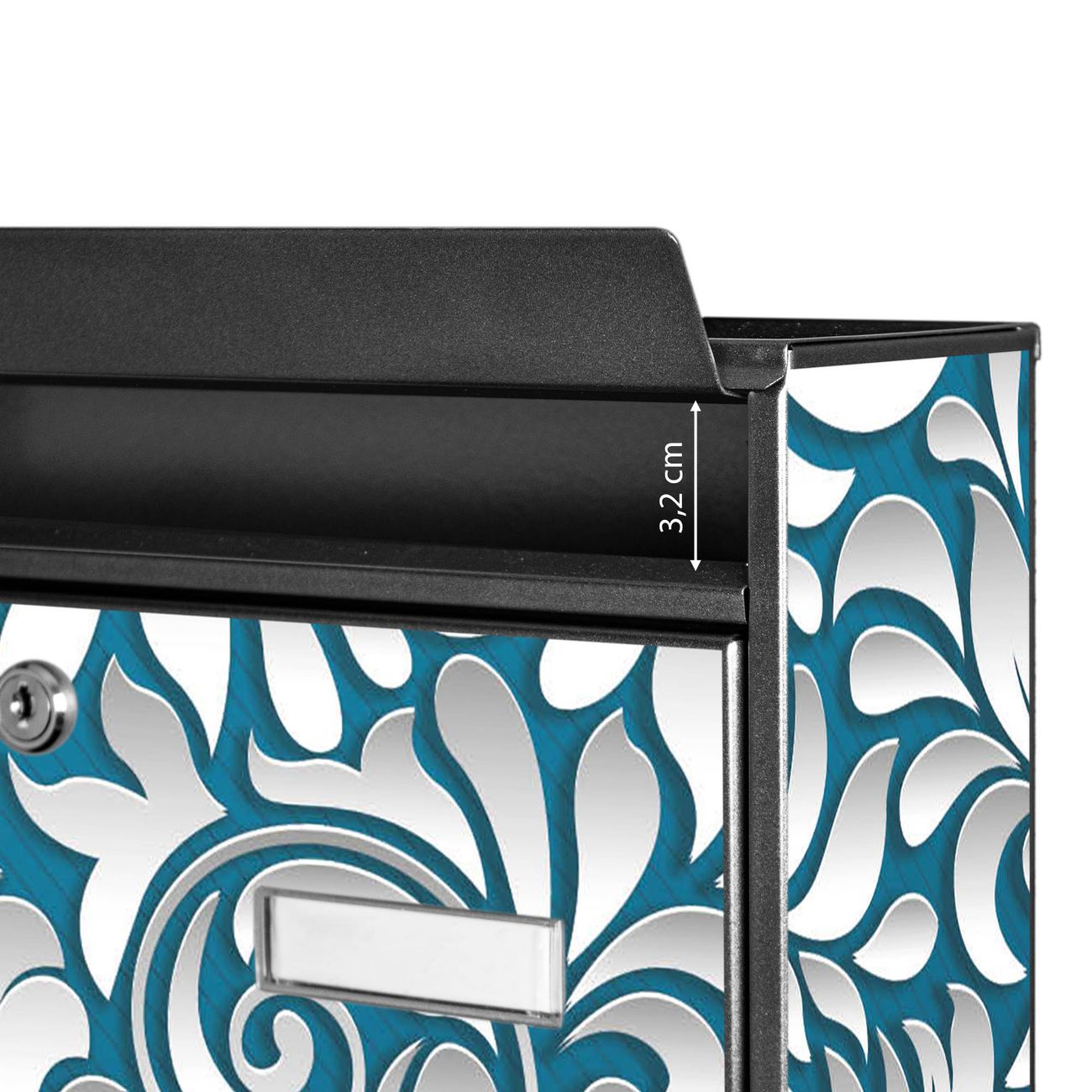 Der Burg Wächter Mail Briefkasten mit Motiv Opulente Ranke bietet Ihnen mit seinem Fassungsvermögen genügend Platz auch für große A4 Sendungen. Auf Wunsch können Sie bei uns den passenden Standfuß kaufen und so aus dem Wandbriefkasten einen Standbriefkasten machen. Wir bieten Ihnen ebenfalls Namensschilder, bereits beschriftet oder frei zu beschriften, und verschiedene selbst gestaltete Bitte-Keine-Werbung-Aufkleber.