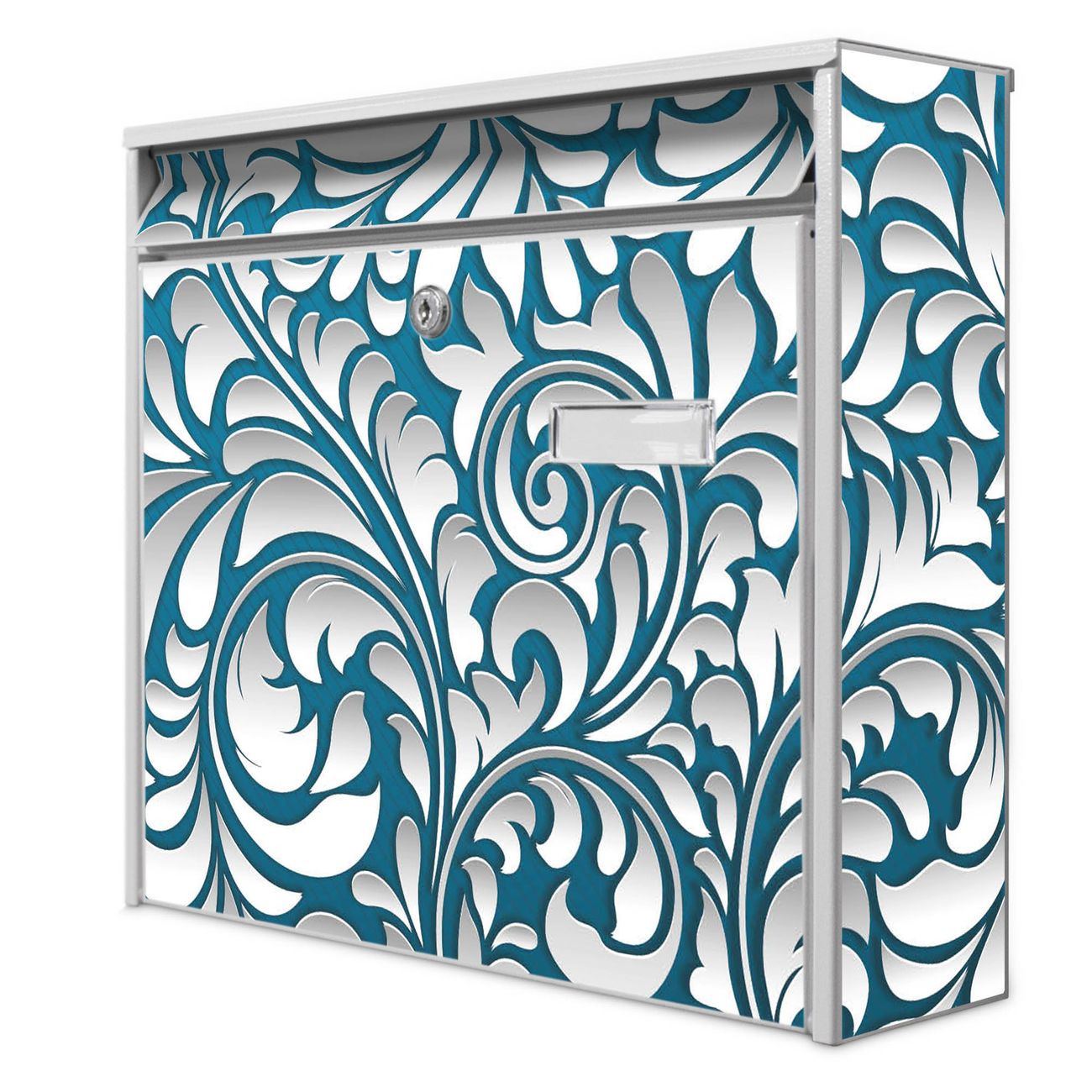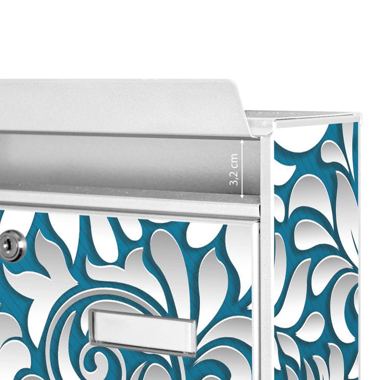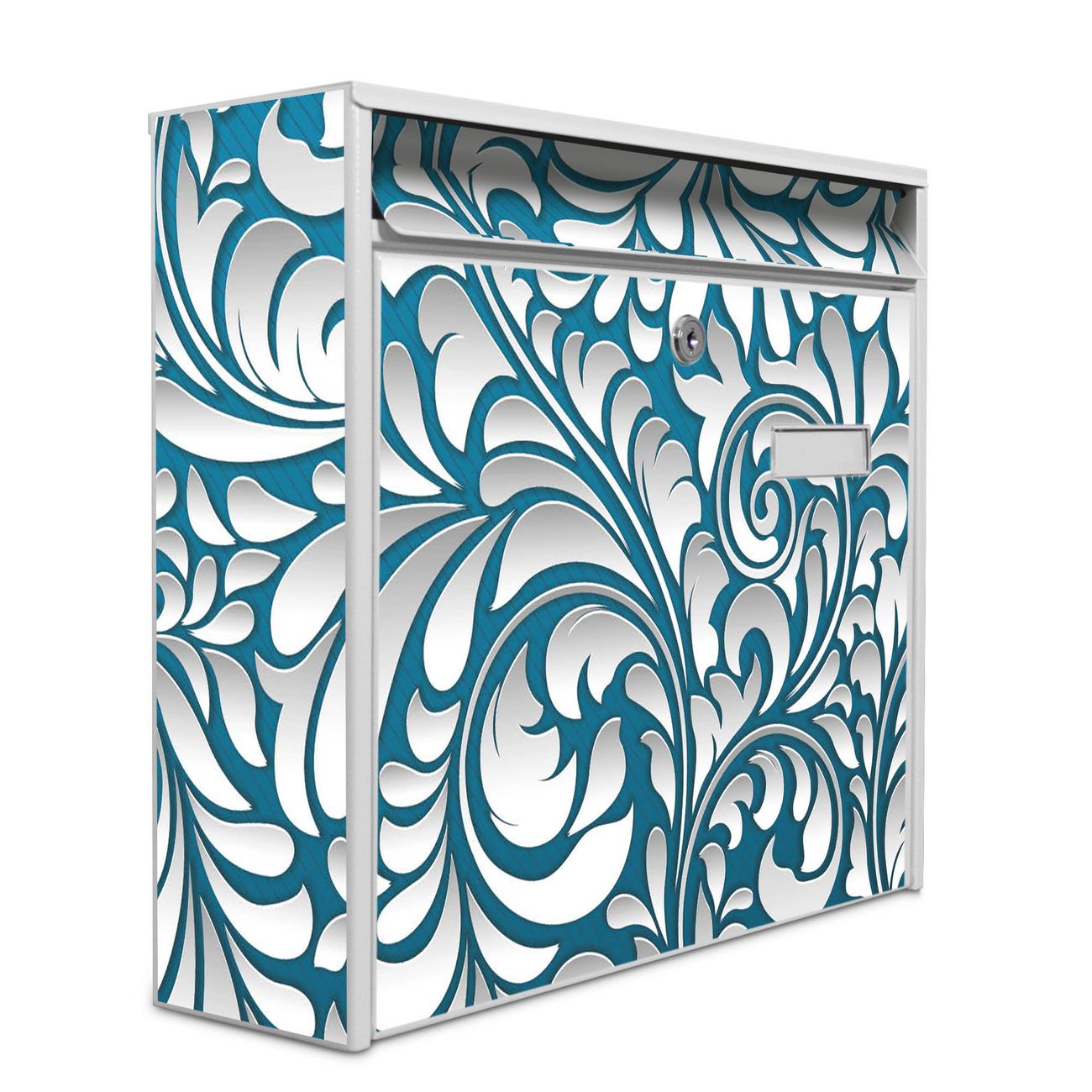 Der Postkasten mit Motiv Opulente Ranke hat ein sehr ansprechendes und zeitloses Design. Heben Sie Sich von der tristen grauen Masse ab, ohne auf Funktionalität zu verzichten. Die weite Öffnung ohne scharfe Kanten ermöglicht eine einfache Handhabung beim Entnehmen der Post. Die Größe bietet genügend Platz für Sendungen aller Art, der Einwurf fasst auch größere A4 Sendungen. Ihr Burg-Wächter Motivbriefkasten wird in Sachsen in einer kleinen Manufaktur von Hand veredelt. Die Motivfolie ist lösungsmittelfrei und schutzlaminiert, dies sorgt für einen langen Halt. Wir legen großen Wert auf die Verbindung von Funktionalität und Design.