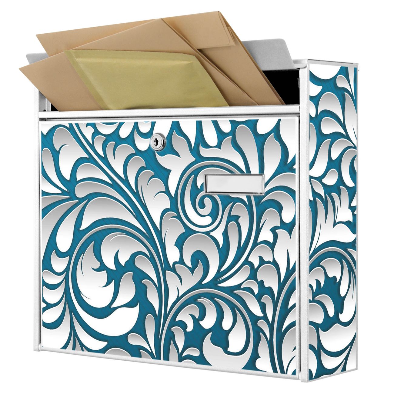 Der Burg Wächter Mail Briefkasten mit Motiv Opulente Ranke bietet Ihnen mit seinem Fassungsvermögen genügend Platz auch für große A4 Sendungen. Auf Wunsch können Sie bei uns den passenden Standfuß kaufen und so aus dem Wandbriefkasten einen Standbriefkasten machen. Wir bieten Ihnen ebenfalls Namensschilder, bereits beschriftet oder frei zu beschriften, und verschiedene selbst gestaltete Bitte-Keine-Werbung-Aufkleber.