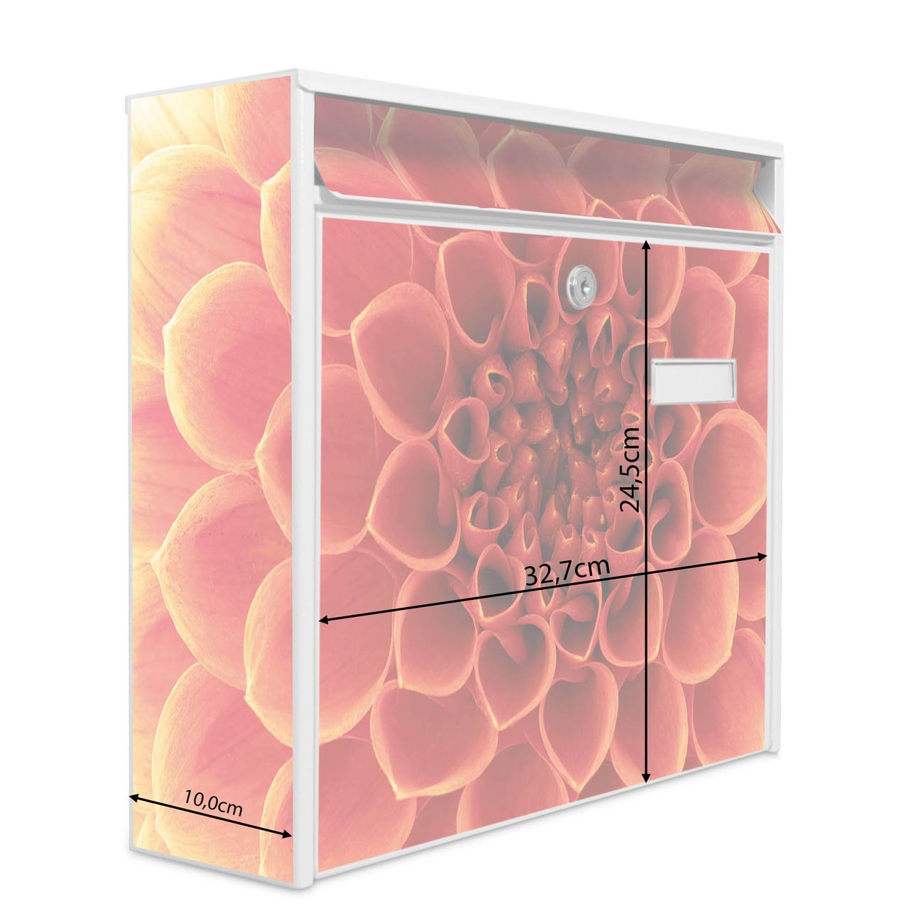 Der Burg Wächter Mail Briefkasten mit Motiv Orange Chrysantheme bietet Ihnen mit seinem Fassungsvermögen genügend Platz auch für große A4 Sendungen. Auf Wunsch können Sie bei uns den passenden Standfuß kaufen und so aus dem Wandbriefkasten einen Standbriefkasten machen. Wir bieten Ihnen ebenfalls Namensschilder, bereits beschriftet oder frei zu beschriften, und verschiedene selbst gestaltete Bitte-Keine-Werbung-Aufkleber.