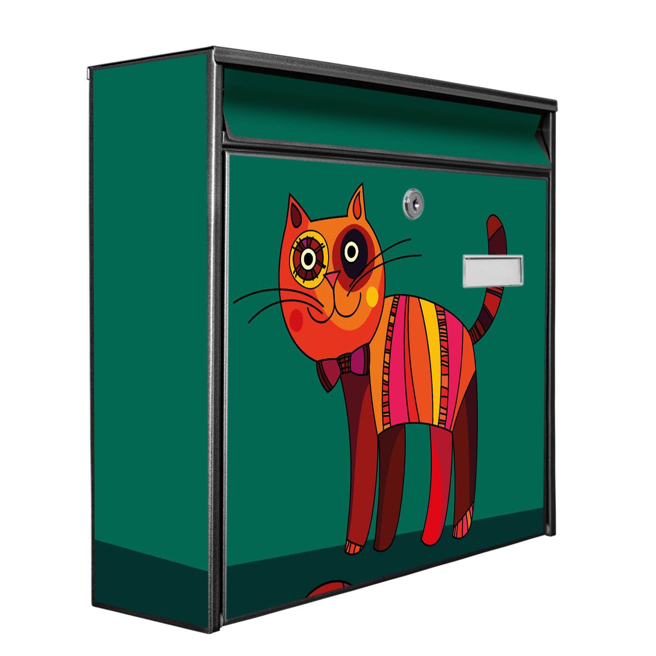Der Burg Wächter Mail Briefkasten mit Motiv Orange Katze bietet Ihnen mit seinem Fassungsvermögen genügend Platz auch für große A4 Sendungen. Auf Wunsch können Sie bei uns den passenden Standfuß kaufen und so aus dem Wandbriefkasten einen Standbriefkasten machen. Wir bieten Ihnen ebenfalls Namensschilder, bereits beschriftet oder frei zu beschriften, und verschiedene selbst gestaltete Bitte-Keine-Werbung-Aufkleber.