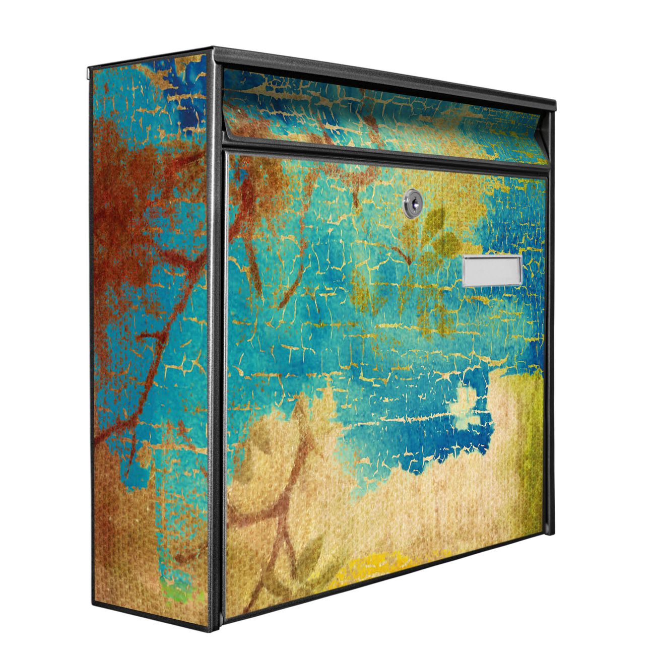 Der Postkasten mit Motiv Patina hat ein sehr ansprechendes und zeitloses Design. Heben Sie Sich von der tristen grauen Masse ab, ohne auf Funktionalität zu verzichten. Die weite Öffnung ohne scharfe Kanten ermöglicht eine einfache Handhabung beim Entnehmen der Post. Die Größe bietet genügend Platz für Sendungen aller Art, der Einwurf fasst auch größere A4 Sendungen. Ihr Burg-Wächter Motivbriefkasten wird in Sachsen in einer kleinen Manufaktur von Hand veredelt. Die Motivfolie ist lösungsmittelfrei und schutzlaminiert, dies sorgt für einen langen Halt. Wir legen großen Wert auf die Verbindung von Funktionalität und Design.