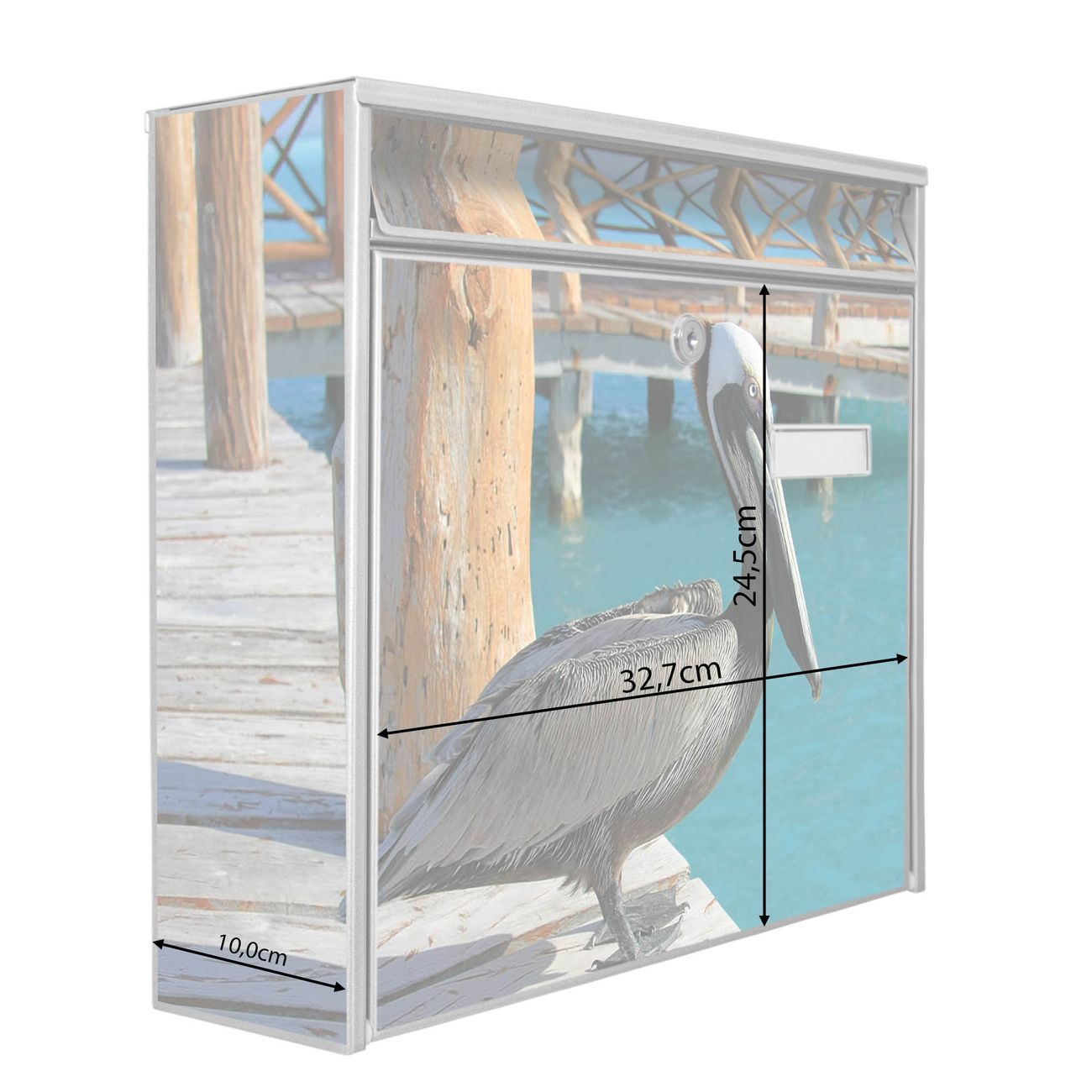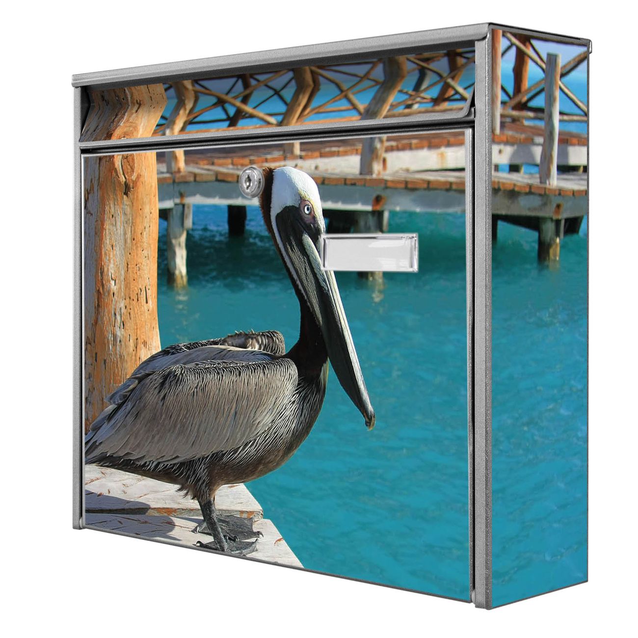 Der Postkasten mit Motiv Pelikan hat ein sehr ansprechendes und zeitloses Design. Heben Sie Sich von der tristen grauen Masse ab, ohne auf Funktionalität zu verzichten. Die weite Öffnung ohne scharfe Kanten ermöglicht eine einfache Handhabung beim Entnehmen der Post. Die Größe bietet genügend Platz für Sendungen aller Art, der Einwurf fasst auch größere A4 Sendungen. Ihr Burg-Wächter Motivbriefkasten wird in Sachsen in einer kleinen Manufaktur von Hand veredelt. Die Motivfolie ist lösungsmittelfrei und schutzlaminiert, dies sorgt für einen langen Halt. Wir legen großen Wert auf die Verbindung von Funktionalität und Design.