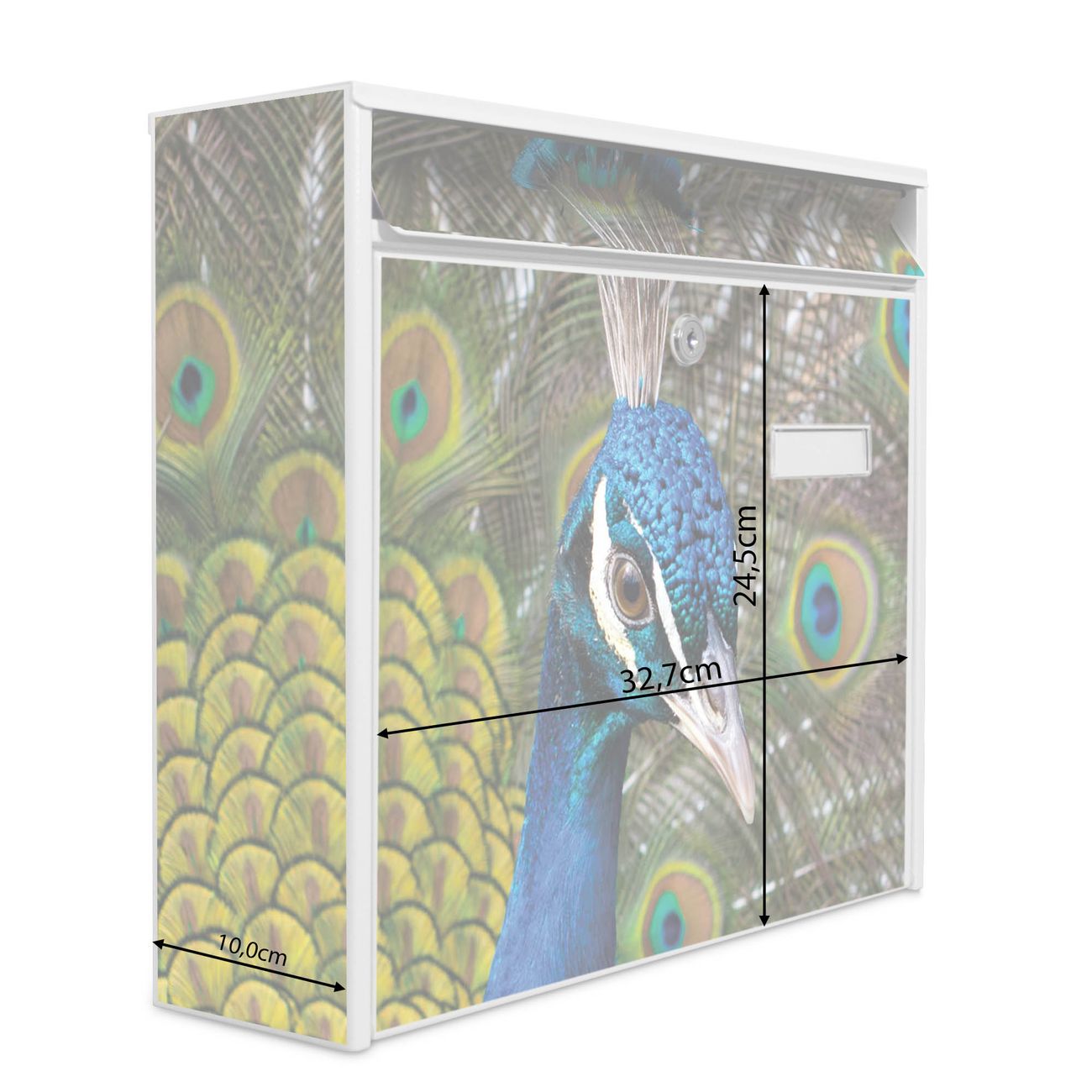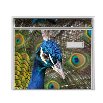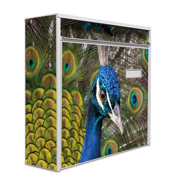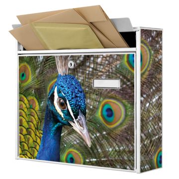 Der Burg Wächter Mail Briefkasten mit Motiv Pfau bietet Ihnen mit seinem Fassungsvermögen genügend Platz auch für große A4 Sendungen. Auf Wunsch können Sie bei uns den passenden Standfuß kaufen und so aus dem Wandbriefkasten einen Standbriefkasten machen. Wir bieten Ihnen ebenfalls Namensschilder, bereits beschriftet oder frei zu beschriften, und verschiedene selbst gestaltete Bitte-Keine-Werbung-Aufkleber.