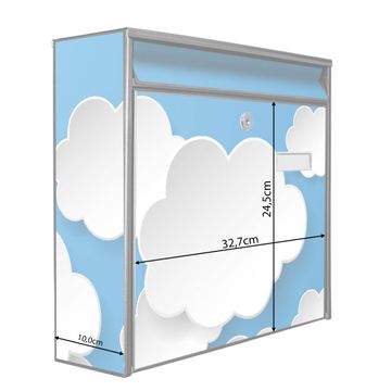 Der Burg Wächter Mail Briefkasten mit Motiv Plastische Wolken bietet Ihnen mit seinem Fassungsvermögen genügend Platz auch für große A4 Sendungen. Auf Wunsch können Sie bei uns den passenden Standfuß kaufen und so aus dem Wandbriefkasten einen Standbriefkasten machen. Wir bieten Ihnen ebenfalls Namensschilder, bereits beschriftet oder frei zu beschriften, und verschiedene selbst gestaltete Bitte-Keine-Werbung-Aufkleber.