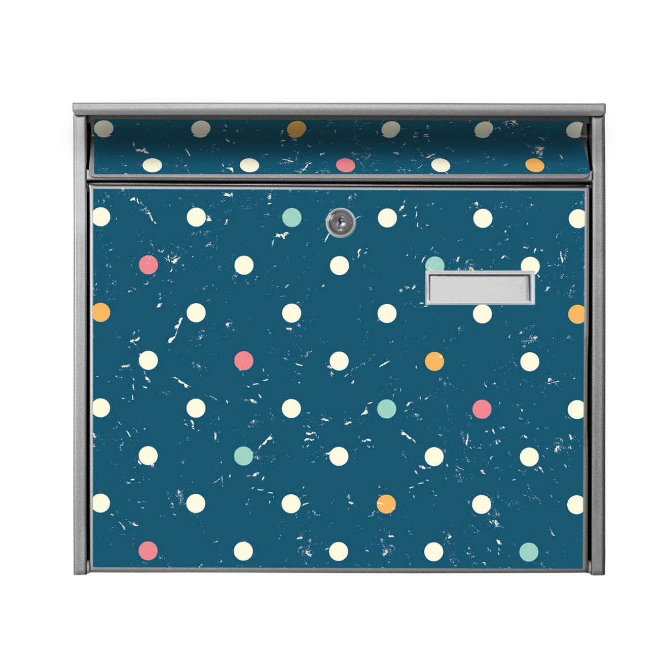 Der Postkasten mit Motiv Punkte auf Blau hat ein sehr ansprechendes und zeitloses Design. Heben Sie Sich von der tristen grauen Masse ab, ohne auf Funktionalität zu verzichten. Die weite Öffnung ohne scharfe Kanten ermöglicht eine einfache Handhabung beim Entnehmen der Post. Die Größe bietet genügend Platz für Sendungen aller Art, der Einwurf fasst auch größere A4 Sendungen. Ihr Burg-Wächter Motivbriefkasten wird in Sachsen in einer kleinen Manufaktur von Hand veredelt. Die Motivfolie ist lösungsmittelfrei und schutzlaminiert, dies sorgt für einen langen Halt. Wir legen großen Wert auf die Verbindung von Funktionalität und Design.
