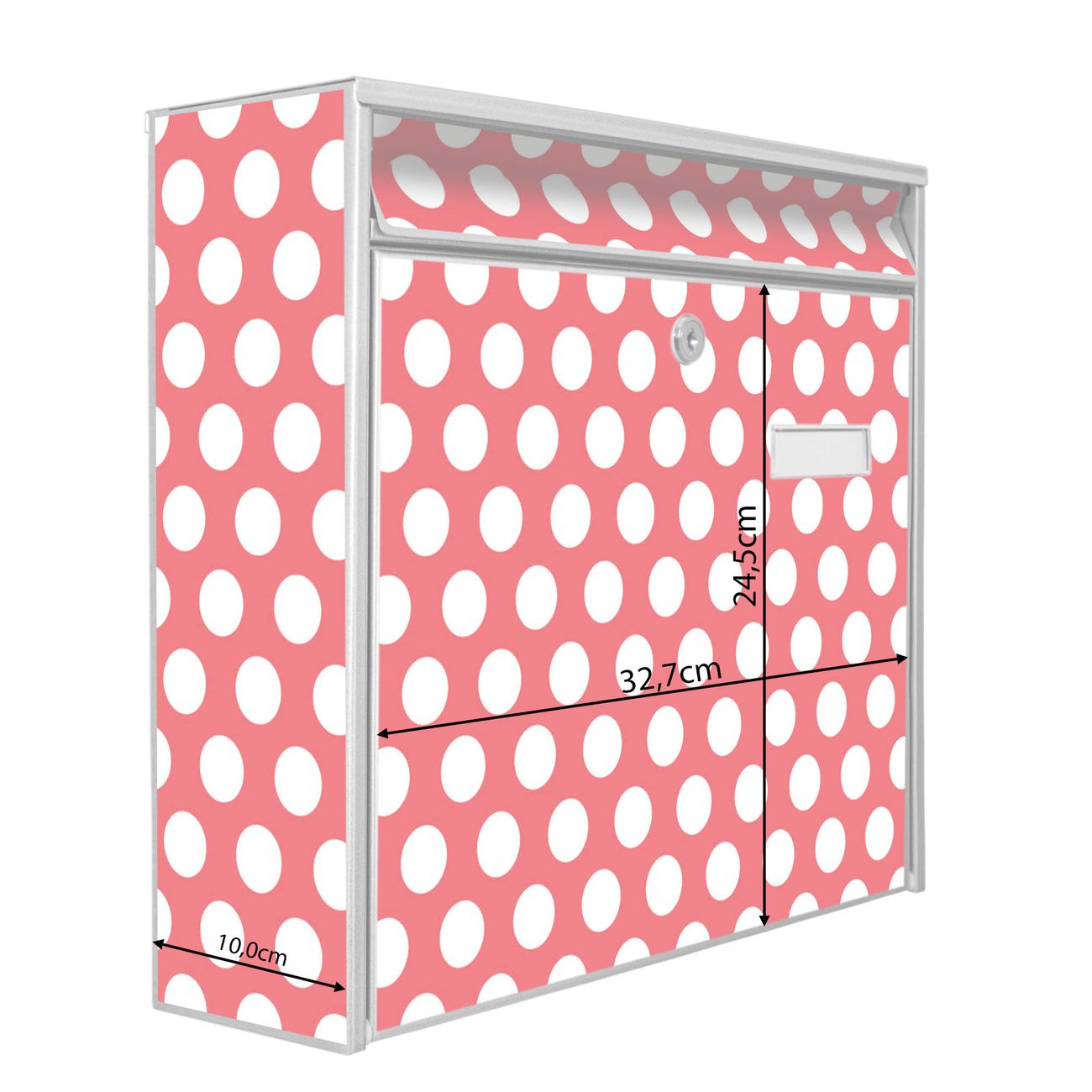 Der Burg Wächter Mail Briefkasten mit Motiv Punkte Rot bietet Ihnen mit seinem Fassungsvermögen genügend Platz auch für große A4 Sendungen. Auf Wunsch können Sie bei uns den passenden Standfuß kaufen und so aus dem Wandbriefkasten einen Standbriefkasten machen. Wir bieten Ihnen ebenfalls Namensschilder, bereits beschriftet oder frei zu beschriften, und verschiedene selbst gestaltete Bitte-Keine-Werbung-Aufkleber.