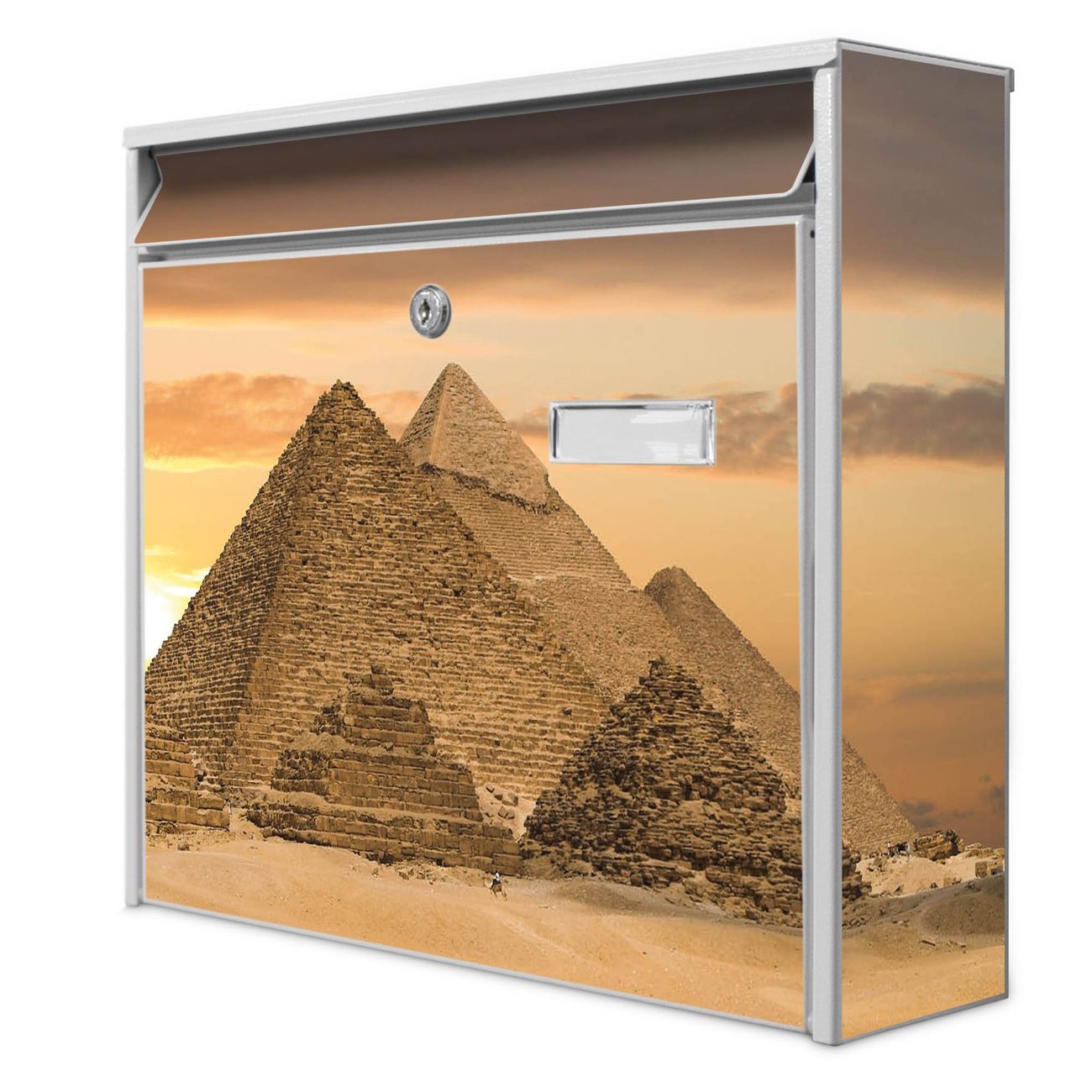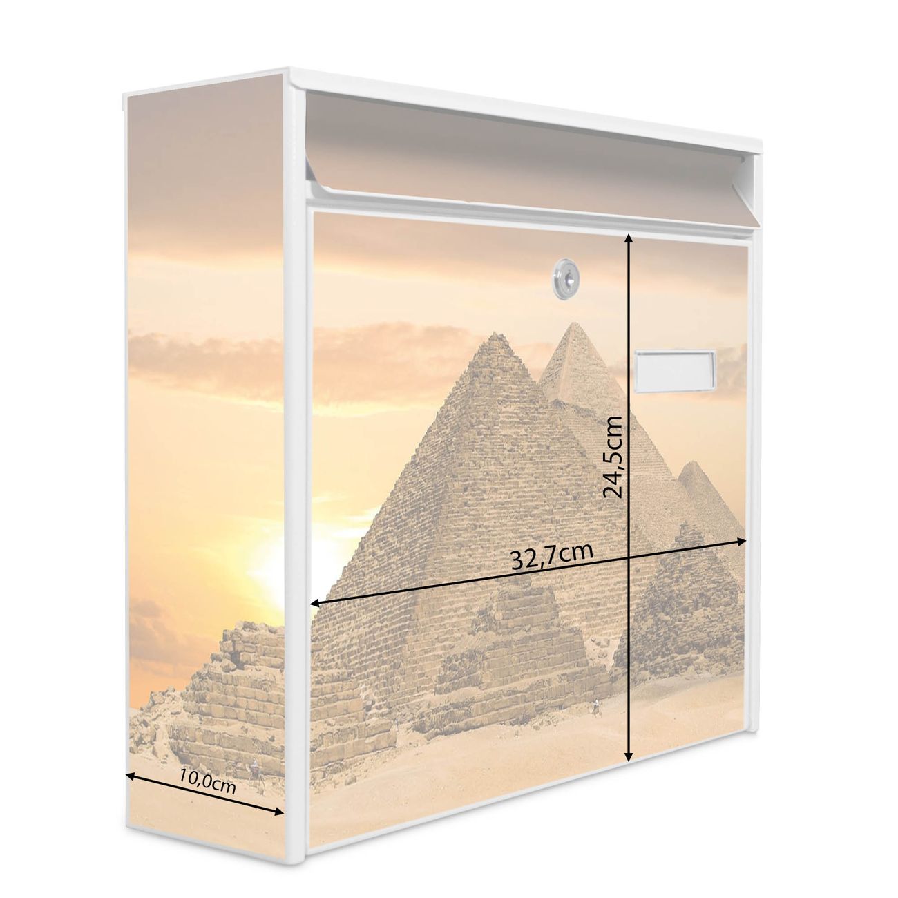 Der Postkasten mit Motiv Pyramiden hat ein sehr ansprechendes und zeitloses Design. Heben Sie Sich von der tristen grauen Masse ab, ohne auf Funktionalität zu verzichten. Die weite Öffnung ohne scharfe Kanten ermöglicht eine einfache Handhabung beim Entnehmen der Post. Die Größe bietet genügend Platz für Sendungen aller Art, der Einwurf fasst auch größere A4 Sendungen. Ihr Burg-Wächter Motivbriefkasten wird in Sachsen in einer kleinen Manufaktur von Hand veredelt. Die Motivfolie ist lösungsmittelfrei und schutzlaminiert, dies sorgt für einen langen Halt. Wir legen großen Wert auf die Verbindung von Funktionalität und Design.