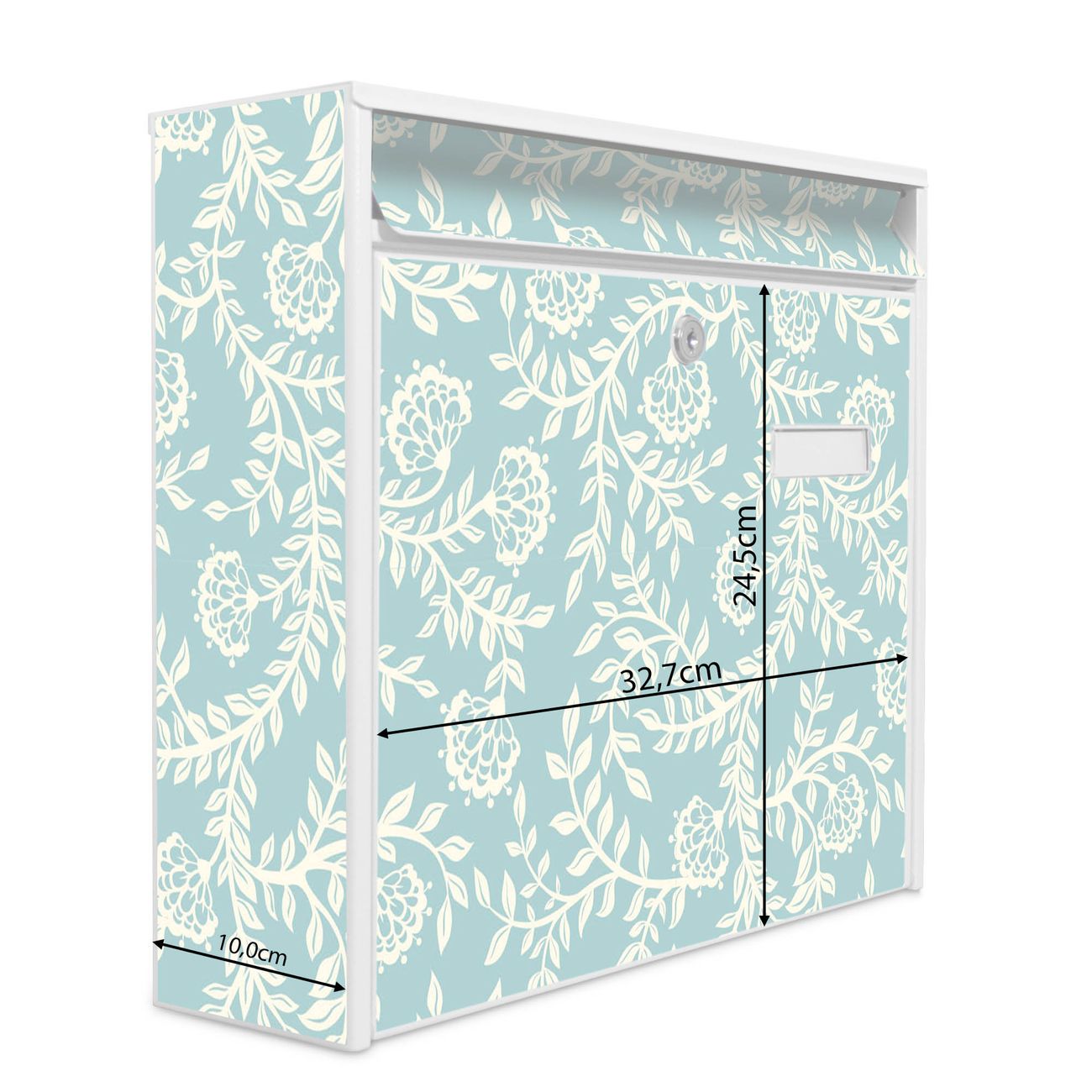 Die Größe des Briefkastens ist 36 x 32 x 10cm (BxHxT) groß. Das Motiv besteht aus einer wetter- und UV-festen Folie, die mit einem Schutzlaminat überzogen ist und Ihren Briefkasten zusätzlich vor Kratzern schützt. Sie erhalten 2 Schlüssel sowie das Montagematerial.