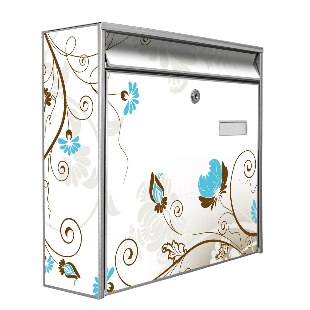 Der Burg Wächter Mail Briefkasten mit Motiv Rankenrahmen bietet Ihnen mit seinem Fassungsvermögen genügend Platz auch für große A4 Sendungen. Auf Wunsch können Sie bei uns den passenden Standfuß kaufen und so aus dem Wandbriefkasten einen Standbriefkasten machen. Wir bieten Ihnen ebenfalls Namensschilder, bereits beschriftet oder frei zu beschriften, und verschiedene selbst gestaltete Bitte-Keine-Werbung-Aufkleber.