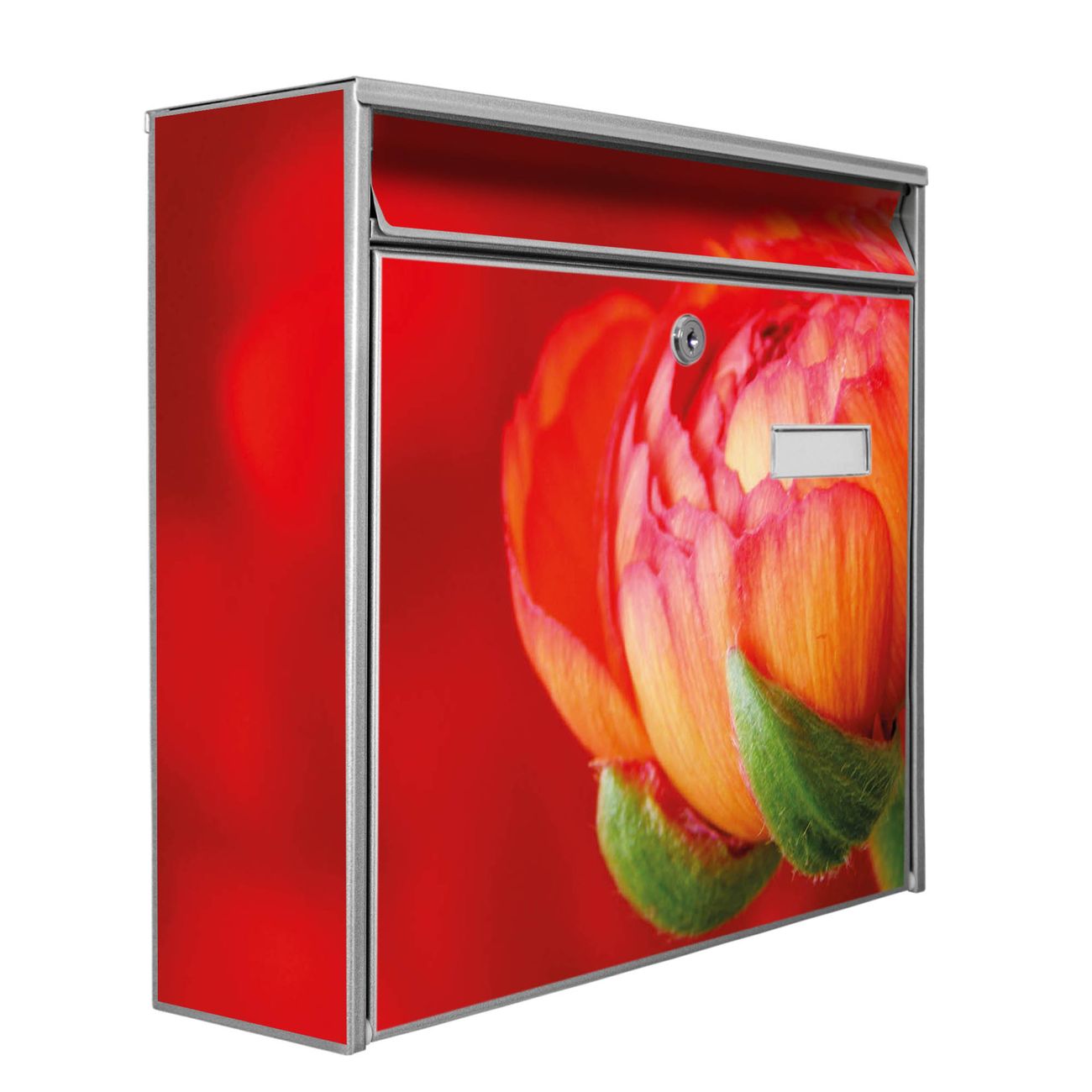 Der Burg Wächter Mail Briefkasten mit Motiv Ranunkel bietet Ihnen mit seinem Fassungsvermögen genügend Platz auch für große A4 Sendungen. Auf Wunsch können Sie bei uns den passenden Standfuß kaufen und so aus dem Wandbriefkasten einen Standbriefkasten machen. Wir bieten Ihnen ebenfalls Namensschilder, bereits beschriftet oder frei zu beschriften, und verschiedene selbst gestaltete Bitte-Keine-Werbung-Aufkleber.