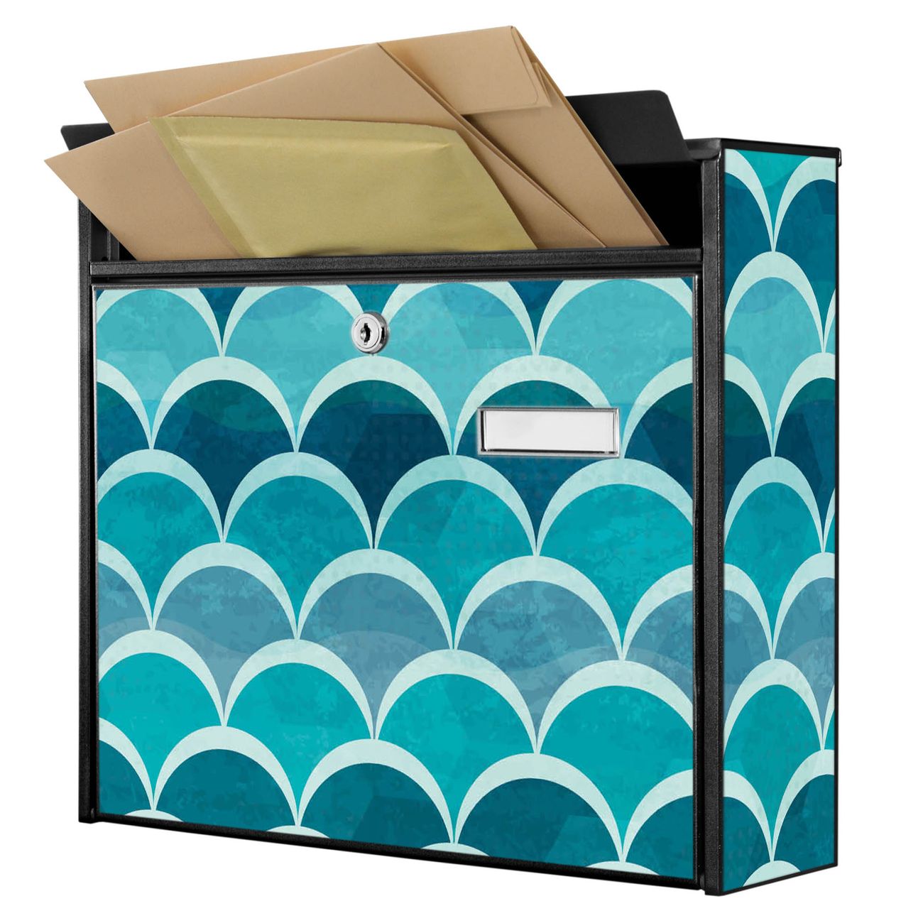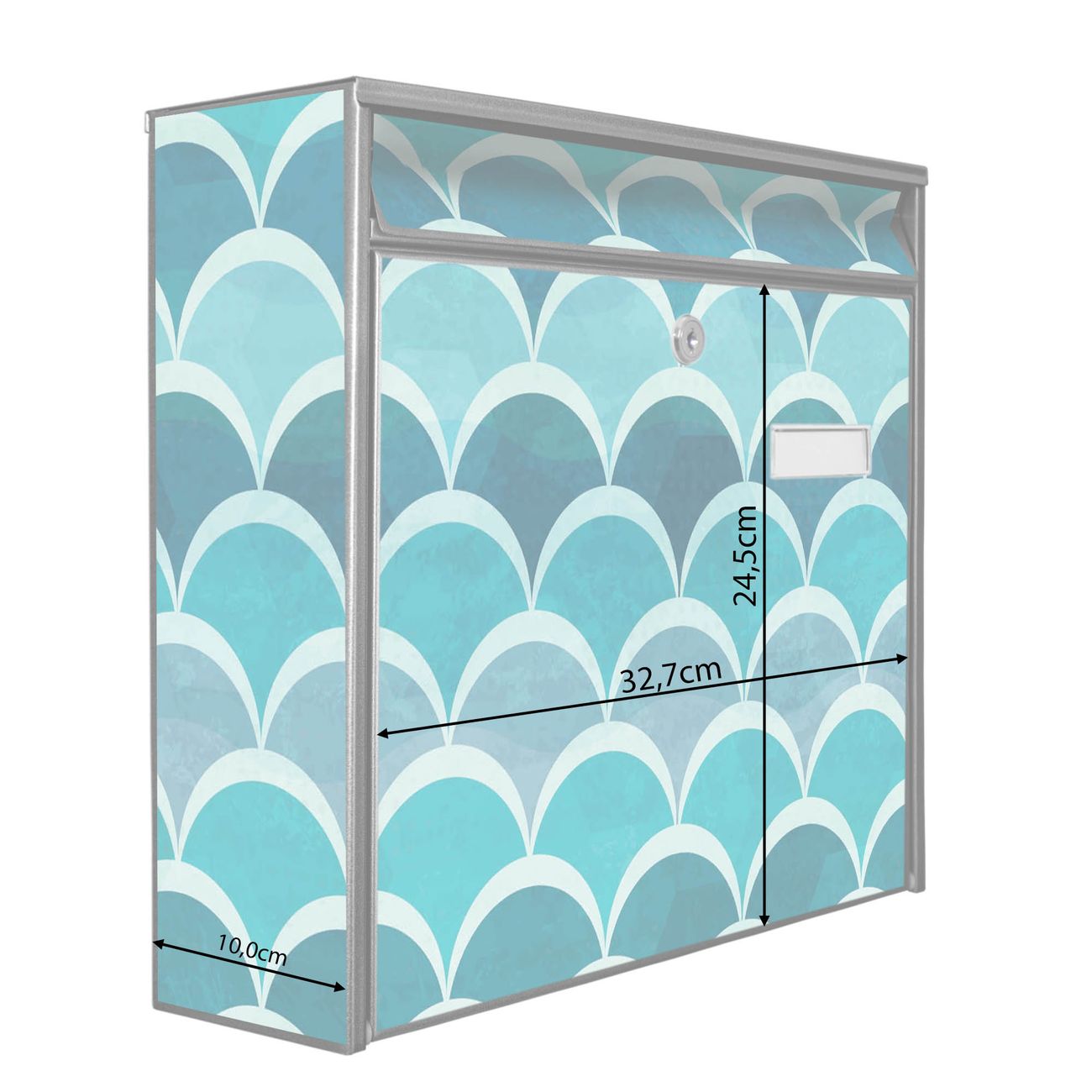 Die Größe des Briefkastens ist 36 x 32 x 10cm (BxHxT) groß. Das Motiv besteht aus einer wetter- und UV-festen Folie, die mit einem Schutzlaminat überzogen ist und Ihren Briefkasten zusätzlich vor Kratzern schützt. Sie erhalten 2 Schlüssel sowie das Montagematerial.