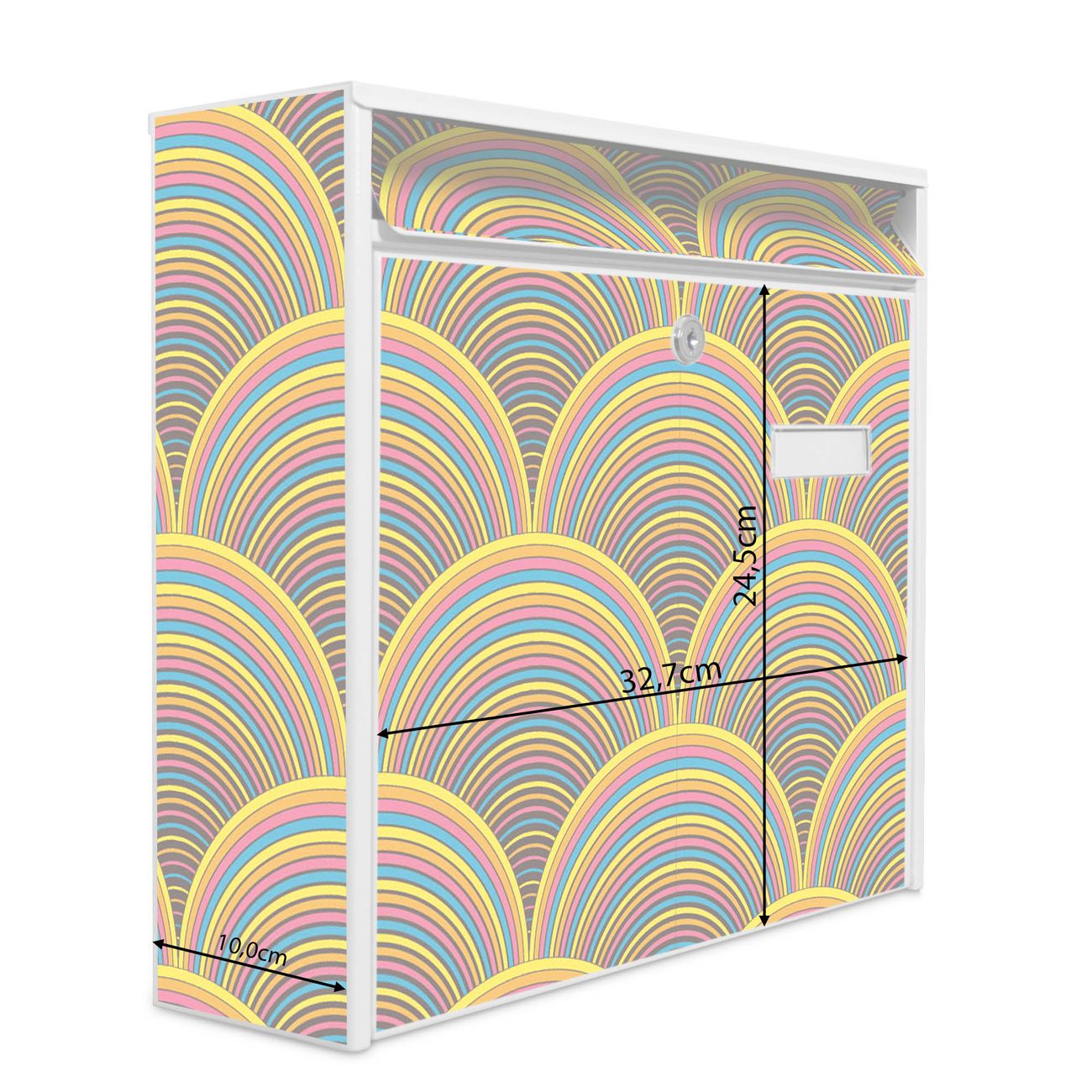 Der Burg Wächter Mail Briefkasten mit Motiv Regenbögen bietet Ihnen mit seinem Fassungsvermögen genügend Platz auch für große A4 Sendungen. Auf Wunsch können Sie bei uns den passenden Standfuß kaufen und so aus dem Wandbriefkasten einen Standbriefkasten machen. Wir bieten Ihnen ebenfalls Namensschilder, bereits beschriftet oder frei zu beschriften, und verschiedene selbst gestaltete Bitte-Keine-Werbung-Aufkleber.