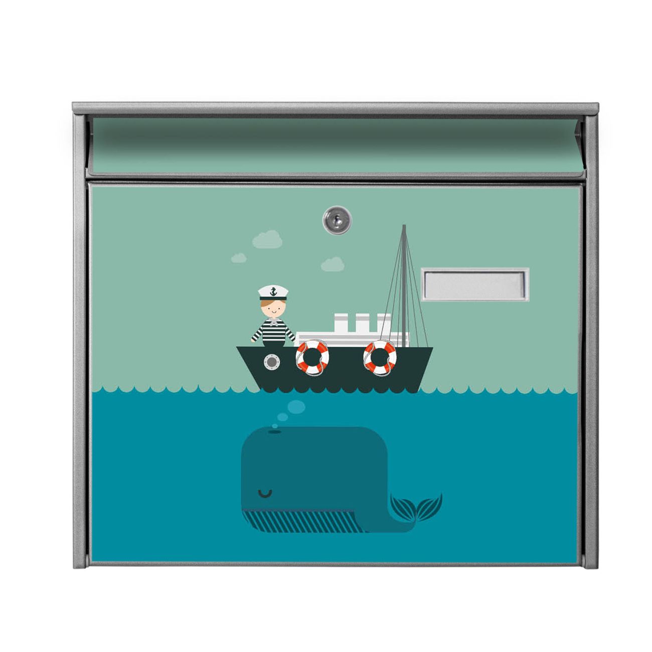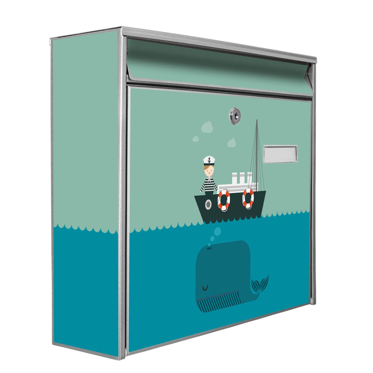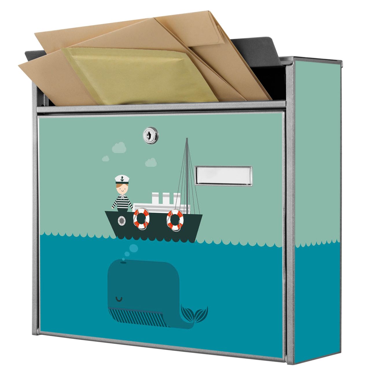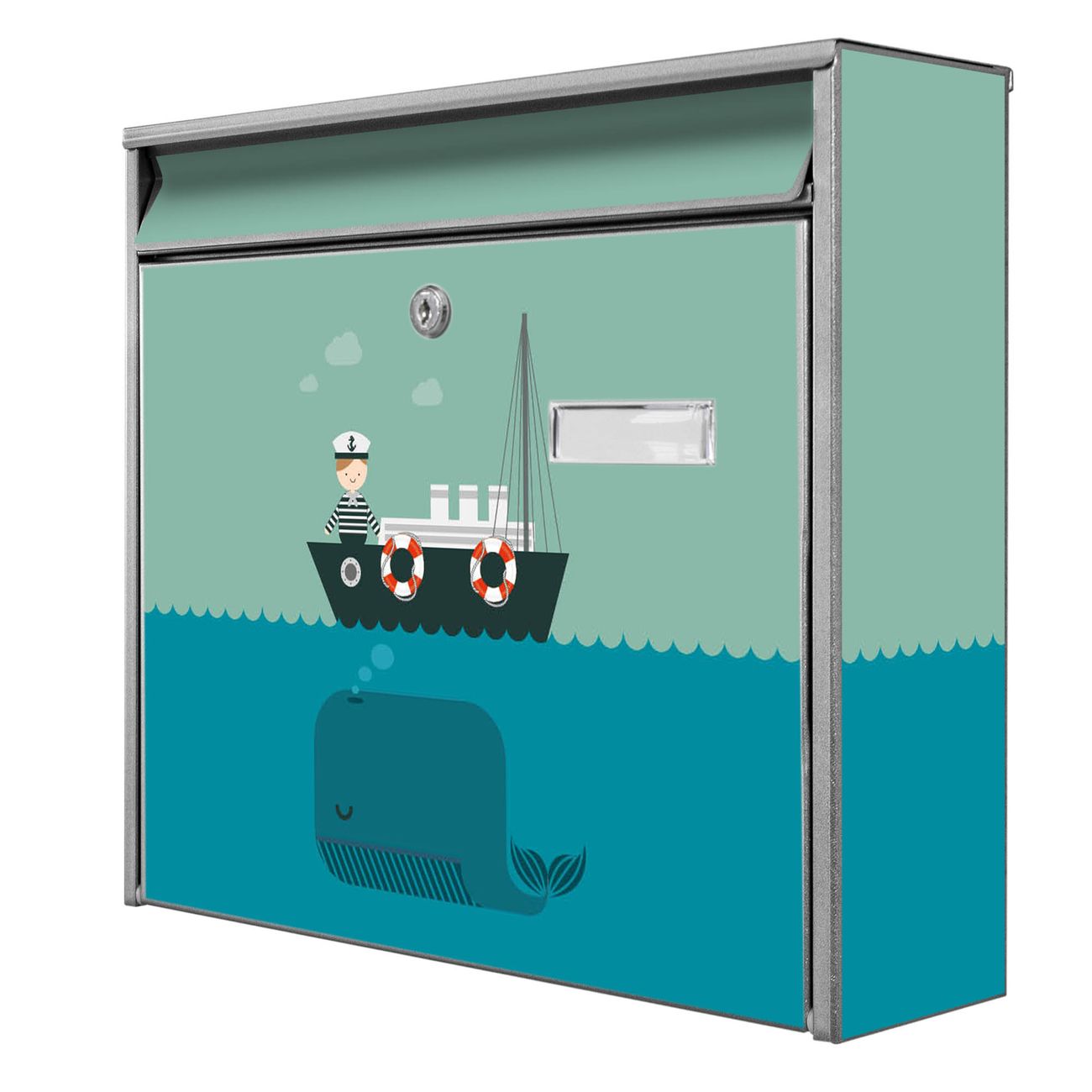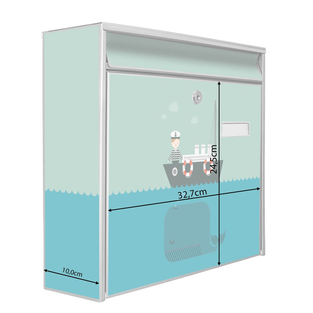 Der Burg Wächter Mail Briefkasten mit Motiv Rettet die Wale bietet Ihnen mit seinem Fassungsvermögen genügend Platz auch für große A4 Sendungen. Auf Wunsch können Sie bei uns den passenden Standfuß kaufen und so aus dem Wandbriefkasten einen Standbriefkasten machen. Wir bieten Ihnen ebenfalls Namensschilder, bereits beschriftet oder frei zu beschriften, und verschiedene selbst gestaltete Bitte-Keine-Werbung-Aufkleber.
