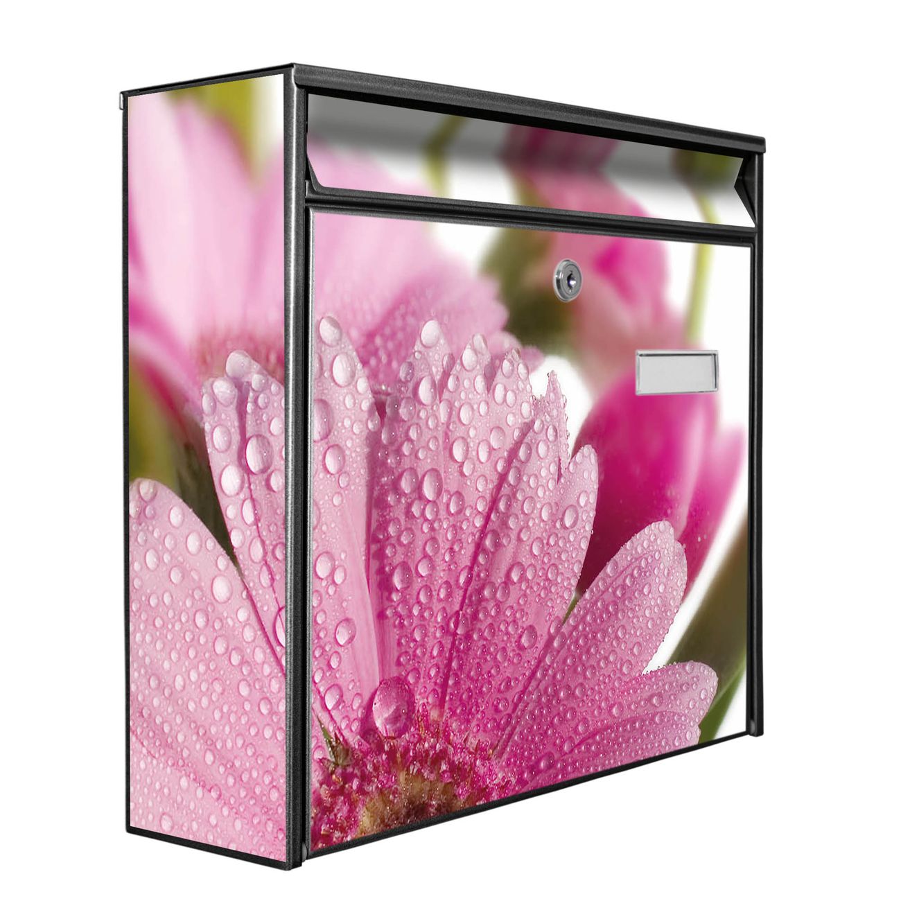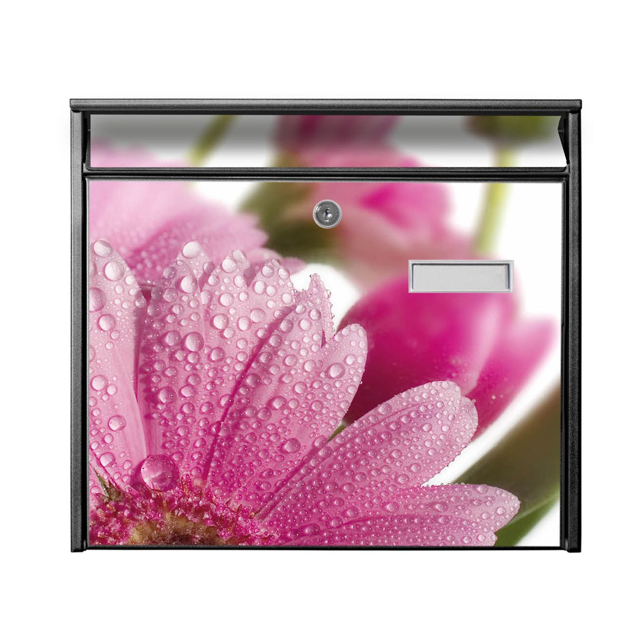 Der Burg Wächter Mail Briefkasten mit Motiv Rosa Gerbera bietet Ihnen mit seinem Fassungsvermögen genügend Platz auch für große A4 Sendungen. Auf Wunsch können Sie bei uns den passenden Standfuß kaufen und so aus dem Wandbriefkasten einen Standbriefkasten machen. Wir bieten Ihnen ebenfalls Namensschilder, bereits beschriftet oder frei zu beschriften, und verschiedene selbst gestaltete Bitte-Keine-Werbung-Aufkleber.