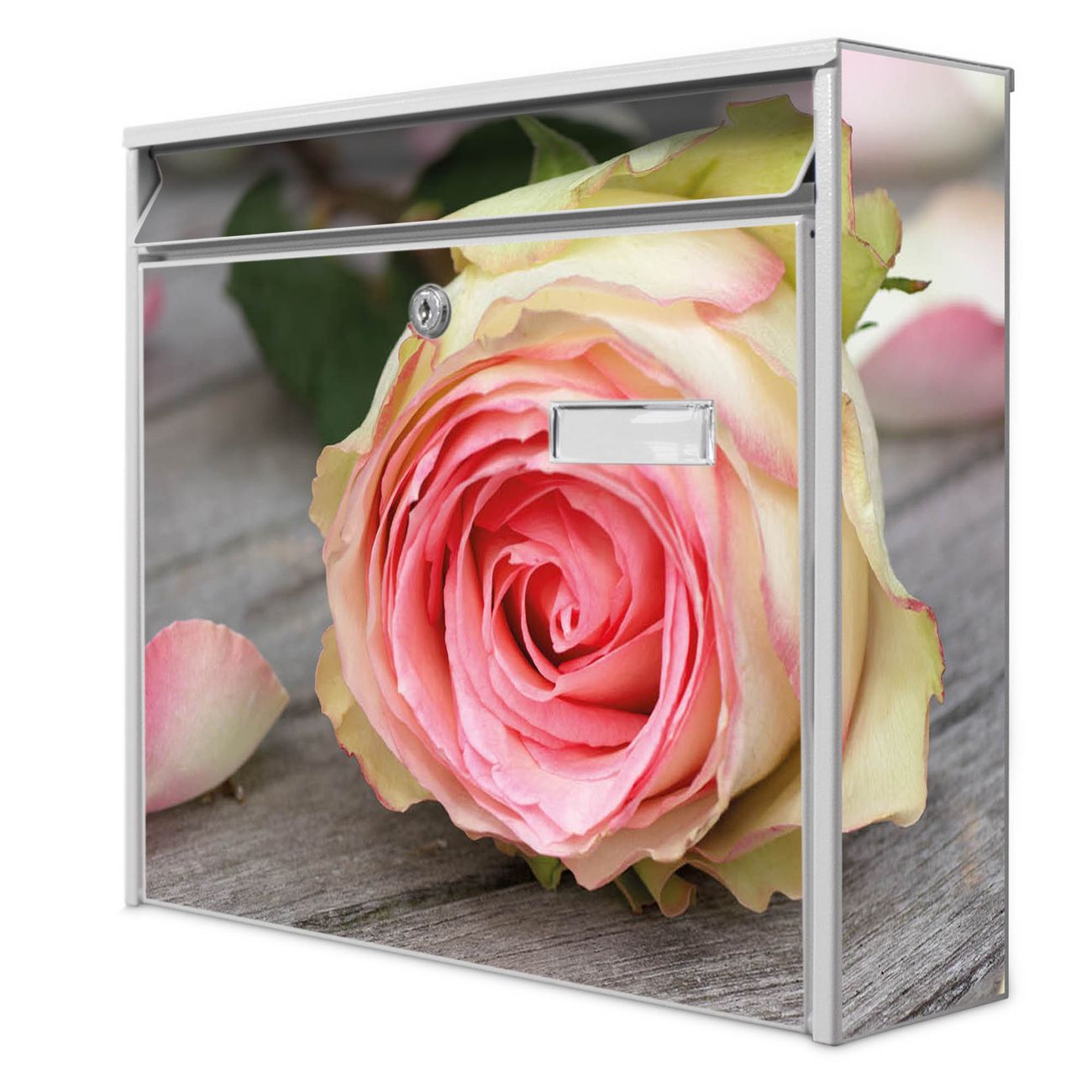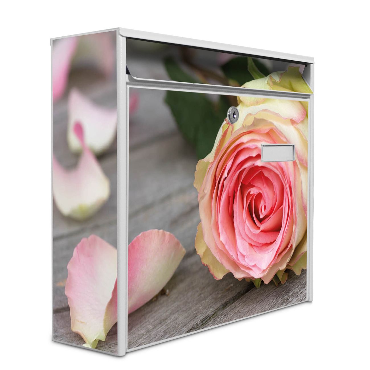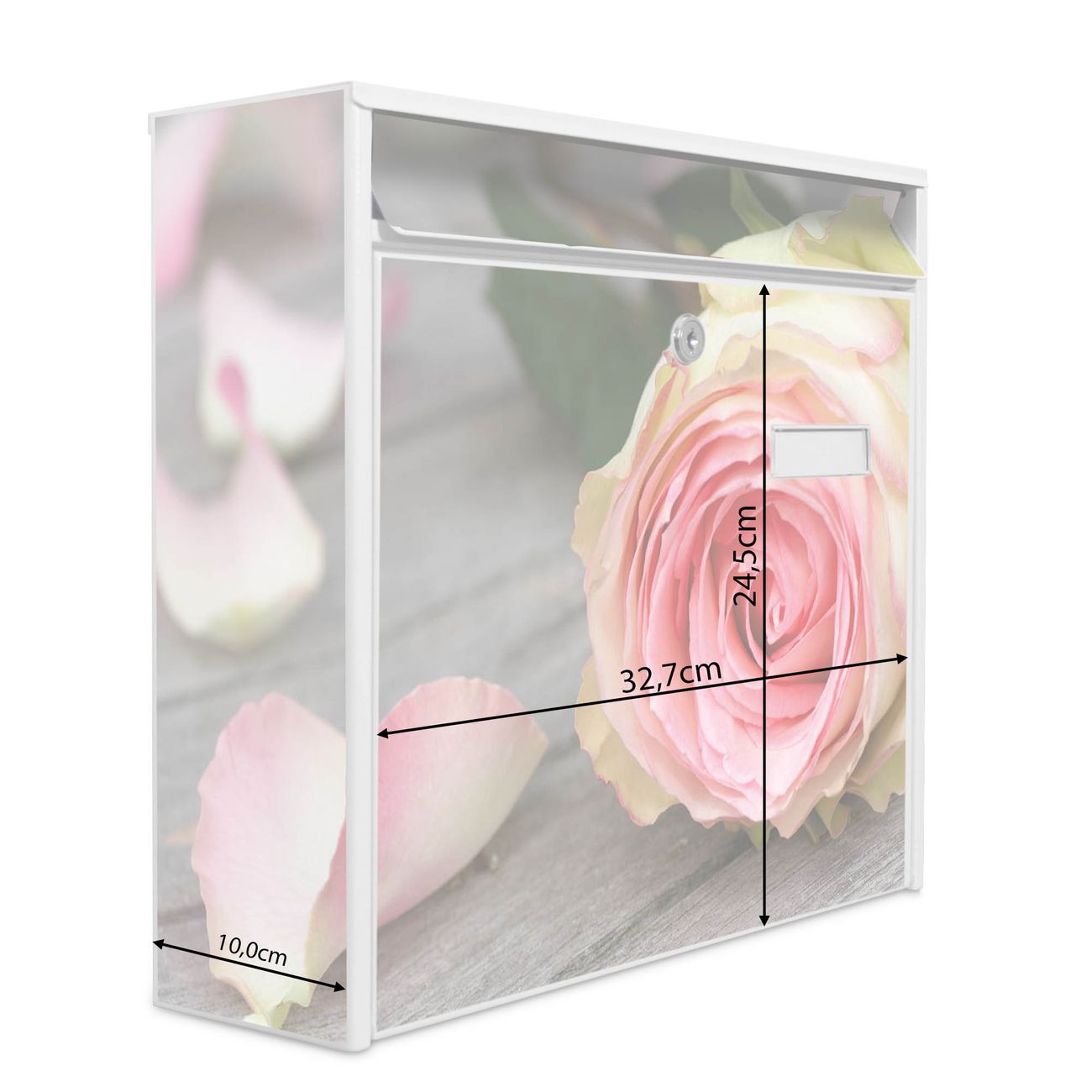 Der Burg Wächter Mail Briefkasten mit Motiv Rosa Rose bietet Ihnen mit seinem Fassungsvermögen genügend Platz auch für große A4 Sendungen. Auf Wunsch können Sie bei uns den passenden Standfuß kaufen und so aus dem Wandbriefkasten einen Standbriefkasten machen. Wir bieten Ihnen ebenfalls Namensschilder, bereits beschriftet oder frei zu beschriften, und verschiedene selbst gestaltete Bitte-Keine-Werbung-Aufkleber.
