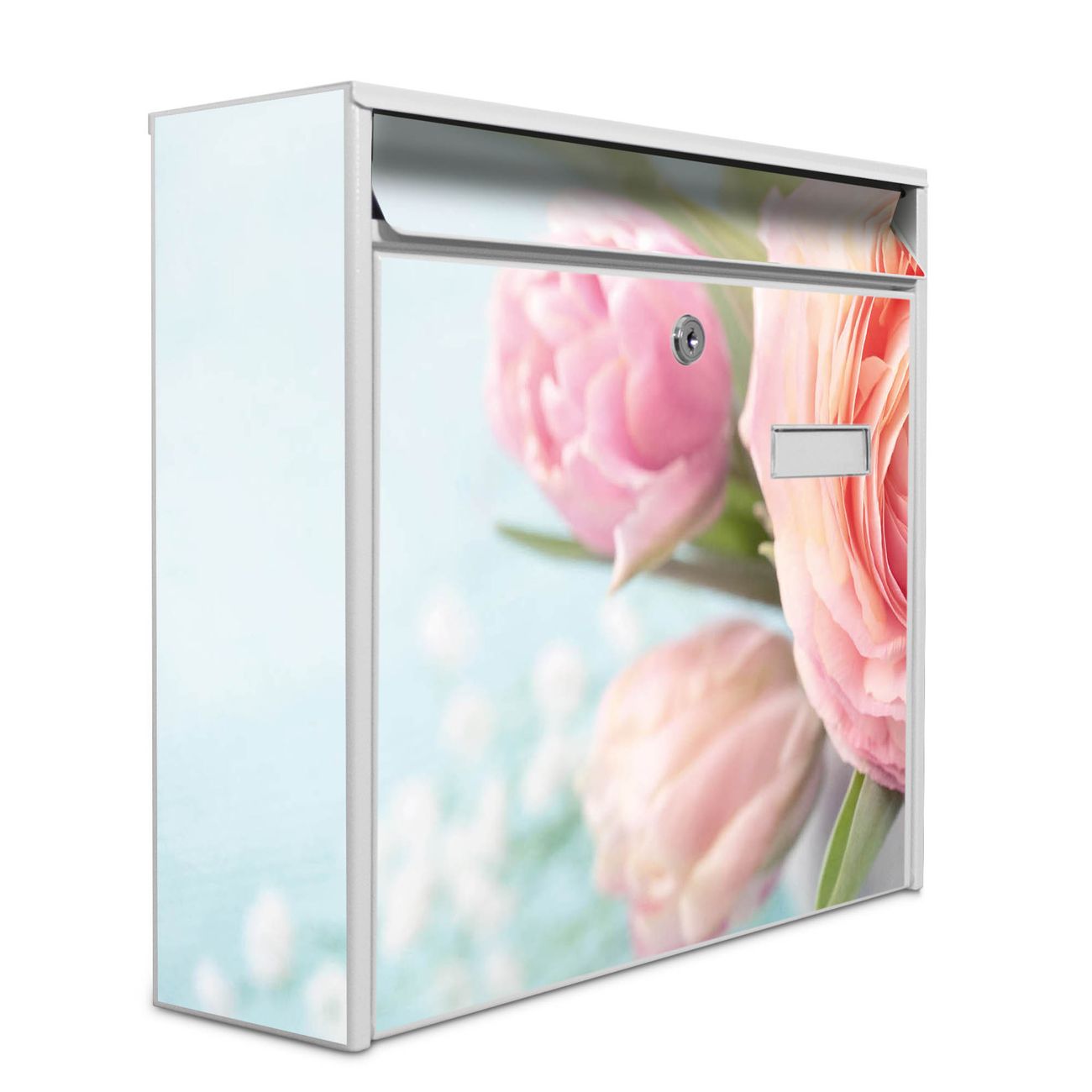 Der Burg Wächter Mail Briefkasten mit Motiv Rosa Tulpe bietet Ihnen mit seinem Fassungsvermögen genügend Platz auch für große A4 Sendungen. Auf Wunsch können Sie bei uns den passenden Standfuß kaufen und so aus dem Wandbriefkasten einen Standbriefkasten machen. Wir bieten Ihnen ebenfalls Namensschilder, bereits beschriftet oder frei zu beschriften, und verschiedene selbst gestaltete Bitte-Keine-Werbung-Aufkleber.