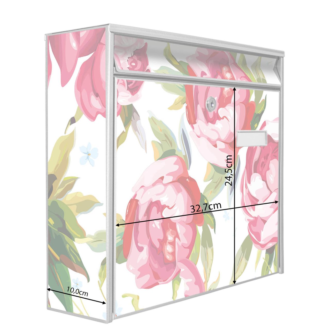 Der Burg Wächter Mail Briefkasten mit Motiv Rosen Rustikal bietet Ihnen mit seinem Fassungsvermögen genügend Platz auch für große A4 Sendungen. Auf Wunsch können Sie bei uns den passenden Standfuß kaufen und so aus dem Wandbriefkasten einen Standbriefkasten machen. Wir bieten Ihnen ebenfalls Namensschilder, bereits beschriftet oder frei zu beschriften, und verschiedene selbst gestaltete Bitte-Keine-Werbung-Aufkleber.