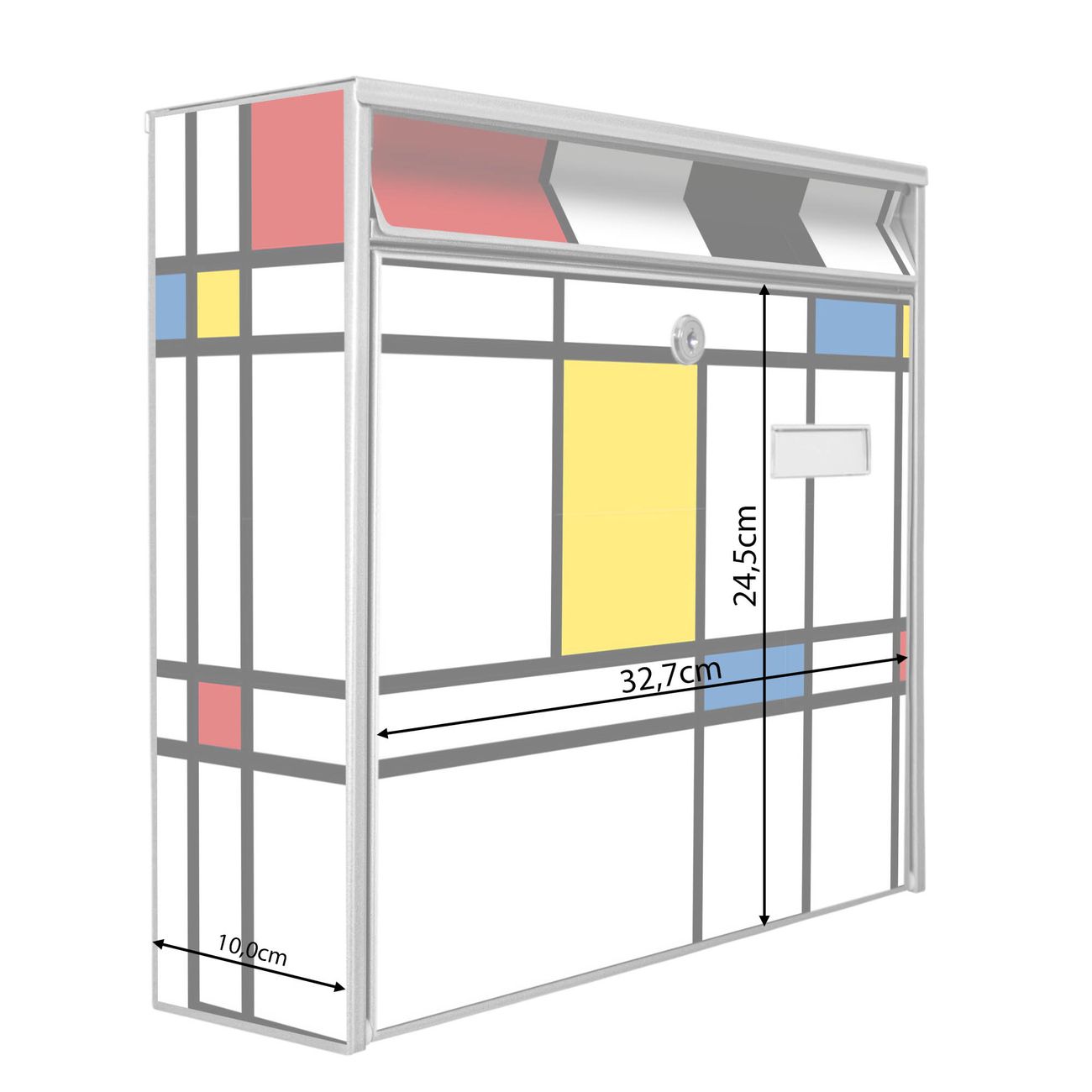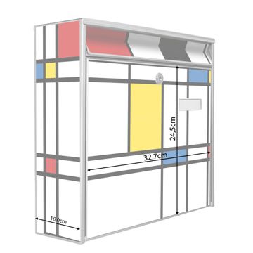 Der Burg Wächter Mail Briefkasten mit Motiv Rot Gelb Blau bietet Ihnen mit seinem Fassungsvermögen genügend Platz auch für große A4 Sendungen. Auf Wunsch können Sie bei uns den passenden Standfuß kaufen und so aus dem Wandbriefkasten einen Standbriefkasten machen. Wir bieten Ihnen ebenfalls Namensschilder, bereits beschriftet oder frei zu beschriften, und verschiedene selbst gestaltete Bitte-Keine-Werbung-Aufkleber.