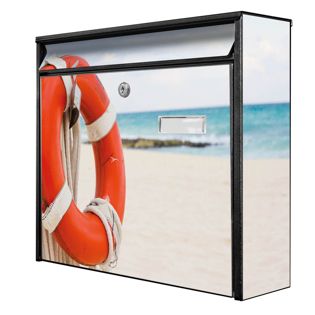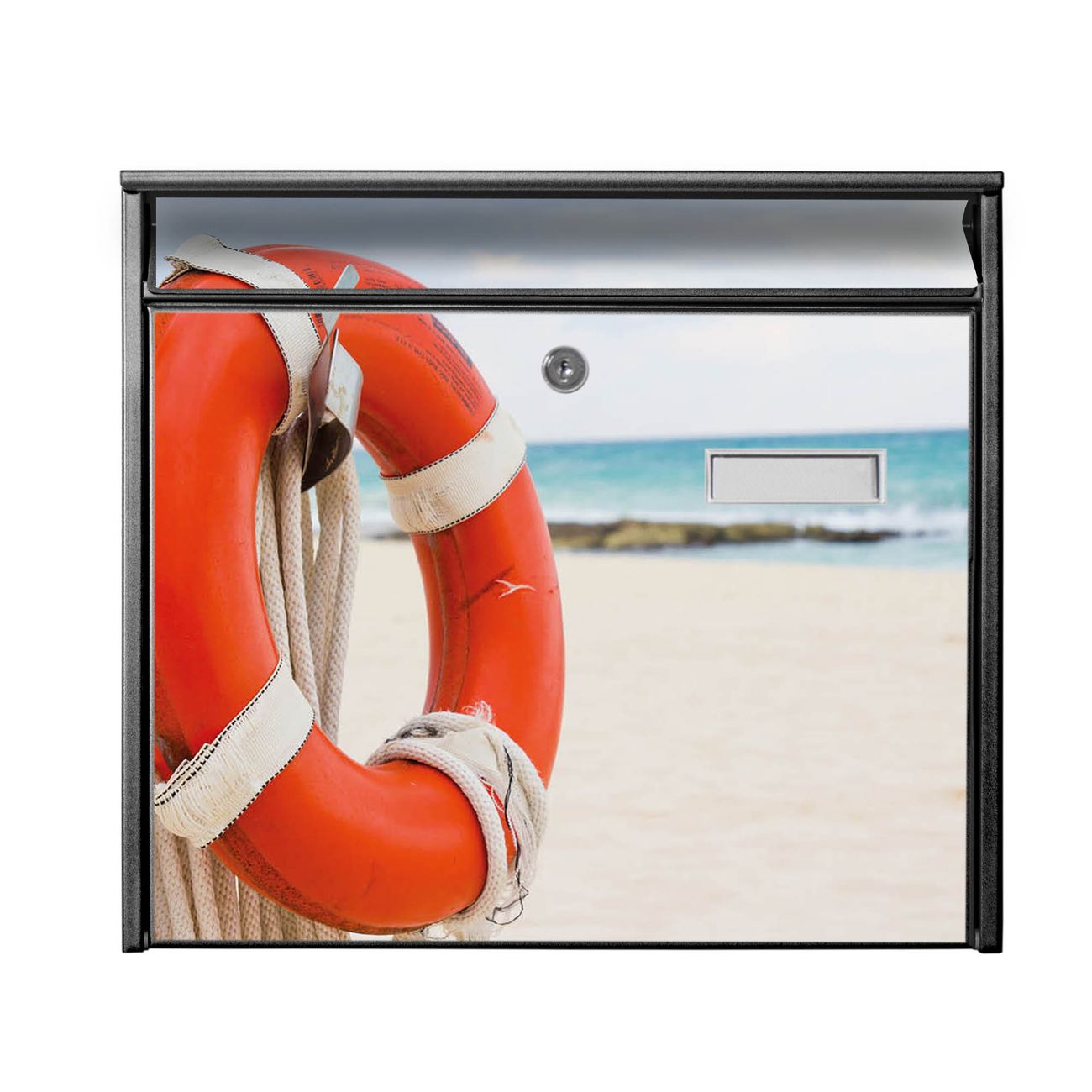 Der Postkasten mit Motiv Roter Rettungsring hat ein sehr ansprechendes und zeitloses Design. Heben Sie Sich von der tristen grauen Masse ab, ohne auf Funktionalität zu verzichten. Die weite Öffnung ohne scharfe Kanten ermöglicht eine einfache Handhabung beim Entnehmen der Post. Die Größe bietet genügend Platz für Sendungen aller Art, der Einwurf fasst auch größere A4 Sendungen. Ihr Burg-Wächter Motivbriefkasten wird in Sachsen in einer kleinen Manufaktur von Hand veredelt. Die Motivfolie ist lösungsmittelfrei und schutzlaminiert, dies sorgt für einen langen Halt. Wir legen großen Wert auf die Verbindung von Funktionalität und Design.