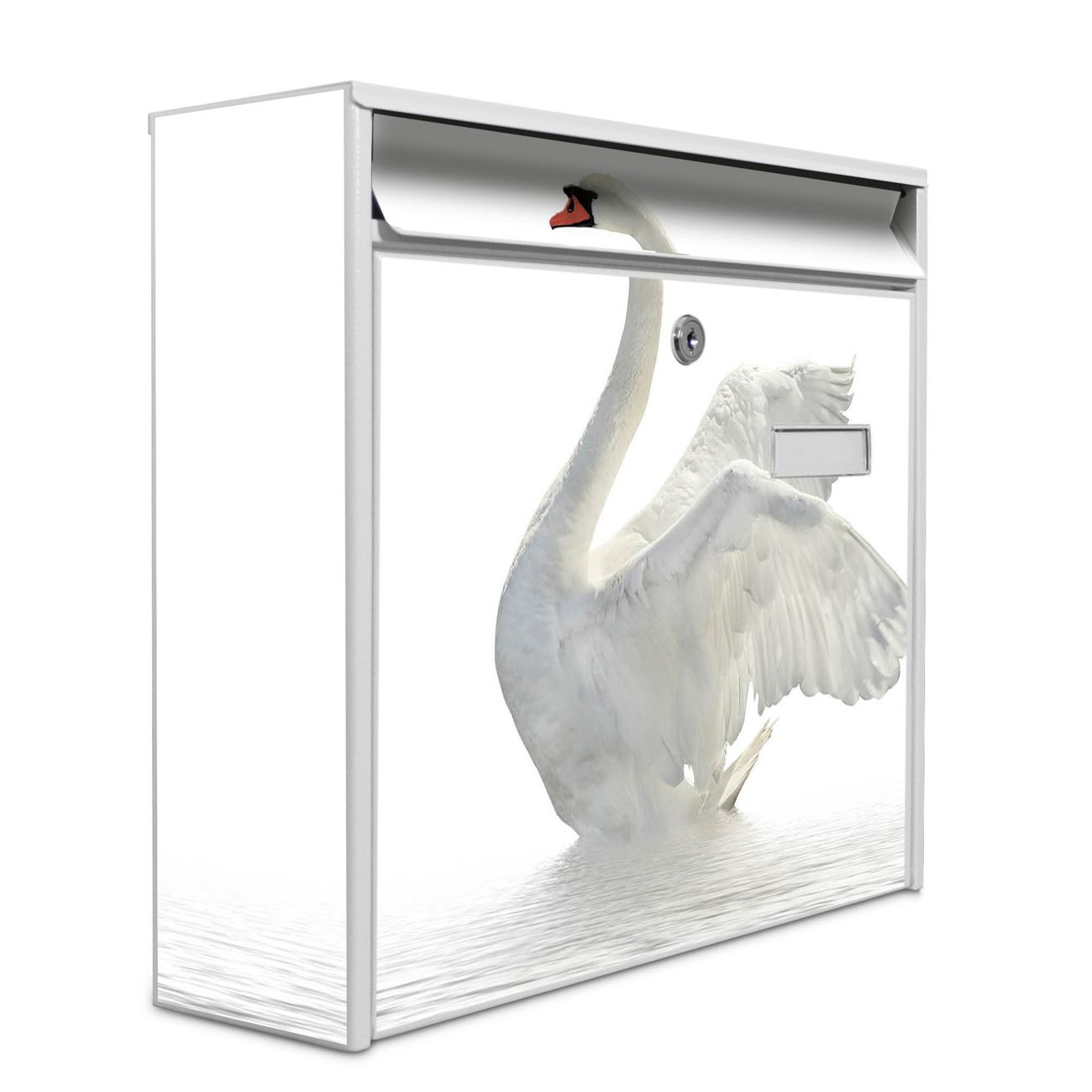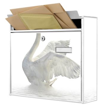 Der Burg Wächter Mail Briefkasten mit Motiv Schwan bietet Ihnen mit seinem Fassungsvermögen genügend Platz auch für große A4 Sendungen. Auf Wunsch können Sie bei uns den passenden Standfuß kaufen und so aus dem Wandbriefkasten einen Standbriefkasten machen. Wir bieten Ihnen ebenfalls Namensschilder, bereits beschriftet oder frei zu beschriften, und verschiedene selbst gestaltete Bitte-Keine-Werbung-Aufkleber.