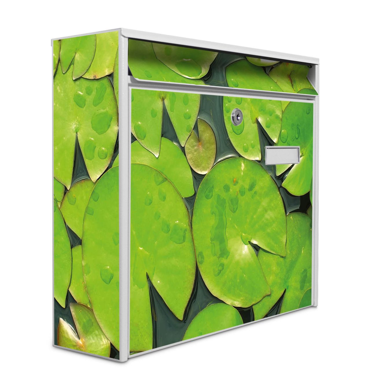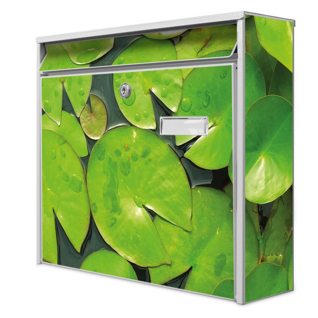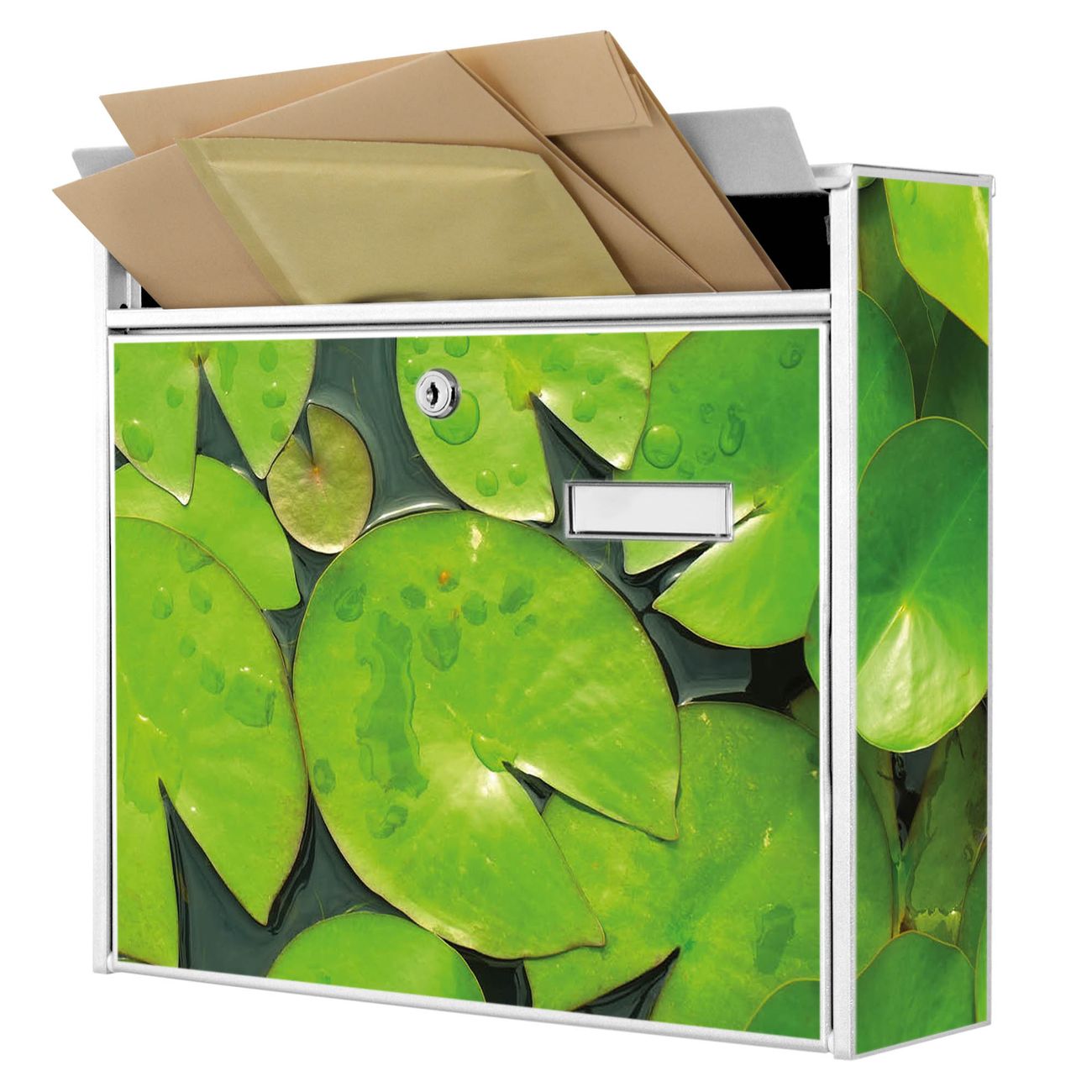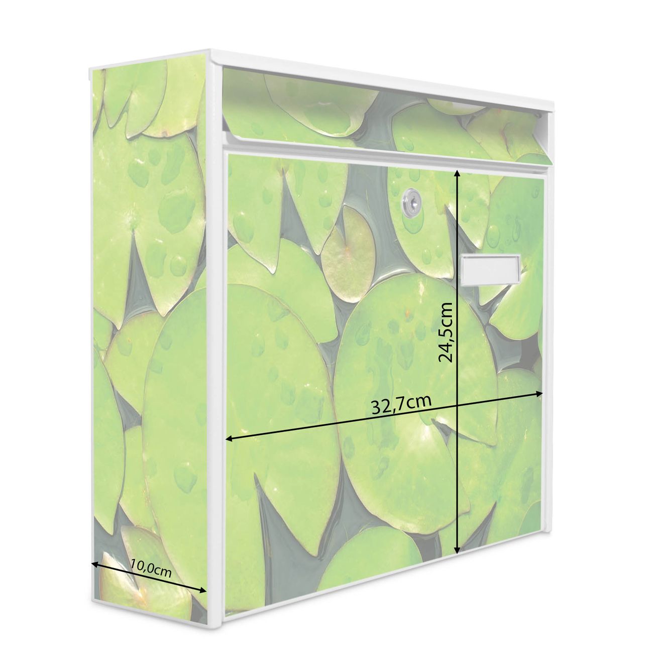 Der Burg Wächter Mail Briefkasten mit Motiv Seerosenblätter bietet Ihnen mit seinem Fassungsvermögen genügend Platz auch für große A4 Sendungen. Auf Wunsch können Sie bei uns den passenden Standfuß kaufen und so aus dem Wandbriefkasten einen Standbriefkasten machen. Wir bieten Ihnen ebenfalls Namensschilder, bereits beschriftet oder frei zu beschriften, und verschiedene selbst gestaltete Bitte-Keine-Werbung-Aufkleber.