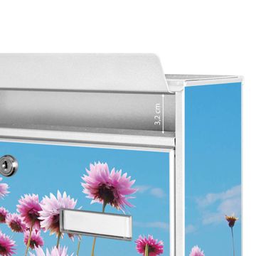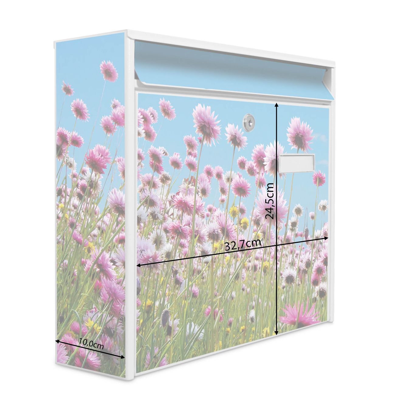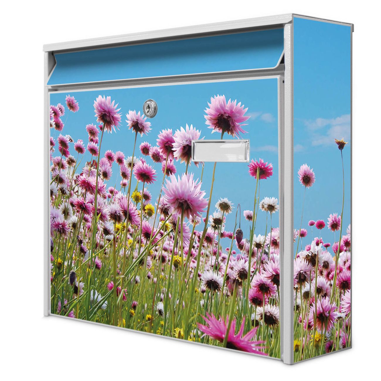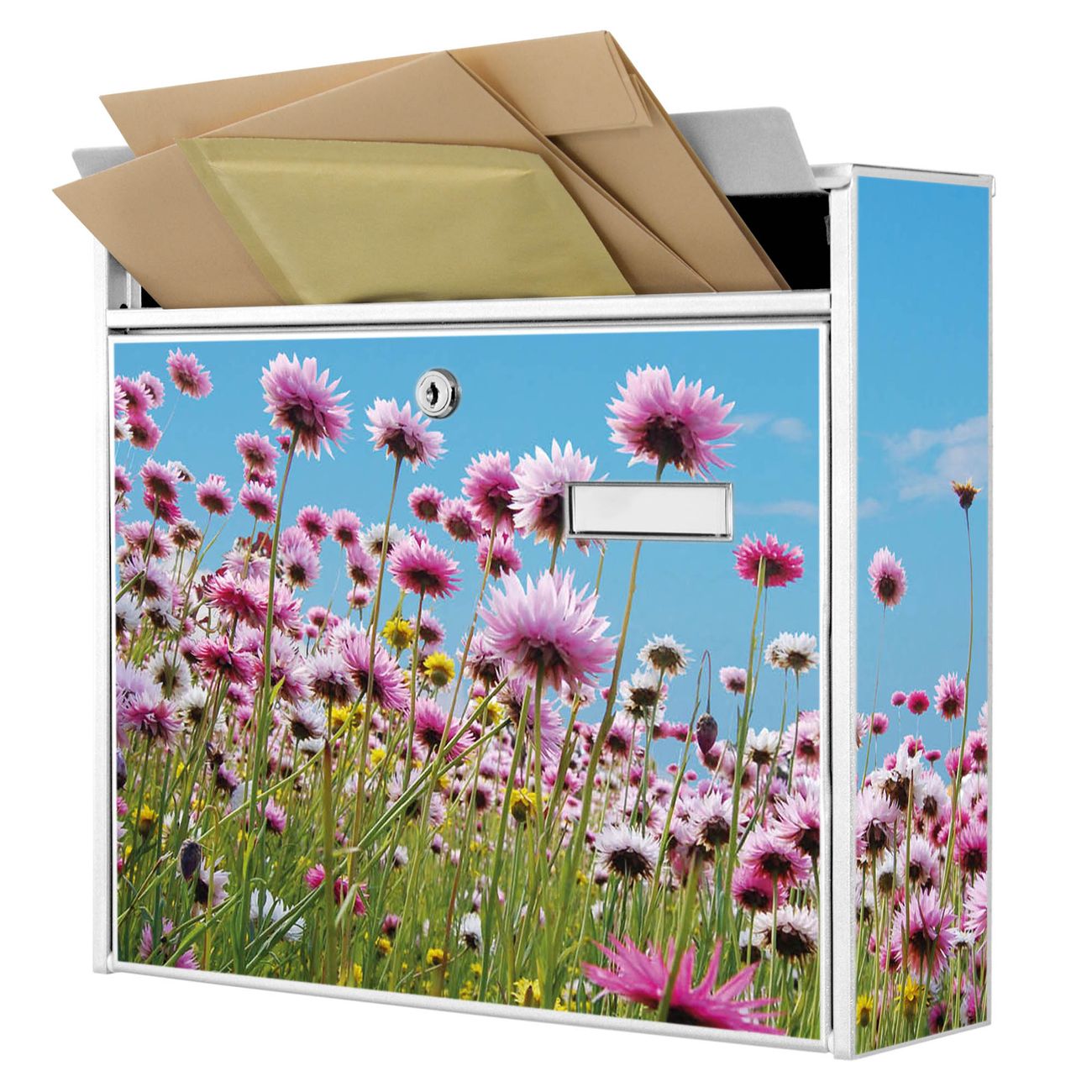 Der Burg Wächter Mail Briefkasten mit Motiv Sommerblumen bietet Ihnen mit seinem Fassungsvermögen genügend Platz auch für große A4 Sendungen. Auf Wunsch können Sie bei uns den passenden Standfuß kaufen und so aus dem Wandbriefkasten einen Standbriefkasten machen. Wir bieten Ihnen ebenfalls Namensschilder, bereits beschriftet oder frei zu beschriften, und verschiedene selbst gestaltete Bitte-Keine-Werbung-Aufkleber.