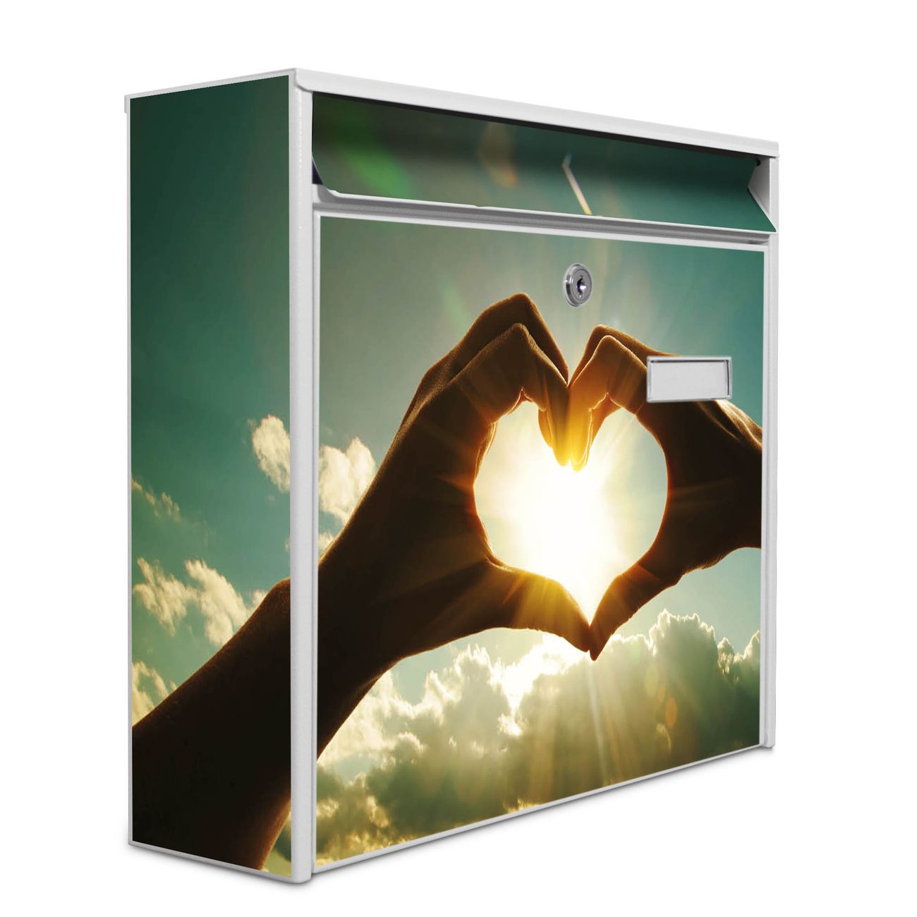 Der Postkasten mit Motiv Sonne im Herzen hat ein sehr ansprechendes und zeitloses Design. Heben Sie Sich von der tristen grauen Masse ab, ohne auf Funktionalität zu verzichten. Die weite Öffnung ohne scharfe Kanten ermöglicht eine einfache Handhabung beim Entnehmen der Post. Die Größe bietet genügend Platz für Sendungen aller Art, der Einwurf fasst auch größere A4 Sendungen. Ihr Burg-Wächter Motivbriefkasten wird in Sachsen in einer kleinen Manufaktur von Hand veredelt. Die Motivfolie ist lösungsmittelfrei und schutzlaminiert, dies sorgt für einen langen Halt. Wir legen großen Wert auf die Verbindung von Funktionalität und Design.