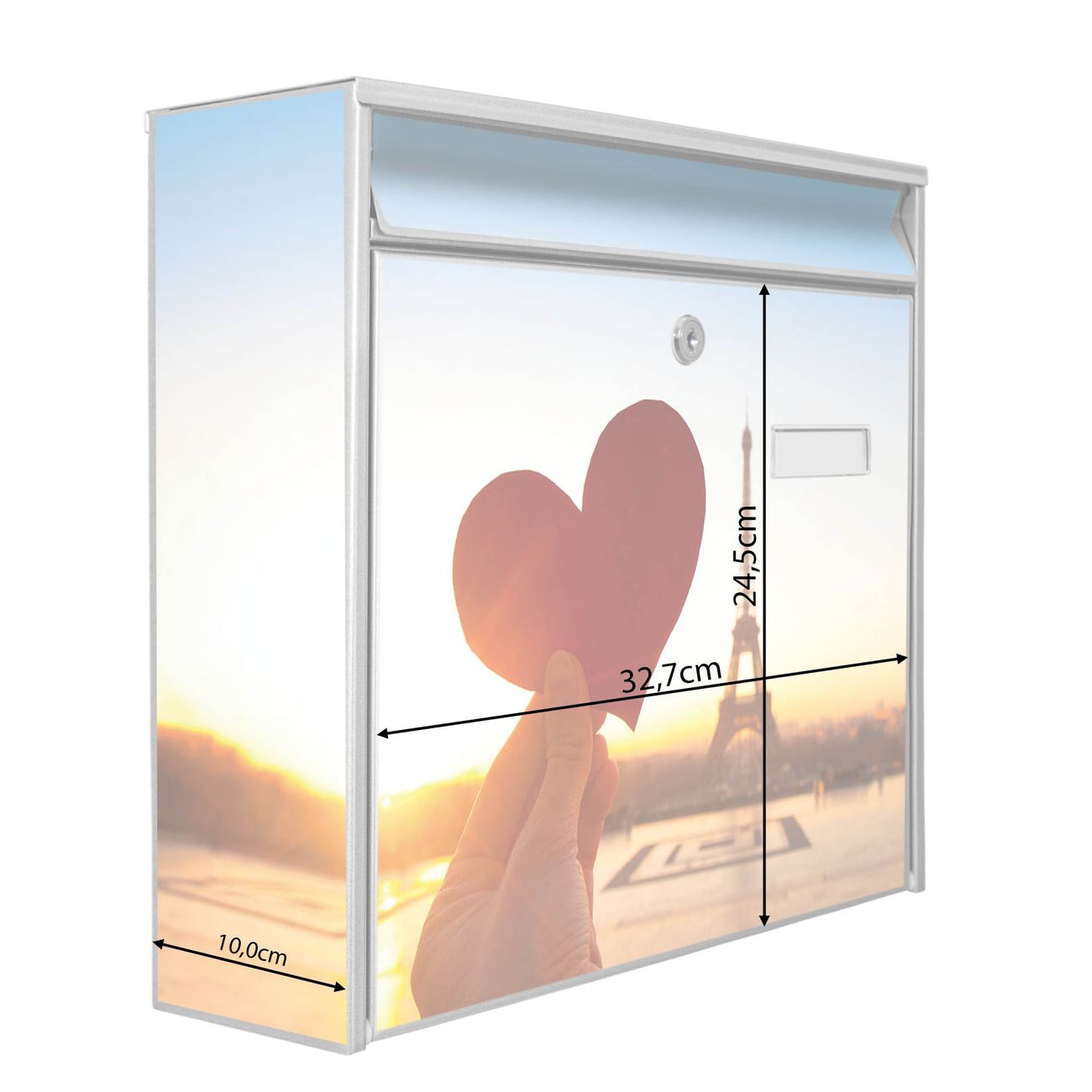 Der Postkasten mit Motiv Stadt Der Liebe hat ein sehr ansprechendes und zeitloses Design. Heben Sie Sich von der tristen grauen Masse ab, ohne auf Funktionalität zu verzichten. Die weite Öffnung ohne scharfe Kanten ermöglicht eine einfache Handhabung beim Entnehmen der Post. Die Größe bietet genügend Platz für Sendungen aller Art, der Einwurf fasst auch größere A4 Sendungen. Ihr Burg-Wächter Motivbriefkasten wird in Sachsen in einer kleinen Manufaktur von Hand veredelt. Die Motivfolie ist lösungsmittelfrei und schutzlaminiert, dies sorgt für einen langen Halt. Wir legen großen Wert auf die Verbindung von Funktionalität und Design.