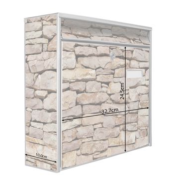 Der Burg Wächter Mail Briefkasten mit Motiv Stadtmauer bietet Ihnen mit seinem Fassungsvermögen genügend Platz auch für große A4 Sendungen. Auf Wunsch können Sie bei uns den passenden Standfuß kaufen und so aus dem Wandbriefkasten einen Standbriefkasten machen. Wir bieten Ihnen ebenfalls Namensschilder, bereits beschriftet oder frei zu beschriften, und verschiedene selbst gestaltete Bitte-Keine-Werbung-Aufkleber.