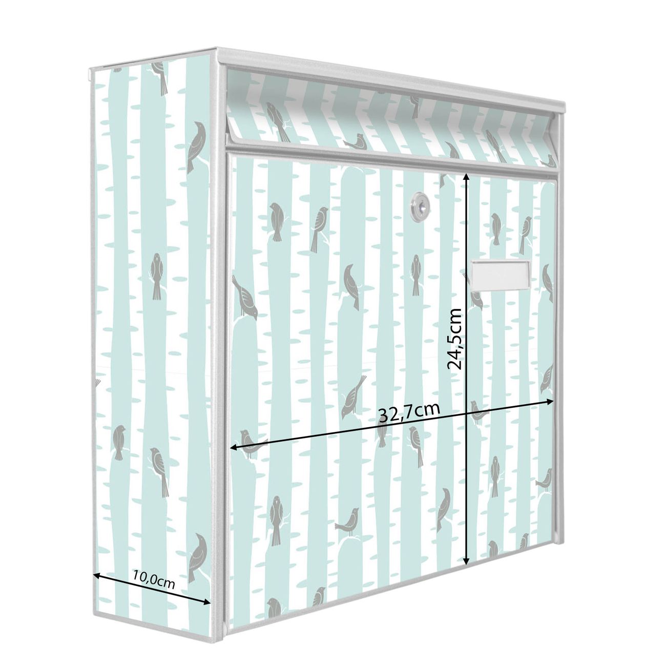 Der Burg Wächter Mail Briefkasten mit Motiv Stare Und Birken bietet Ihnen mit seinem Fassungsvermögen genügend Platz auch für große A4 Sendungen. Auf Wunsch können Sie bei uns den passenden Standfuß kaufen und so aus dem Wandbriefkasten einen Standbriefkasten machen. Wir bieten Ihnen ebenfalls Namensschilder, bereits beschriftet oder frei zu beschriften, und verschiedene selbst gestaltete Bitte-Keine-Werbung-Aufkleber.