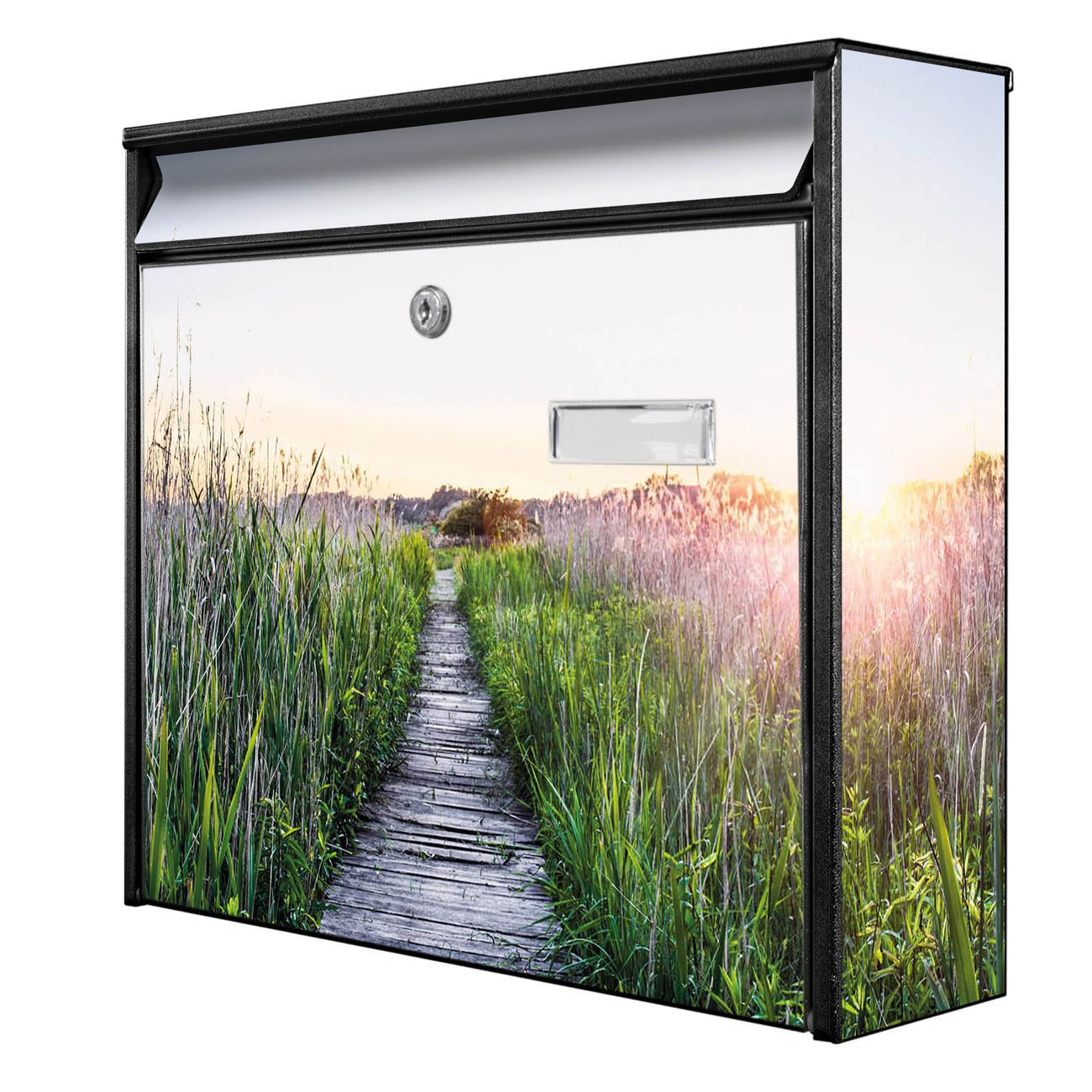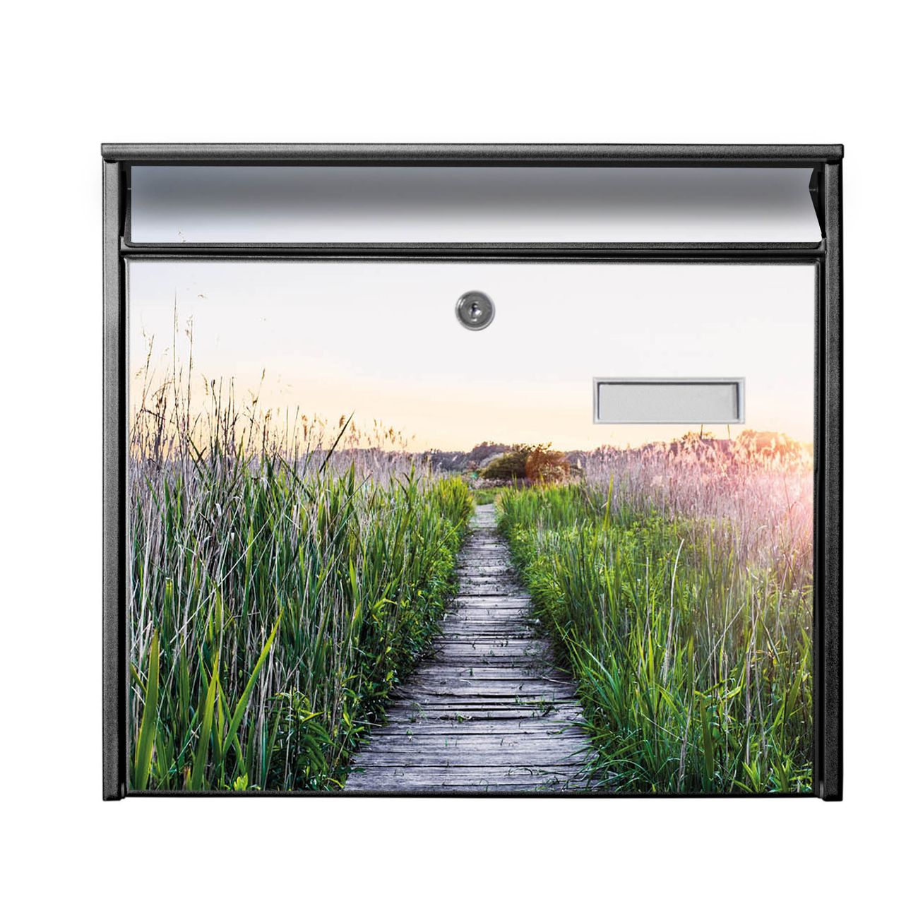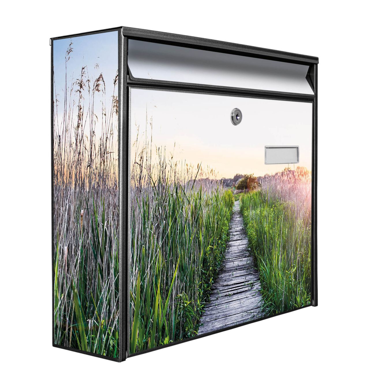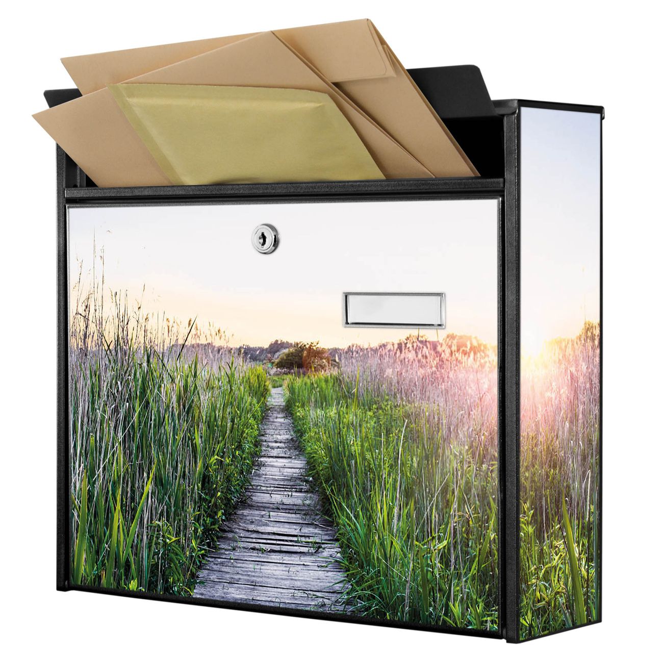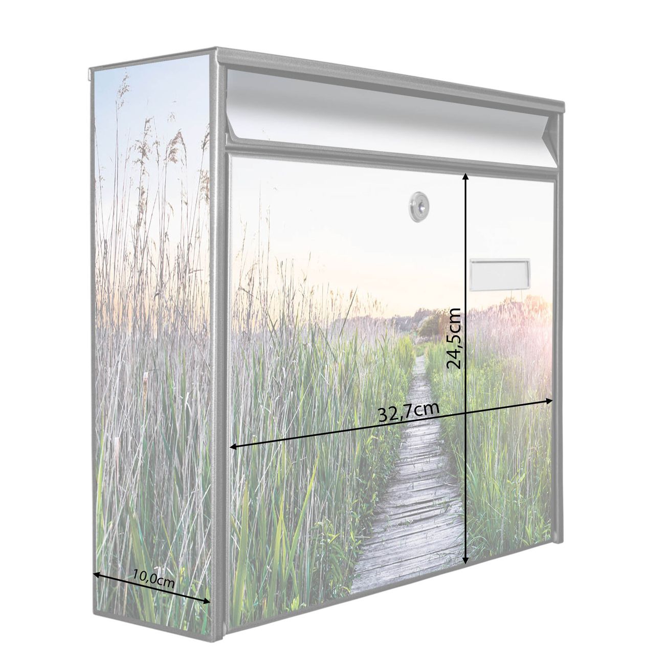 Der Burg Wächter Mail Briefkasten mit Motiv Steg Durchs Schilf bietet Ihnen mit seinem Fassungsvermögen genügend Platz auch für große A4 Sendungen. Auf Wunsch können Sie bei uns den passenden Standfuß kaufen und so aus dem Wandbriefkasten einen Standbriefkasten machen. Wir bieten Ihnen ebenfalls Namensschilder, bereits beschriftet oder frei zu beschriften, und verschiedene selbst gestaltete Bitte-Keine-Werbung-Aufkleber.