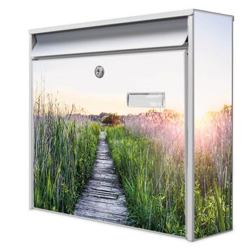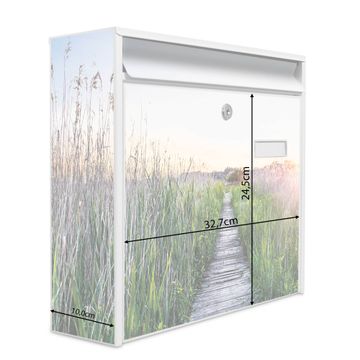 Der Burg Wächter Mail Briefkasten mit Motiv Steg Durchs Schilf bietet Ihnen mit seinem Fassungsvermögen genügend Platz auch für große A4 Sendungen. Auf Wunsch können Sie bei uns den passenden Standfuß kaufen und so aus dem Wandbriefkasten einen Standbriefkasten machen. Wir bieten Ihnen ebenfalls Namensschilder, bereits beschriftet oder frei zu beschriften, und verschiedene selbst gestaltete Bitte-Keine-Werbung-Aufkleber.