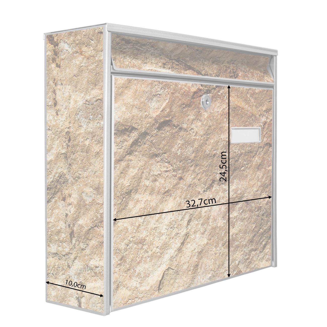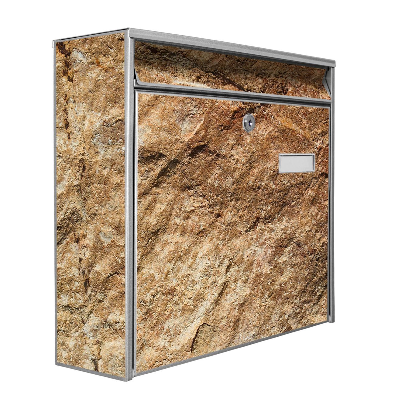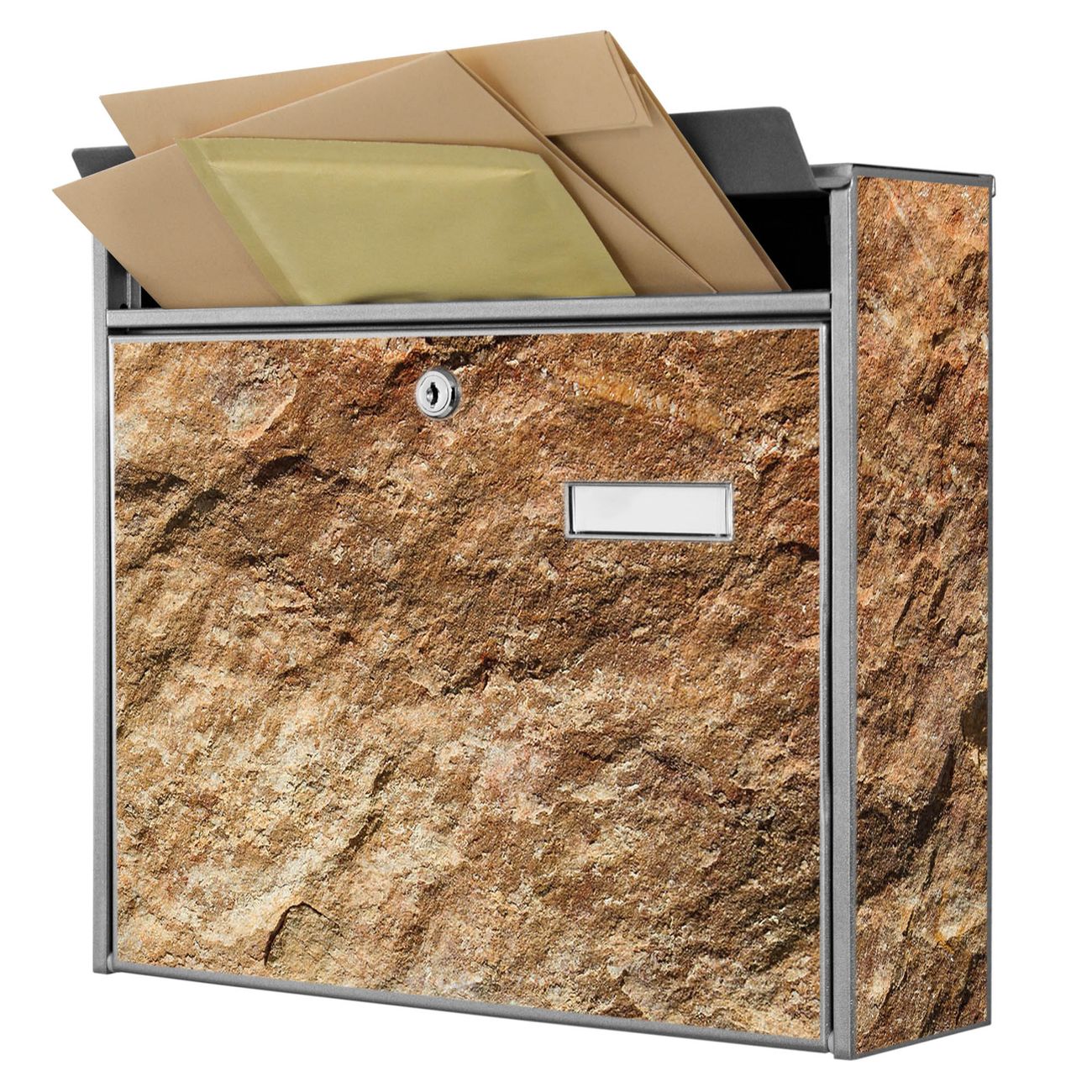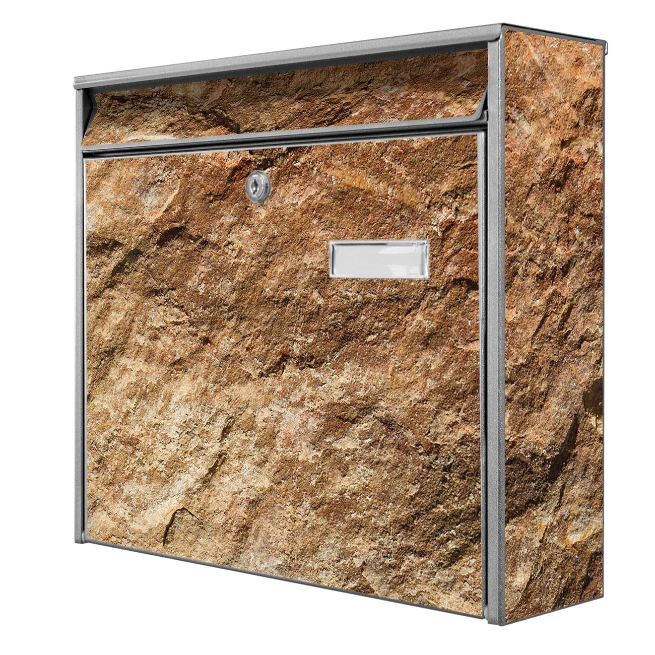 Der Postkasten mit Motiv Steinstruktur hat ein sehr ansprechendes und zeitloses Design. Heben Sie Sich von der tristen grauen Masse ab, ohne auf Funktionalität zu verzichten. Die weite Öffnung ohne scharfe Kanten ermöglicht eine einfache Handhabung beim Entnehmen der Post. Die Größe bietet genügend Platz für Sendungen aller Art, der Einwurf fasst auch größere A4 Sendungen. Ihr Burg-Wächter Motivbriefkasten wird in Sachsen in einer kleinen Manufaktur von Hand veredelt. Die Motivfolie ist lösungsmittelfrei und schutzlaminiert, dies sorgt für einen langen Halt. Wir legen großen Wert auf die Verbindung von Funktionalität und Design.