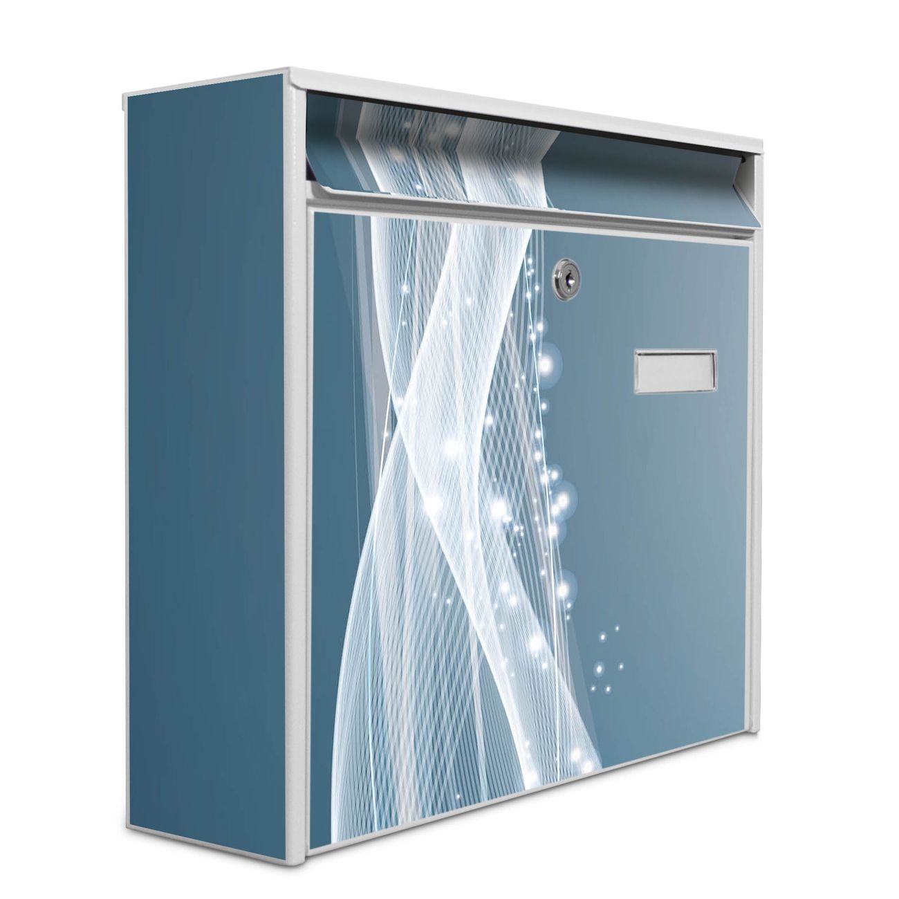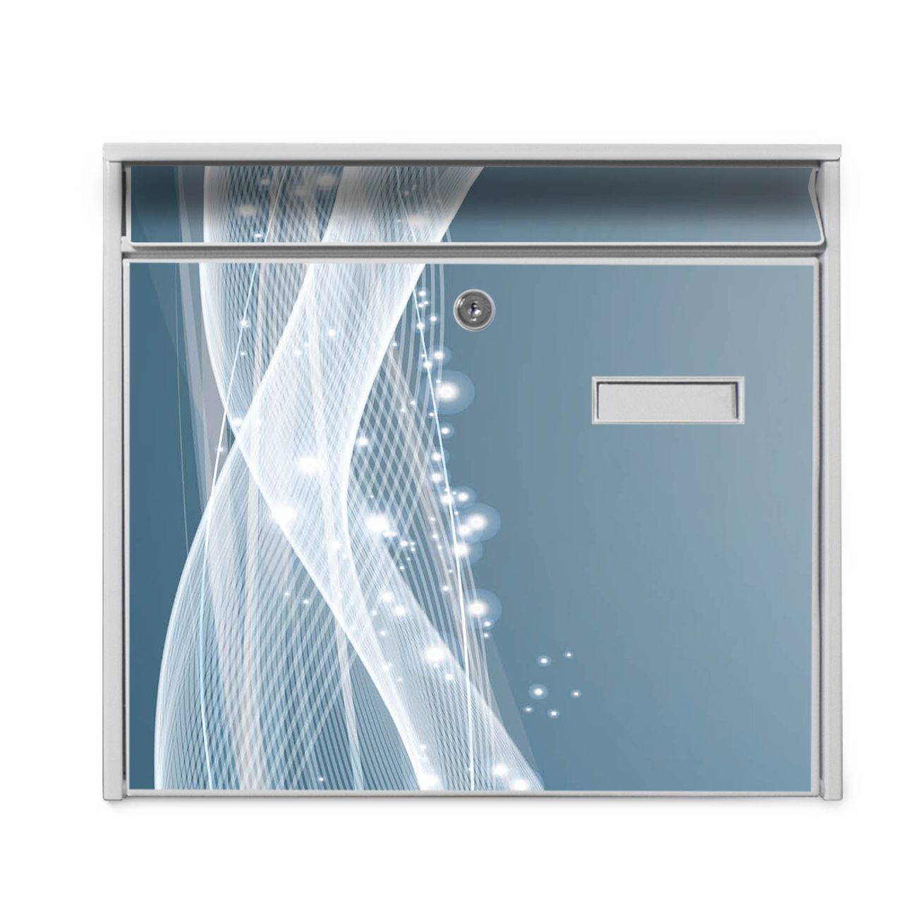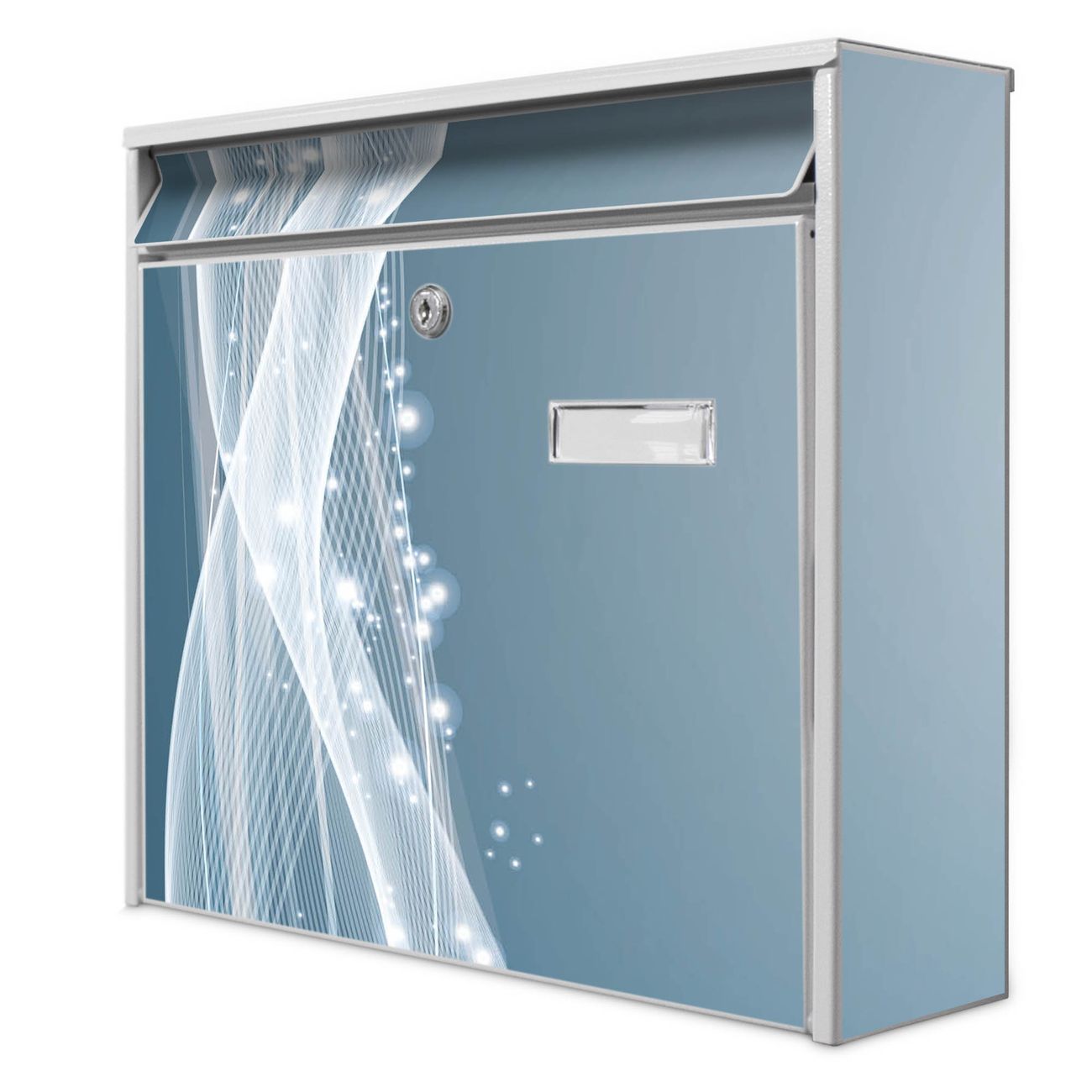 Der Burg Wächter Mail Briefkasten mit Motiv Sternenstaub bietet Ihnen mit seinem Fassungsvermögen genügend Platz auch für große A4 Sendungen. Auf Wunsch können Sie bei uns den passenden Standfuß kaufen und so aus dem Wandbriefkasten einen Standbriefkasten machen. Wir bieten Ihnen ebenfalls Namensschilder, bereits beschriftet oder frei zu beschriften, und verschiedene selbst gestaltete Bitte-Keine-Werbung-Aufkleber.