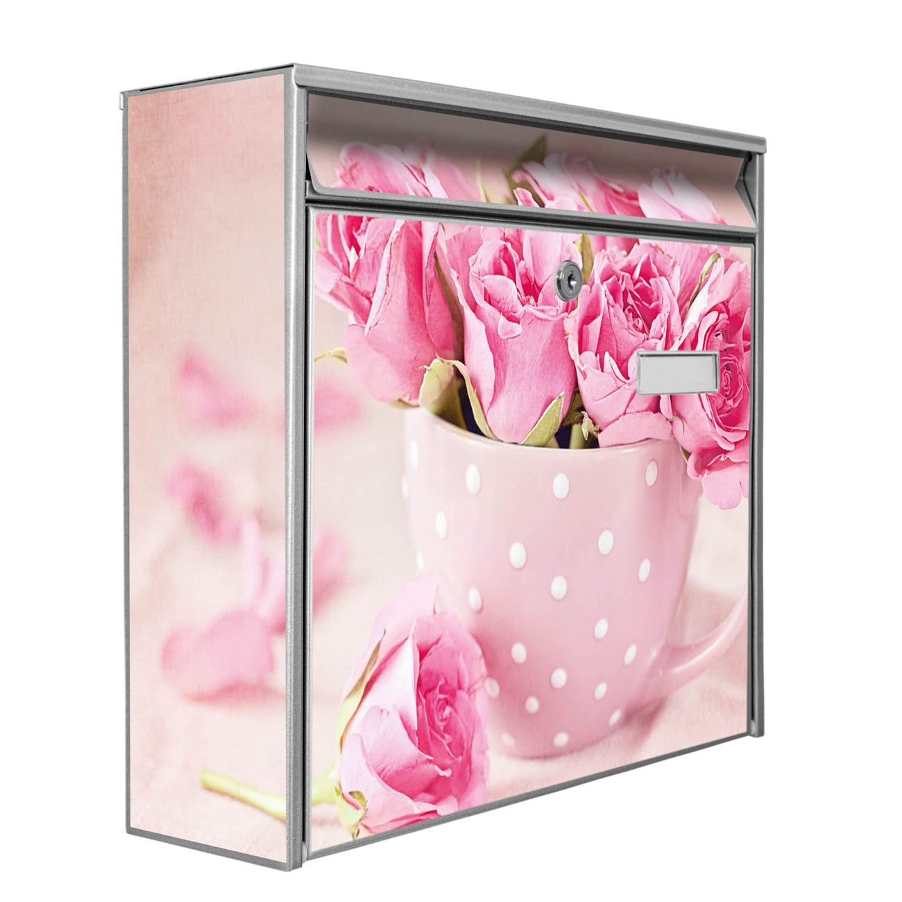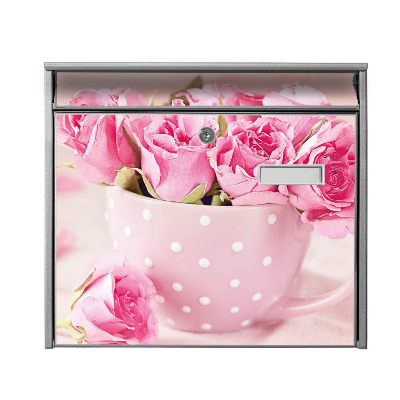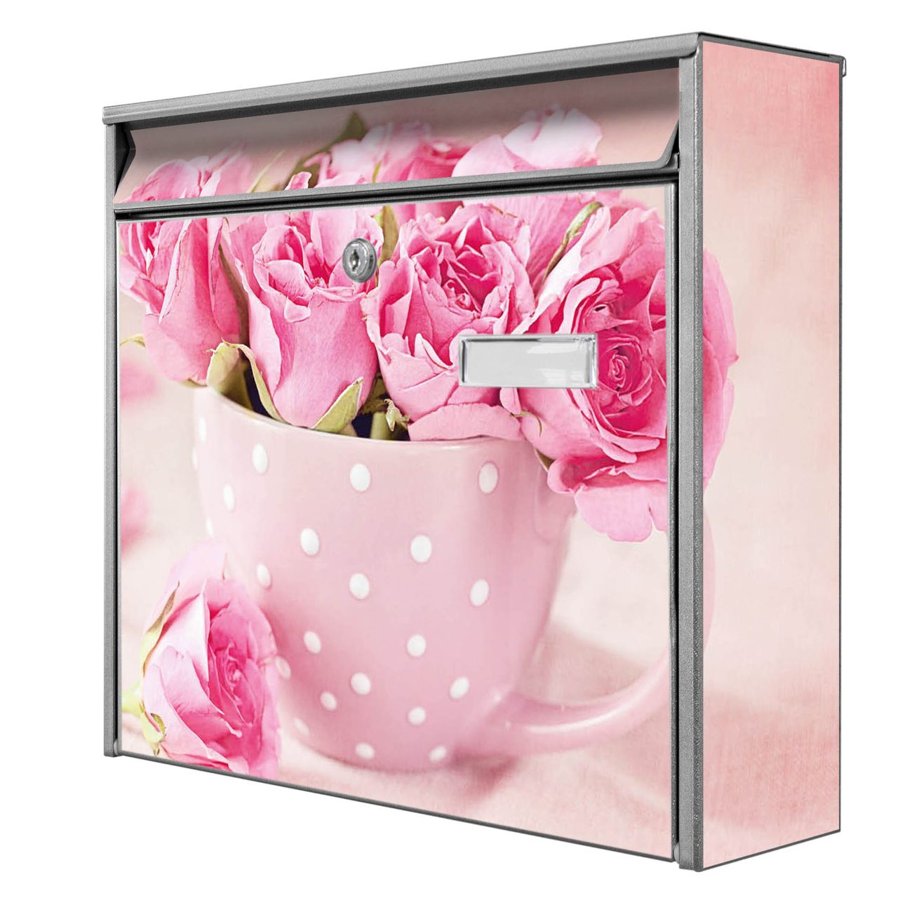 Der Burg Wächter Mail Briefkasten mit Motiv Tasse Voll Rosen bietet Ihnen mit seinem Fassungsvermögen genügend Platz auch für große A4 Sendungen. Auf Wunsch können Sie bei uns den passenden Standfuß kaufen und so aus dem Wandbriefkasten einen Standbriefkasten machen. Wir bieten Ihnen ebenfalls Namensschilder, bereits beschriftet oder frei zu beschriften, und verschiedene selbst gestaltete Bitte-Keine-Werbung-Aufkleber.