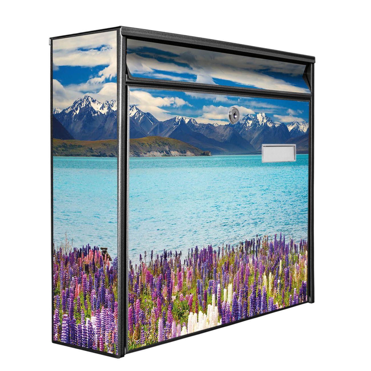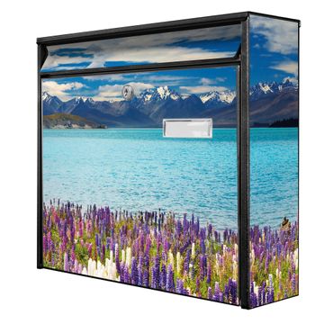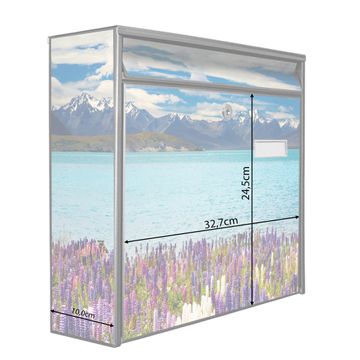 Der Burg Wächter Mail Briefkasten mit Motiv Tekapo See bietet Ihnen mit seinem Fassungsvermögen genügend Platz auch für große A4 Sendungen. Auf Wunsch können Sie bei uns den passenden Standfuß kaufen und so aus dem Wandbriefkasten einen Standbriefkasten machen. Wir bieten Ihnen ebenfalls Namensschilder, bereits beschriftet oder frei zu beschriften, und verschiedene selbst gestaltete Bitte-Keine-Werbung-Aufkleber.