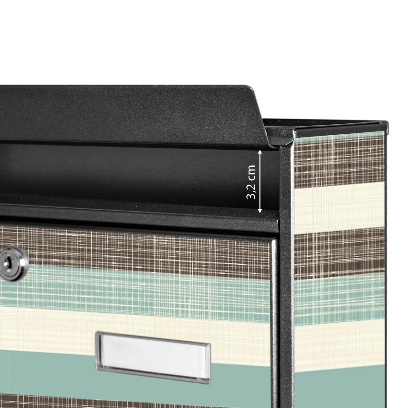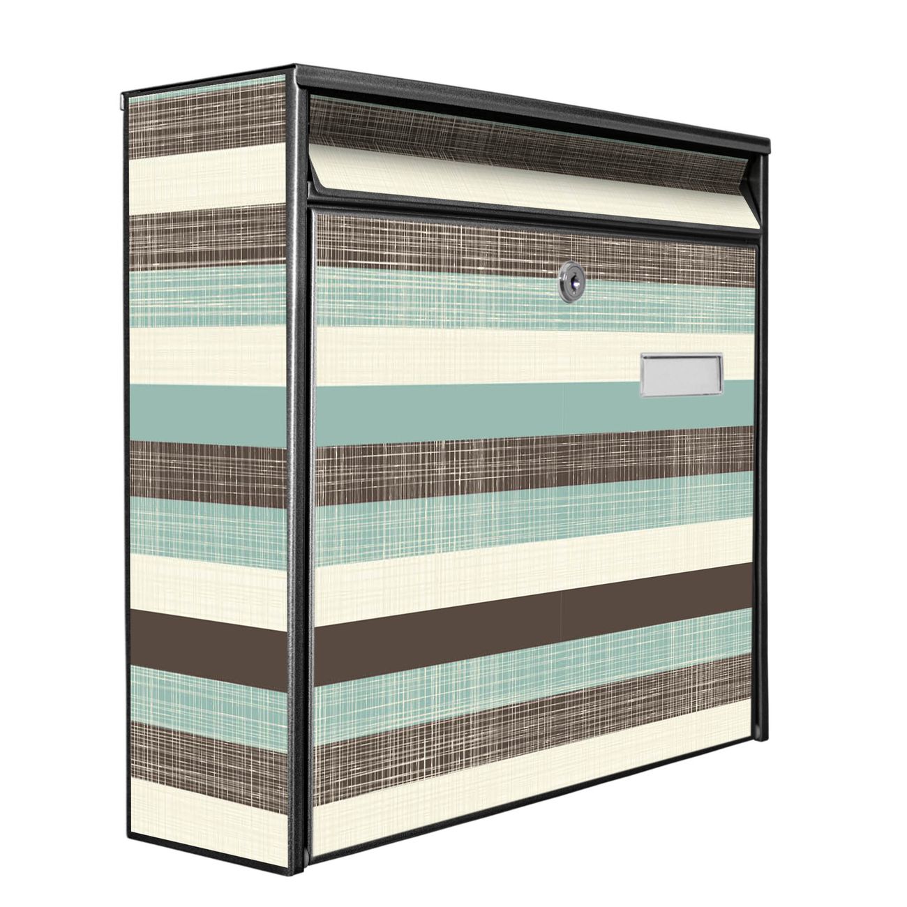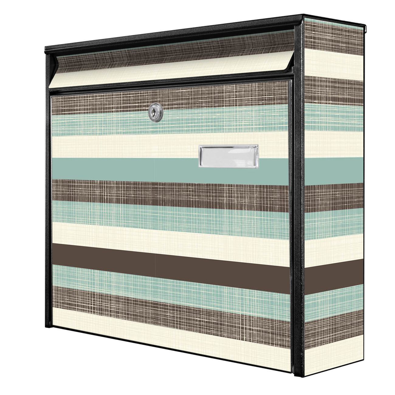 Der Postkasten mit Motiv Textile Streifen hat ein sehr ansprechendes und zeitloses Design. Heben Sie Sich von der tristen grauen Masse ab, ohne auf Funktionalität zu verzichten. Die weite Öffnung ohne scharfe Kanten ermöglicht eine einfache Handhabung beim Entnehmen der Post. Die Größe bietet genügend Platz für Sendungen aller Art, der Einwurf fasst auch größere A4 Sendungen. Ihr Burg-Wächter Motivbriefkasten wird in Sachsen in einer kleinen Manufaktur von Hand veredelt. Die Motivfolie ist lösungsmittelfrei und schutzlaminiert, dies sorgt für einen langen Halt. Wir legen großen Wert auf die Verbindung von Funktionalität und Design.