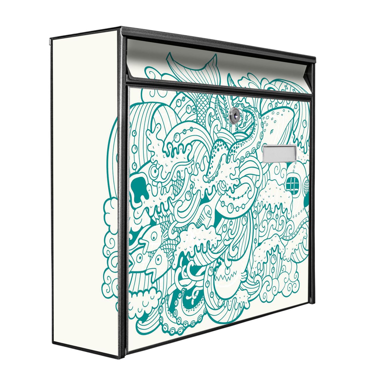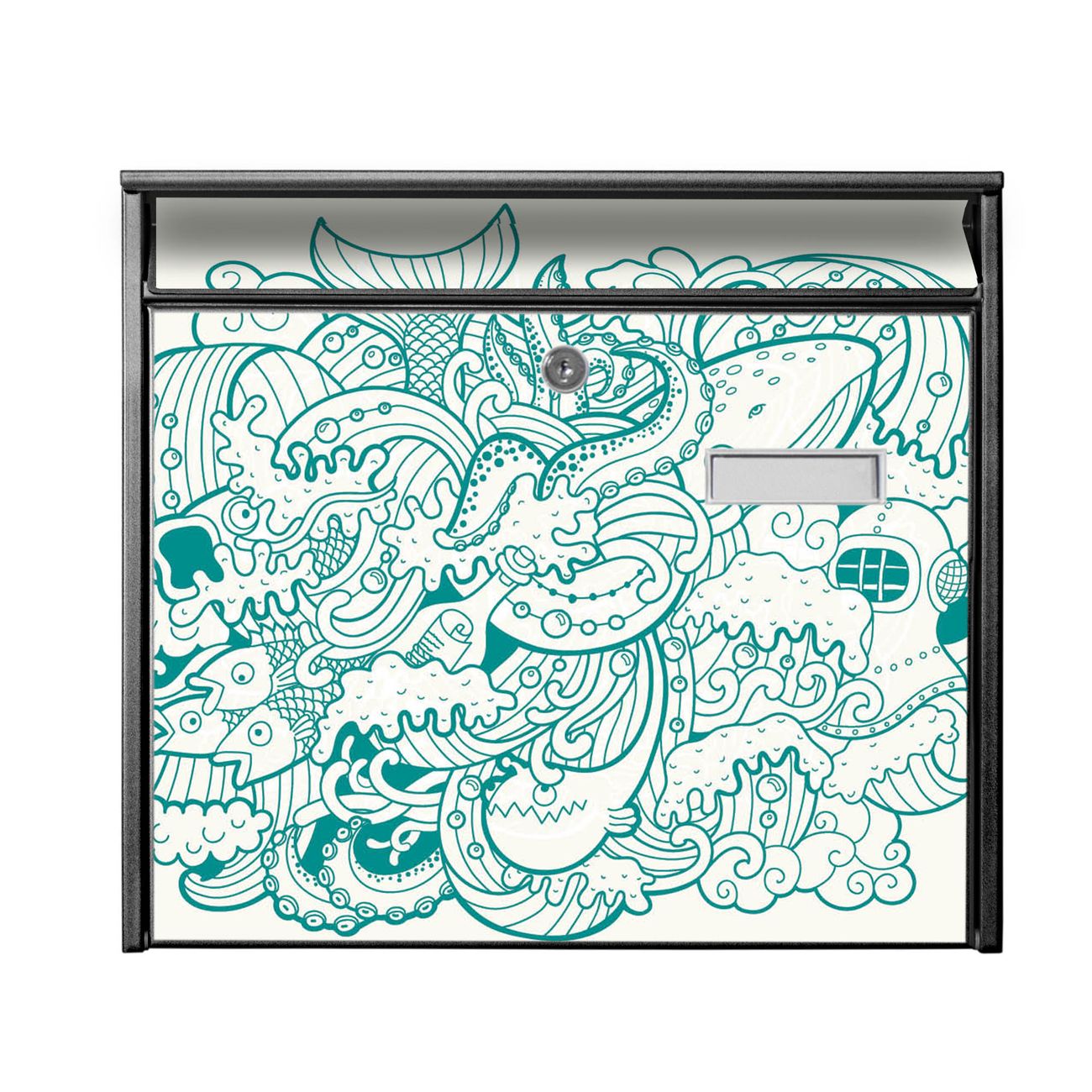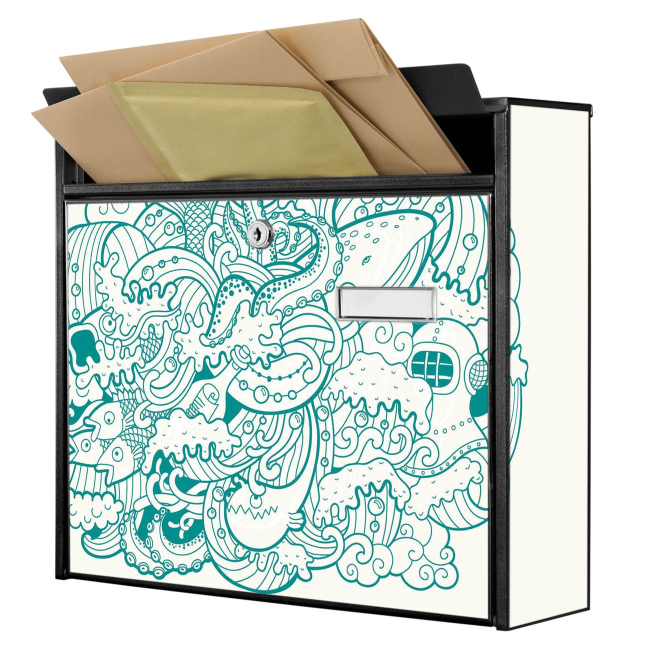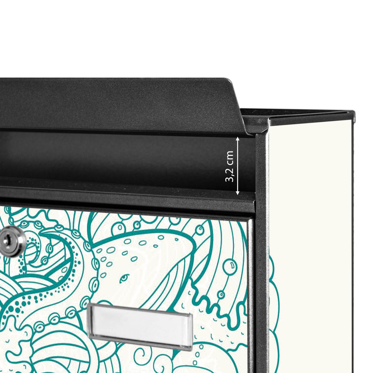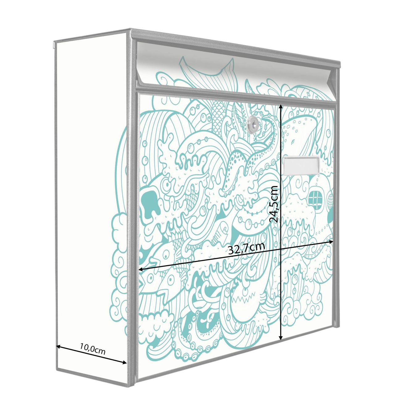 Der Burg Wächter Mail Briefkasten mit Motiv Tiefsee bietet Ihnen mit seinem Fassungsvermögen genügend Platz auch für große A4 Sendungen. Auf Wunsch können Sie bei uns den passenden Standfuß kaufen und so aus dem Wandbriefkasten einen Standbriefkasten machen. Wir bieten Ihnen ebenfalls Namensschilder, bereits beschriftet oder frei zu beschriften, und verschiedene selbst gestaltete Bitte-Keine-Werbung-Aufkleber.