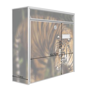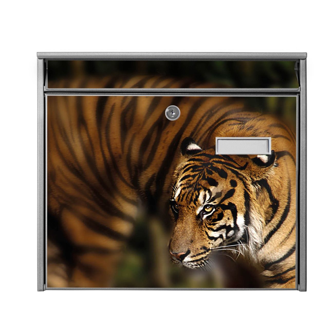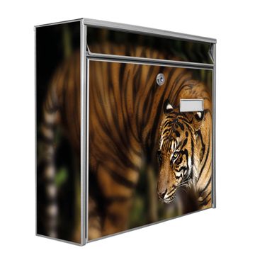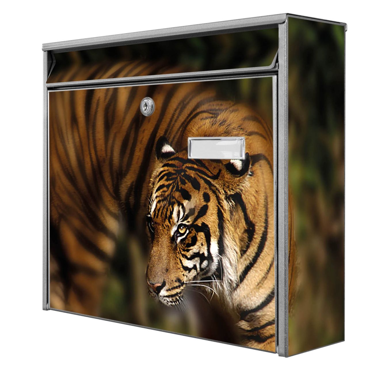 Der Burg Wächter Mail Briefkasten mit Motiv Tiger bietet Ihnen mit seinem Fassungsvermögen genügend Platz auch für große A4 Sendungen. Auf Wunsch können Sie bei uns den passenden Standfuß kaufen und so aus dem Wandbriefkasten einen Standbriefkasten machen. Wir bieten Ihnen ebenfalls Namensschilder, bereits beschriftet oder frei zu beschriften, und verschiedene selbst gestaltete Bitte-Keine-Werbung-Aufkleber.