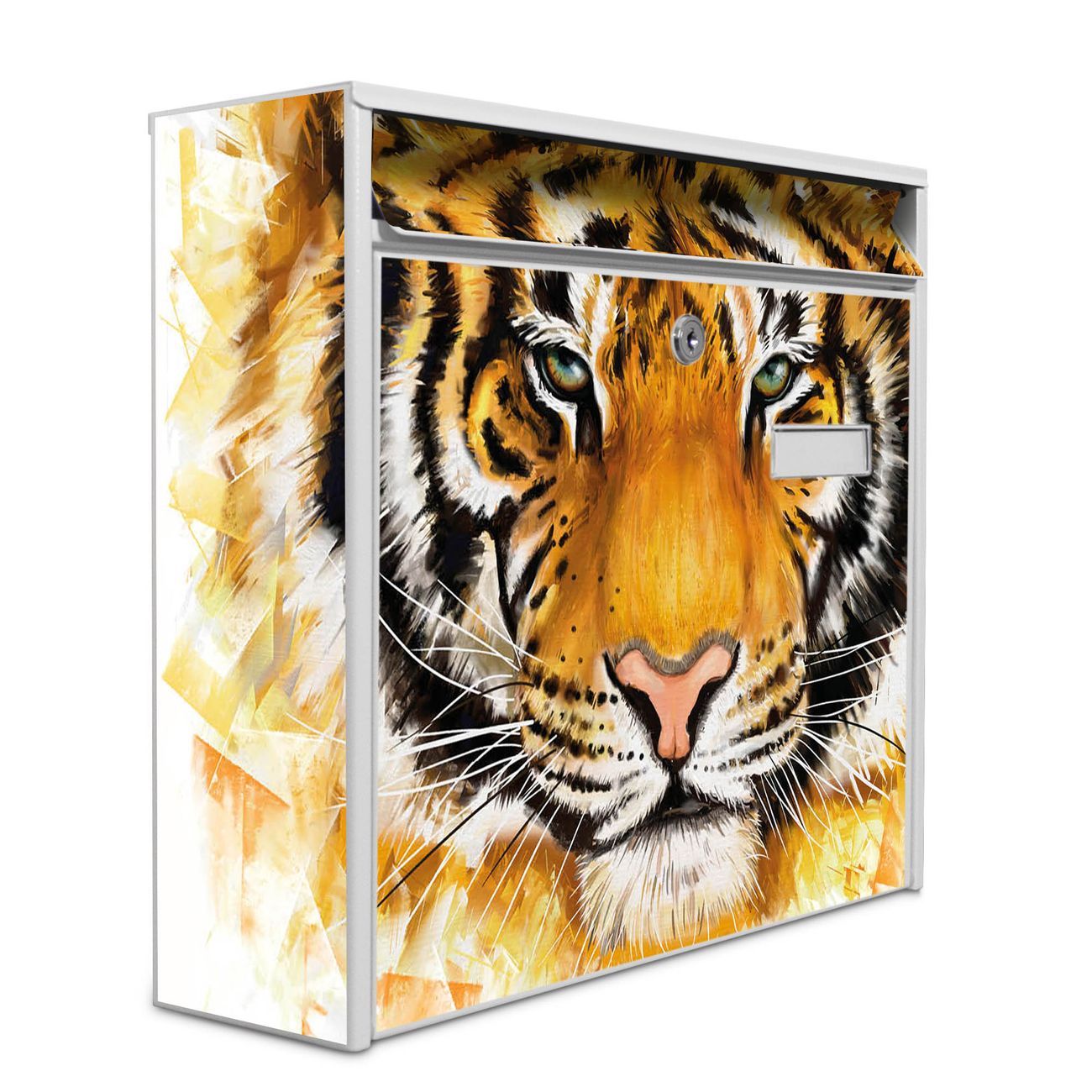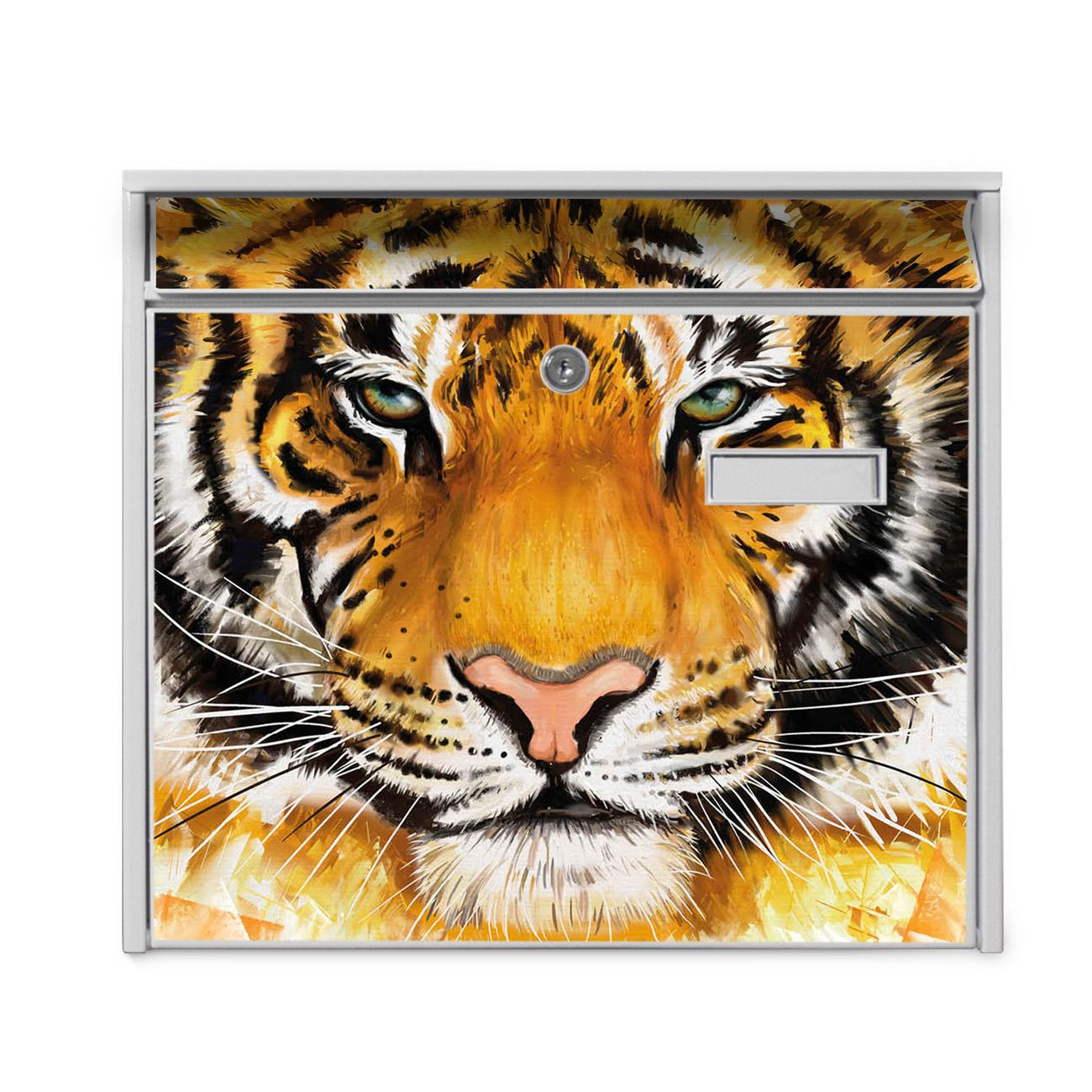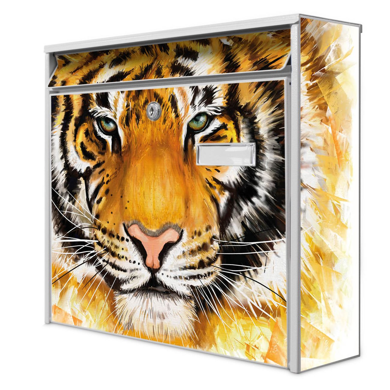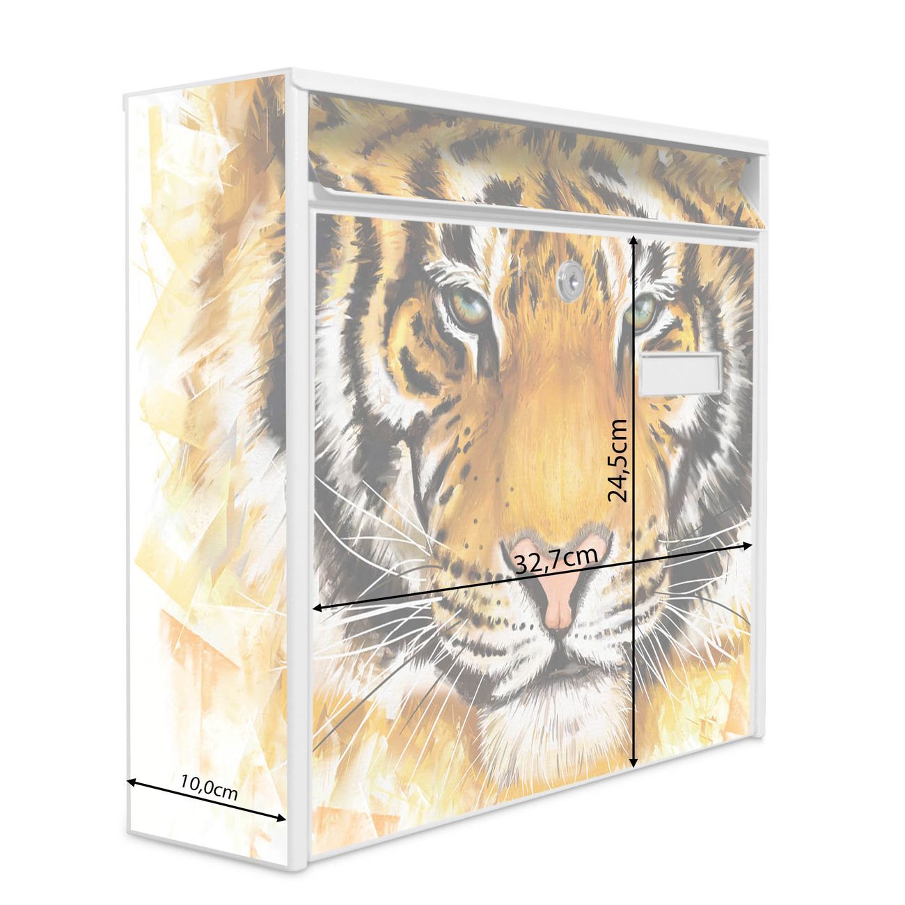 Der Burg Wächter Mail Briefkasten mit Motiv Tigerkopf bietet Ihnen mit seinem Fassungsvermögen genügend Platz auch für große A4 Sendungen. Auf Wunsch können Sie bei uns den passenden Standfuß kaufen und so aus dem Wandbriefkasten einen Standbriefkasten machen. Wir bieten Ihnen ebenfalls Namensschilder, bereits beschriftet oder frei zu beschriften, und verschiedene selbst gestaltete Bitte-Keine-Werbung-Aufkleber.