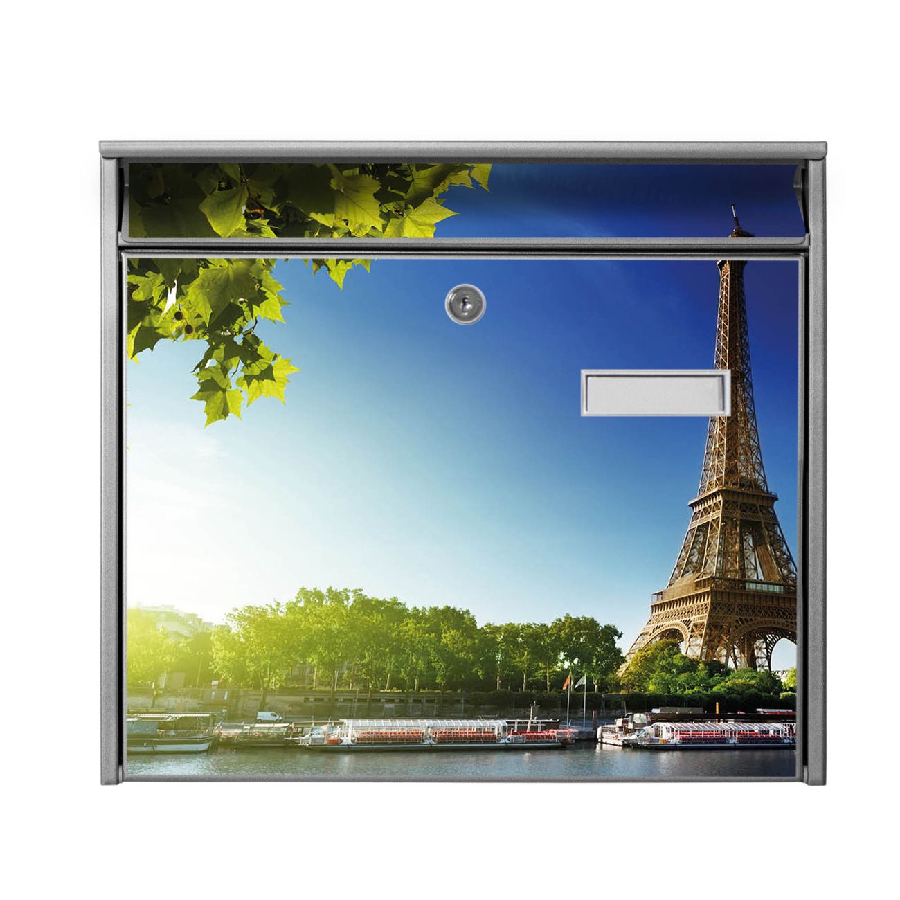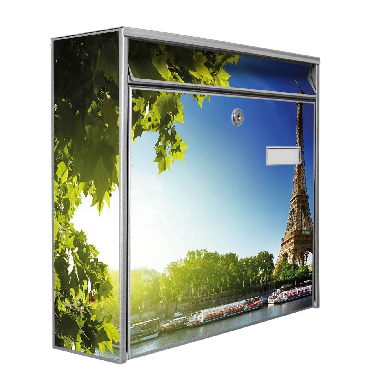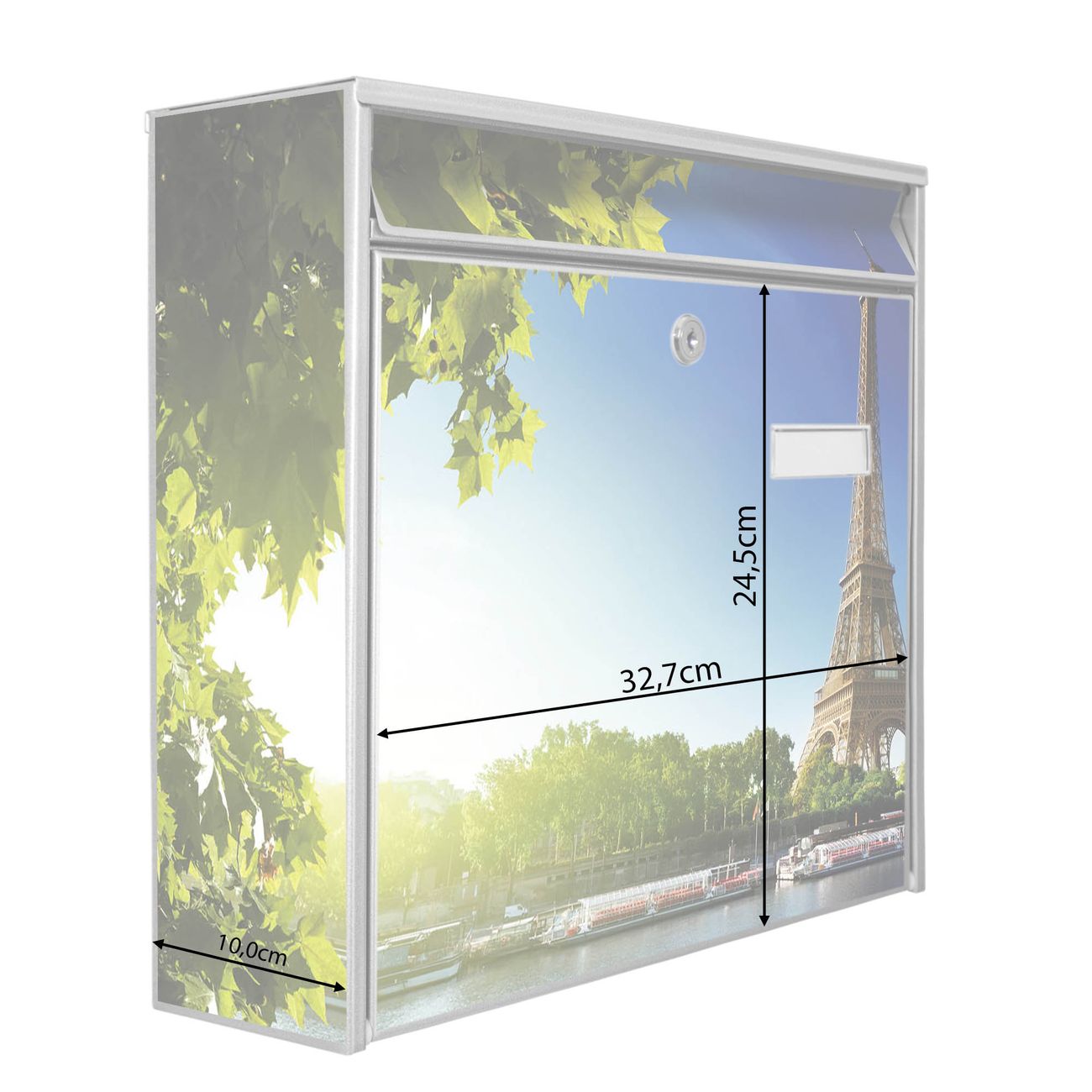 Der Burg Wächter Mail Briefkasten mit Motiv Tour Eiffel bietet Ihnen mit seinem Fassungsvermögen genügend Platz auch für große A4 Sendungen. Auf Wunsch können Sie bei uns den passenden Standfuß kaufen und so aus dem Wandbriefkasten einen Standbriefkasten machen. Wir bieten Ihnen ebenfalls Namensschilder, bereits beschriftet oder frei zu beschriften, und verschiedene selbst gestaltete Bitte-Keine-Werbung-Aufkleber.
