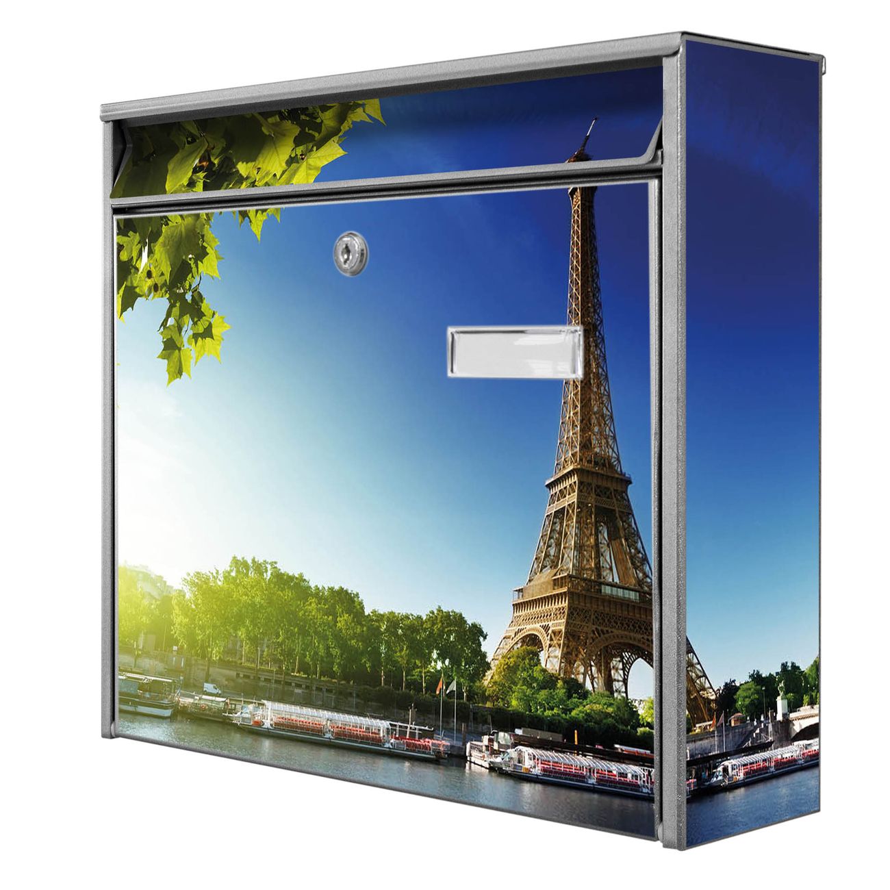 Der Postkasten mit Motiv Tour Eiffel hat ein sehr ansprechendes und zeitloses Design. Heben Sie Sich von der tristen grauen Masse ab, ohne auf Funktionalität zu verzichten. Die weite Öffnung ohne scharfe Kanten ermöglicht eine einfache Handhabung beim Entnehmen der Post. Die Größe bietet genügend Platz für Sendungen aller Art, der Einwurf fasst auch größere A4 Sendungen. Ihr Burg-Wächter Motivbriefkasten wird in Sachsen in einer kleinen Manufaktur von Hand veredelt. Die Motivfolie ist lösungsmittelfrei und schutzlaminiert, dies sorgt für einen langen Halt. Wir legen großen Wert auf die Verbindung von Funktionalität und Design.