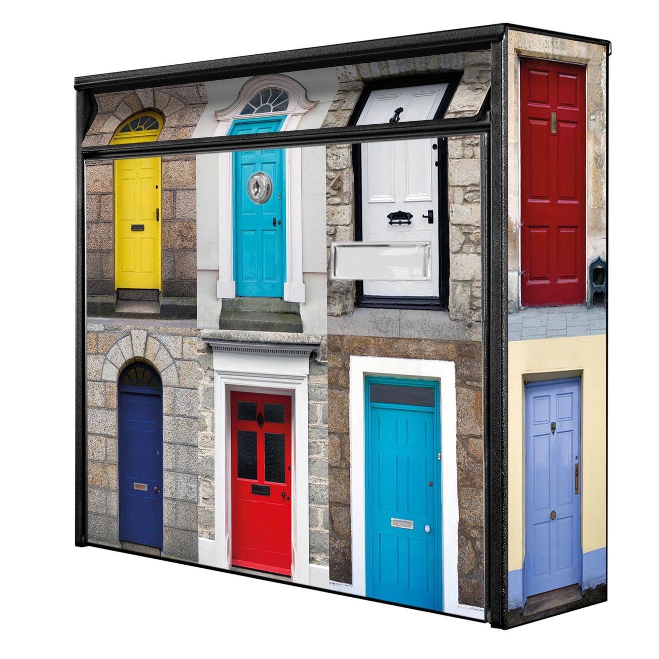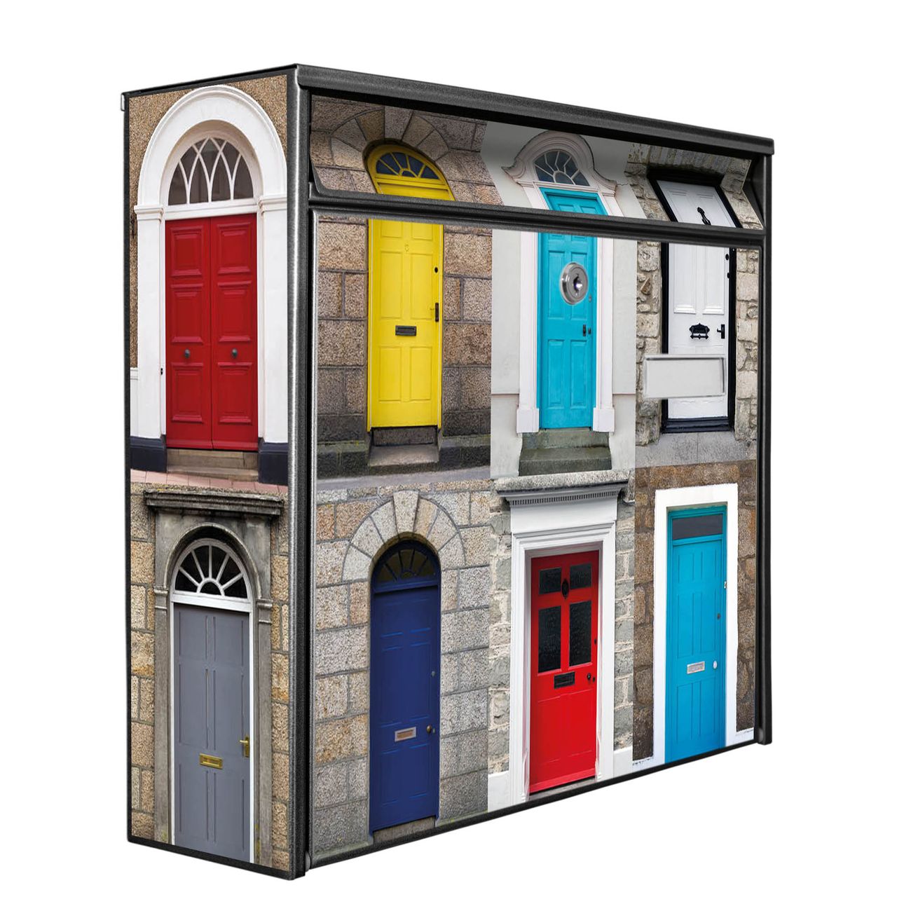 Der Postkasten mit Motiv Türen hat ein sehr ansprechendes und zeitloses Design. Heben Sie Sich von der tristen grauen Masse ab, ohne auf Funktionalität zu verzichten. Die weite Öffnung ohne scharfe Kanten ermöglicht eine einfache Handhabung beim Entnehmen der Post. Die Größe bietet genügend Platz für Sendungen aller Art, der Einwurf fasst auch größere A4 Sendungen. Ihr Burg-Wächter Motivbriefkasten wird in Sachsen in einer kleinen Manufaktur von Hand veredelt. Die Motivfolie ist lösungsmittelfrei und schutzlaminiert, dies sorgt für einen langen Halt. Wir legen großen Wert auf die Verbindung von Funktionalität und Design.