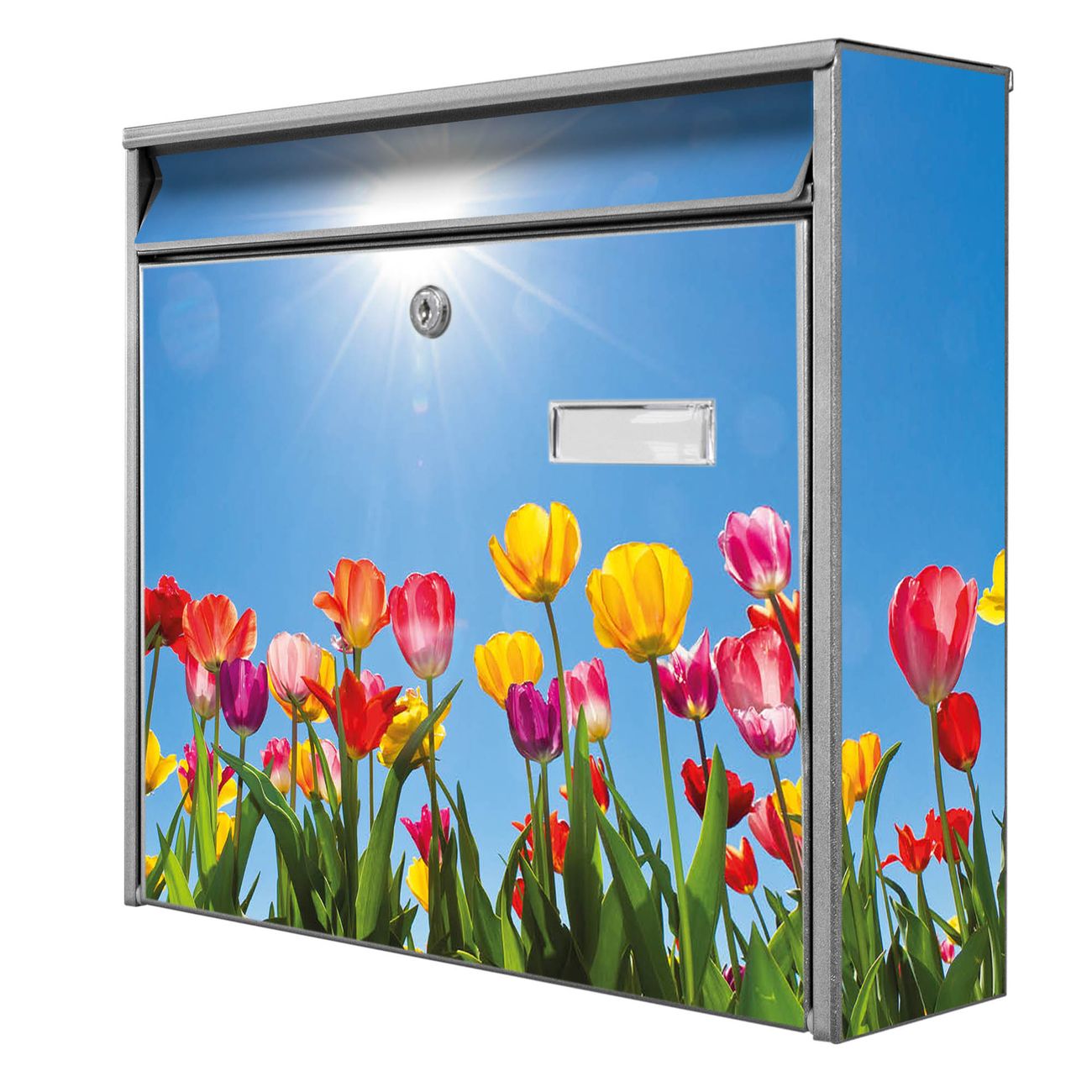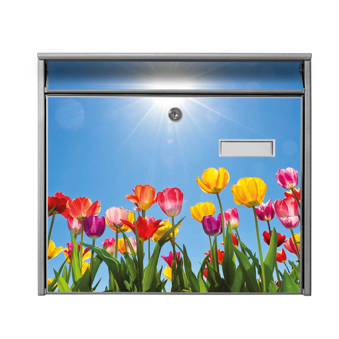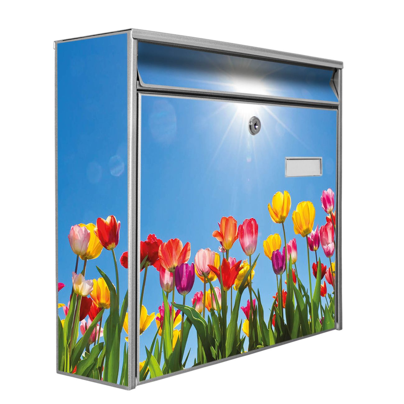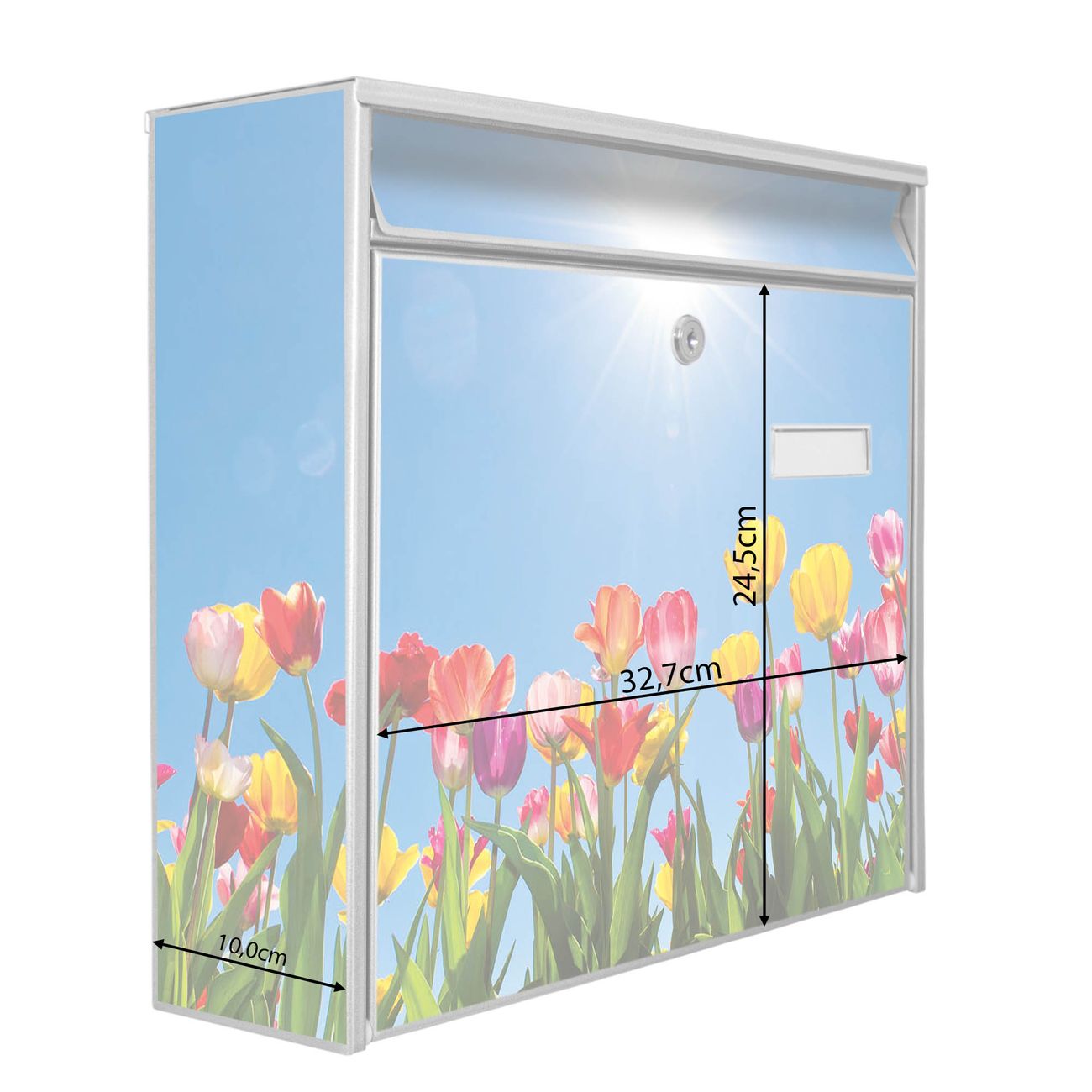 Der Burg Wächter Mail Briefkasten mit Motiv Tulpenmeer bietet Ihnen mit seinem Fassungsvermögen genügend Platz auch für große A4 Sendungen. Auf Wunsch können Sie bei uns den passenden Standfuß kaufen und so aus dem Wandbriefkasten einen Standbriefkasten machen. Wir bieten Ihnen ebenfalls Namensschilder, bereits beschriftet oder frei zu beschriften, und verschiedene selbst gestaltete Bitte-Keine-Werbung-Aufkleber.