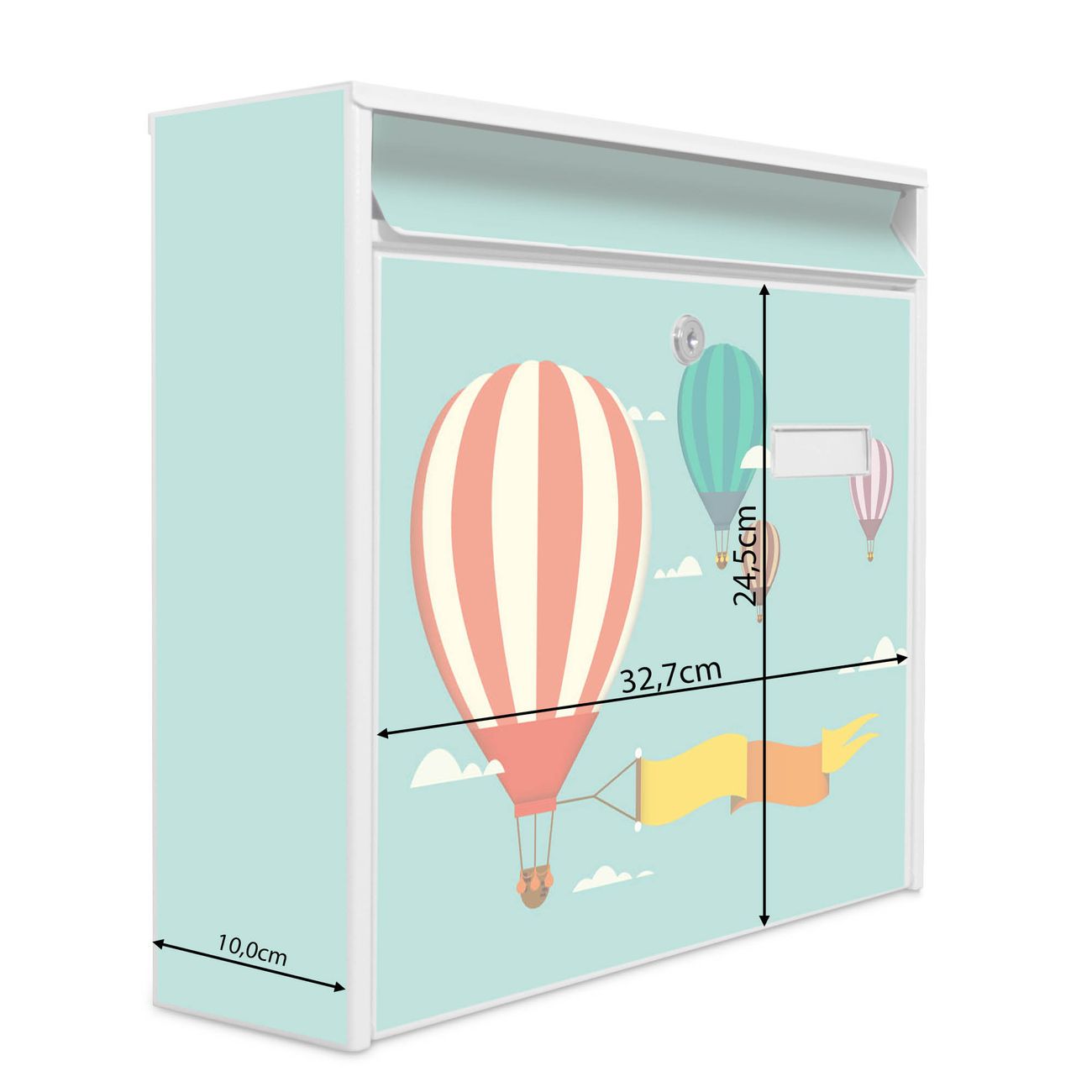 Der Burg Wächter Mail Briefkasten mit Motiv Vier Ballons bietet Ihnen mit seinem Fassungsvermögen genügend Platz auch für große A4 Sendungen. Auf Wunsch können Sie bei uns den passenden Standfuß kaufen und so aus dem Wandbriefkasten einen Standbriefkasten machen. Wir bieten Ihnen ebenfalls Namensschilder, bereits beschriftet oder frei zu beschriften, und verschiedene selbst gestaltete Bitte-Keine-Werbung-Aufkleber.